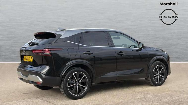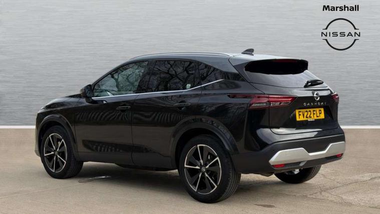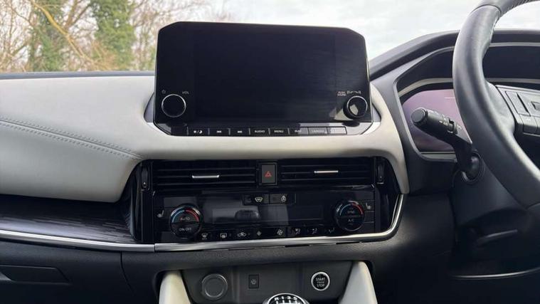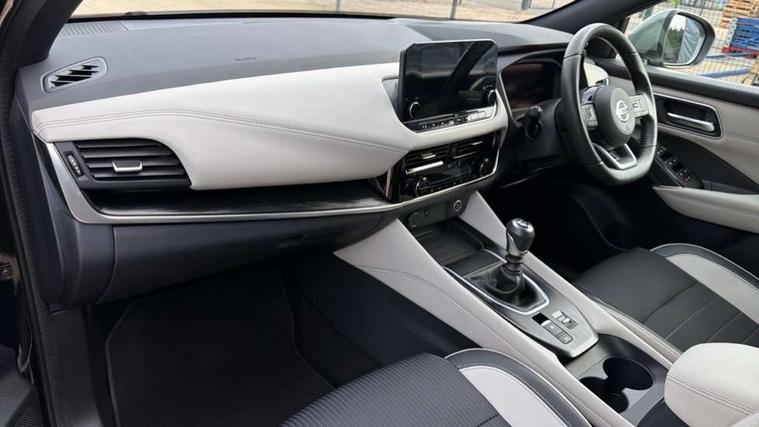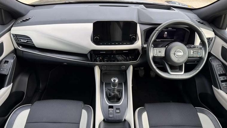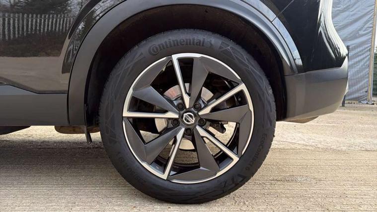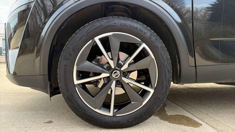 Blind spot warning, Drive modes (sport, normal, eco), Electric speed sensitive power steering, Emergency and breakdown call, Front and rear parking sensors, Full Digital 12.3" TFT Digital Combimeter, Google maps services - search, weather, 3D maps and Google street view, Hands free power tailgate, Idle stop/start system, Intelligent around view monitor, Intelligent Cruise control (ICC), Intelligent driver alert system, Intelligent forward collision warning, Intelligent lane intervention, Lane departure prevention, Lane departure warning system, Moving object detection, Nissan connect 12.3 inch touchscreen infotainment system, Nissan connect navigation, Push button starter, Rear cross traffic alert, Remote control services - door locks, lights, horn and car locator, Telematics - notifications and connectivity services, TomTom live traffic services, Traffic sign recognition with legal speed adjustment, Trip computer, Virtual personal assistant and firmware over the air capability, Wireless Apple CarPlay and wired Android Auto, Wireless charging pad, 6 speakers, AM/FM audio system with DAB, Bluetooth audio streaming, Front USB connections (Type-A and Type-C), Rear USB charging only ports (Type-A and Type-C), Auto dimming rear view mirror, Auto rear wiper when reversing, Automatic hazard signal with emergency stop signal, Body colour mirror caps, Body coloured door handles, Bodyside mouldings, Chrome side window finisher, Door handle with button, Dusk sensor, Electric auto folding door mirrors, Electrically adjustable and heated door mirrors with LED turn indicator, Fixed panoramic glass roof with electric sunshade, Follow me home headlights, Front and rear LED turning signals, Intelligent auto headlights, LED daytime running lights, LED rear lights, One touch front and rear electric windows with remote opening and closing, Partially body coloured bumpers, Privacy glass, Rain sensor, Rear bumper with graphite insert, Rear roof spoiler, Rear side wing doors, Rear styling plate, Roof rails, Shark fin antenna, Splash free rain sensing wipers, Super UV and infrared cut glass, Three blink turn signal, 12v power socket in dashboard and luggage, 2 way electrical driver lumbar adjustment, 2x Rear coat hooks, 3 bench rear seats in 2nd row, 3 rear headrests, 4 folding assist grip, 6 Luggage hooks - 4 on floor, 2 on side, 60/40 split folding rear seat bench, 8 way electric adjustable drivers seat, Ambient lighting around centre console, Ambient lighting in front doors, Centre console storage tray, Chrome interior door handles, Cloth/syntech leather monoform upholstery, Dark black/blueish PVC wrapping, Dark headlining, Driver and front passenger sunvisors with illuminated vanity mirrors, Driver seat back pocket, Dual zone automatic climate control with pollen filter, Front and rear door storage, Front cupholders x 2, Front door with bottle holders, Glovebox with light, Hard trunk cover, Height adjustable front headrests, Leather shift knob, Leather steering wheel, Luggage board system, Luggage space lighting, Manual lumbar support on passenger seat, Manually adjustable passenger (slide recline + lifter), Multifunction steering wheel, Passenger seat back pocket, PVC front centre console and armrest, Rear armrest with 2 cupholders, Rear door bottle holders, Single front passenger seat, Soft PVC kneepad, Steering wheel switches, Tilt/telescopic adjustable steering wheel, Two rear isofix child seat anchorage points with top tether, Welcome light and doors with console tray ambient lighting, Drive assist pack - Qashqai, Heat pack - Qashqai, Tech Pack (Drive Assist + HUD), 3x3 point rear seatbelt pretensioners + load limiters, ABS, ESP, EBD and brake assist, Active brake limited slip, Auto hold function, Child locks on rear doors, Curtain and front side, far side airbags, Driver and passenger airbags, Driver, passenger and 2nd row rear seat belt reminder, Electronic parking brake, Front seatbelt pretensioners + load limiters, Height adjustable front seatbelts, Hill start assist, Intelligent blind spot intervention, Intelligent front emergency braking with pedestrian, cyclist recognition and junction assist, Intelligent rear automatic braking, Tyre pressure monitoring system, Vehicle dynamic control, Capless fuel filler, Engine immobiliser, Nissan i-key, Remote central door locking with deadlocking, Thatcham Cat.1 alarm, Interior instrumental panel C finisher, 19" Alloy wheels, Tyre puncture repair kit,
