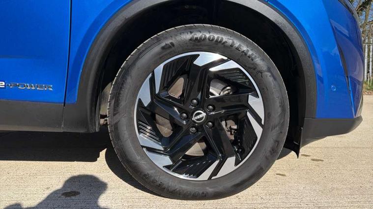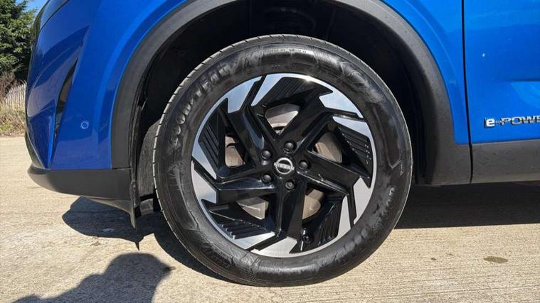 2 front USB-C ports, 2 rear USB-C ports, 360 degree Intelligent around view monitor with moving object detection, Blind spot intervention, Blind spot warning, Drive assist custom mode, Drive modes (sport, normal, eco), Driver drowsiness and attention warning, e-Pedal step, Electric speed sensitive power steering, Emergency and breakdown call, Emergency lane keep assist, Emergency Stop Signal (ESS), Engine start/stop button, EV mode switch, Event data recorder, Front and rear parking sensors, Full Digital 12.3" TFT Digital Combimeter, Google virtual personal assistance, Idle stop/start system, In-car WIFI hotspot, Intelligent Cruise control (ICC), Intelligent forward collision warning, Intelligent speed assist, Lane departure warning system, Nissan connect 12.3 inch touchscreen infotainment system, Nissan connect navigation with google maps, Nissan connect services 2.0 (Google Automotive System), Outside temperature sensor, Rear cross traffic alert, Reversing detection, Traffic jam pilot, Wireless Apple CarPlay/Android Auto, Wireless charging pad, Limited slip differential, 6 speakers, AM/FM audio system with DAB, Bluetooth audio streaming, Auto dimming frameless rear view mirror, Auto rear wiper when reversing, Body colour mirror caps, Body coloured door handles, Bodyside mouldings, Chrome side window finisher, e-POWER badging, Electric auto folding door mirrors, Electrically adjustable and heated door mirrors with LED turn indicator, Follow me home headlights, High beam assist, Intelligent auto headlights, LED 3rd brake light, LED daytime running lights, LED Headlights, LED rear lights, One touch front and rear electric windows with remote opening and closing, One touch passenger window, Partially body coloured bumpers, Rear privacy glass, Rear roof spoiler, Rear side wing doors, Rear styling plate, Shark fin antenna, Splash free rain sensing wipers, Super UV and infrared cut glass, Three blink turn signal, 3 bench rear seats in 2nd row, 3 rear headrests, 60/40 split folding rear seat bench, Chrome interior door handles, Cloth upholstery, Dark headlining, Driver seat back pocket, Dual zone automatic climate control with pollen filter, e-POWER shifter, Front door with bottle holders, Height adjustable front headrests, Luggage board system, Luggage space lighting, Multifunction steering wheel, Passenger seat back pocket, Rear door bottle holders, RGB ambient light (Full area coverage), Single front passenger seat, Smooth leather steering wheel, Tilt/telescopic adjustable steering wheel, Two rear isofix child seat anchorage points with top tether, 3x3 point rear seatbelt pretensioners + load limiters, Autonomous emergency braking, Child locks on rear doors, Curtain and front side, far side airbags, Driver and passenger airbags, Driver, passenger and 2nd row rear seat belt reminder, Electric handbrake with auto hold function, Front seatbelt pretensioners + load limiters, Height adjustable front seatbelts, Hill start assist, intelligent front emergency braking, Rear automatic braking, Tyre pressure monitoring system, Vehicle dynamic control, Engine immobiliser, Intelligent key with walk away lock and approach unlock functions, Remote central door locking with deadlocking, Thatcham alarm, 18" Diamond cut alloy wheels, Tyre puncture repair kit,