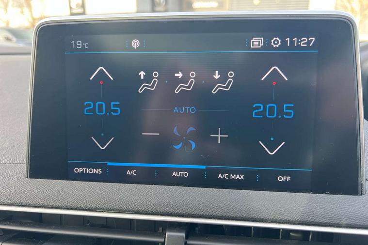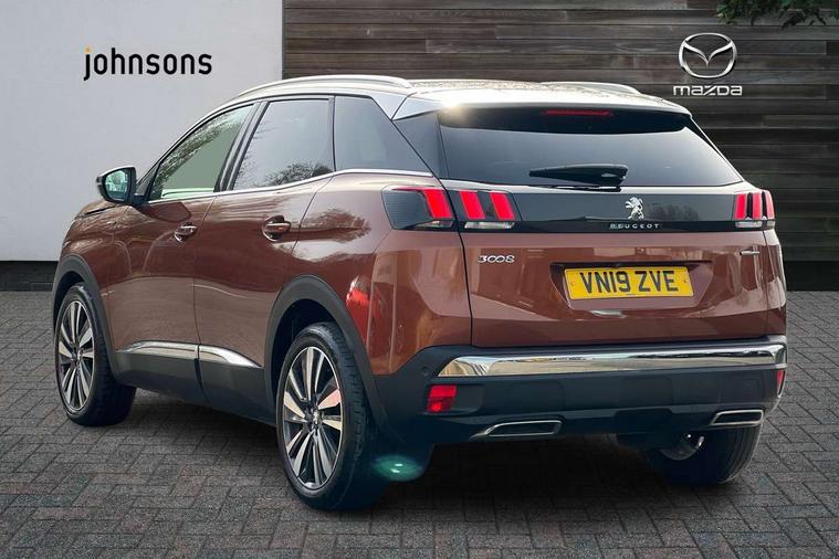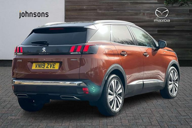 'Lights On' Reminder warning buzzer, 3D connected navigation + voice control + Peugeot connect SOS and assistance, Bluetooth telephone facility, Digital clock, Exterior temperature indicator with ice warning, Front and rear parking sensors, Lane departure warning system, Mirror screen with mirror link, apple carplay and android auto, Multi function trip computer, PEUGEOT i-Cockpit with 8.0" capacitive touchscreen in centre console, PEUGEOT i-Cockpit with amplify (choice of two configurable interior ambiences), PEUGEOT i-Cockpit with compact sports steering wheel, PEUGEOT i-Cockpit with configurable 12.3" Head-up digital instrument panel, Smartphone charging plate, Speed limit recognition and recommendation, Sports button, Dynamic stability control and electronic anti-skid system, DAB Digital radio, Steering column mounted multifunction controls, USB socket, 2 X Rear number plate lights, Aluminium longitudinal roof bars, Automatic hazard light activation upon heavy brake application, Automatic triggered rear windscreen wiper in reverse gear, Black and chrome front wing trim, Black bumper protection plate, Body colour door handles, Body colour rear spoiler with stainless steel edging trim, Body coloured bumpers, Body protectors (bottom of front and rear bumpers + wheel arches + protection at bottom of doors) in black, Chrome bumper inserts, Chrome front fog light trim, Chrome radiator grille and surround, Chrome rear bumper facia, Chrome side window trim, Dark tinted rear side windows + tailgate window, Door mirror mounted LED Peugeot lion approach lights, Electric operated/heated door mirrors, Front windscreen wiper with magic wash cleaning system, Full LED headlights with LED fog lights with static cornering function, sports front bumper and grille, Gloss black finish B and C pillar, Gloss black rear cluster connecting strip, Gloss black windscreen surround, GT Line emblem in satin copper, Headlights left on audible warning, Heated rear windscreen with integrated antenna, LED daytime running lights, LED sequential scrolling front indicators, LED side indicator lights integrated into door mirrors, Lion grey front bumper scuff plate, Nera black door mirrors, One touch electric front/rear windows with pinch protection, Power folding door mirrors with blind spot detection indicator and auto dipping function in reverse gear, Radiator grille in chrome edge trim with chequered design and black 'PEUGEOT' lettering, Rear LED Peugeot signature 'Claw Effect' lights, Sports front bumper, Stainless steel roof arches, Twin exhaust tailpipe, 1/3 to 2/3 split folding rear seats, 12V Sockets in dashboard, rear cabin and load area, 2 cupholders in front centre console, 2 rear reading spotlights, 2x Rear coat hooks, 3x Isofix child seat fittings in the front passenger and outer rear seats, 4 Grab handles retractable and damped, 4 Lashing eyes in boot, Aikinite stitching in armrest, gear lever and dashboard facia, Blue ambient lighting for connecting zone, Blue ambient lighting to front door panels, central storage and cupholders, Blue ambient lighting to head up instrument panel, Centre front armrest with butterfly wing opening and illuminated storage compartment, Driver and front passenger seat height adjustment, Driver seat manual adjustment, Dual zone automatic climate control, Electric power steering with reach and rake adjustable steering column, Fixing rings 4 in load compartment, Flocked front door pocket interior with blue ambient lighting, Flocked glovebox interior, Fold flat front passenger seat with picnic table, Footwell illumination, Front headrests, Front interior light with 2 reading spotlights and rear interior light with timer, Front seat back map pockets, Gear shift indicator, Height adjustable headrests, Illuminated glovebox, Illuminated vanity mirrors, LED interior lighting in storage spaces and load area, Mistral floor mats with Aikinite contrast stitching, Mistral full grain perforated leather steering wheel with aikinite stitch detail and satin chrome 'GT Line' emblem, Rear armrest with ski flap and two cup holders, Rear centre console ventilation system, Rear headrests, Reclining front seats, Roof LED interior lighting, Roof lining - Mistral black, Satin chrome dashboard trim, Satin chrome digital instrument panel and touchscreen trim, Satin chrome front door panel recess trim, Satin chrome gear lever, Satin chrome interior door handles, Satin chrome scorpion's tail and toggle switch trim, Seatbelt not fastened audible and visual alert for front seats, Seatbelt unfastened on the move audible and visual alert for front and rear seats, Stainless Steel Scuff Plates, Two position boot floor, Safety pack - 3008, Safety Plus Pack - 3008, Visibility pack - 3008, 3x Rear three-point retractable seatbelts with force limiters in the outer rear seats, Adaptive driver and front passenger airbags with passenger airbag deactivation function, Anti-lock braking system with electronic braking distribution and emergency braking assistance, Auto city emergency braking, Driver and front passenger side airbags, Driver SMART airbag, Electric child locking functionality on rear windows and doors, Electric parking brake, ESP with ASR, Front and rear curtain airbags, Front optimised safety headrests and 3 x rear retractable headrests with height adjustable, Front passenger SMART airbag with deactivate switch, Front three point retractable seatbelts with pre tensioners and force limiters, Front ventilated disc brakes and rear disc brakes, Height adjustable front seatbelts, Hill start assist, Tyre pressure sensor, Anti theft alarm, Automatic door lock/re-lock after 30 seconds, Central locking button on dash, Deadlocks, Electronic immobiliser, Locking wheel bolts, Remote control central locking with two plip keys, Brumeo fabric Dashboard, front and rear door panel finish, Satin chrome dash trim, Satin chrome instrument dial surrounds,