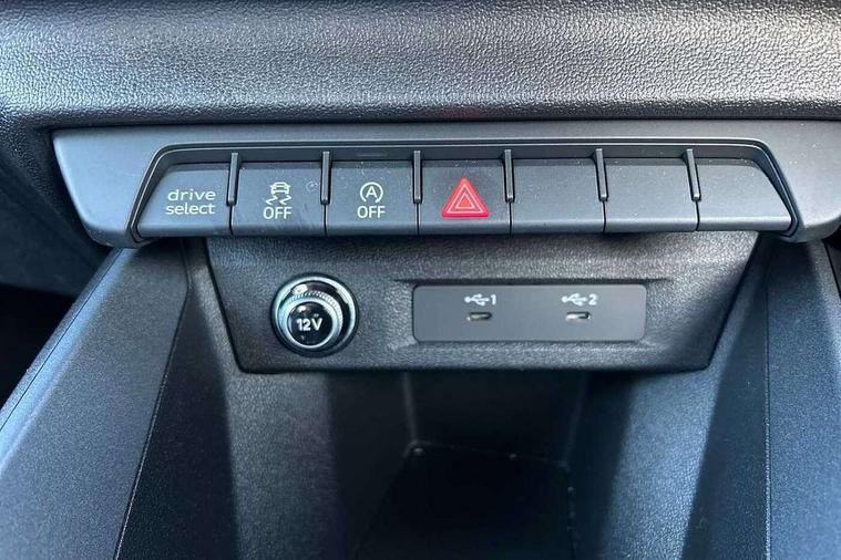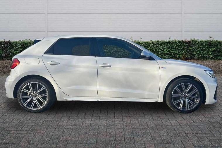 10.25" Digital instrument cluster display classis style instrument dials + speed, odometer, time, outside temperature, telephone menu + fuel level warning, Advanced driver attention and drowsiness monitor, Audi connect emergency call and service, Audi drive select, Audi remote connect and control, Audi smartphone interface, Bluetooth interface, Camera based traffic sign recognition, Cruise control, Driver's information system, Electromechanical power steering, Lane departure warning system, Rear parking sensor, Service interval indicator, Speed limiter, Start stop system with recuperation, Voice control system, Washer fluid level indicator, Sports suspension, 2 x USB type C connection points, 6 loudspeakers, DAB Digital radio, MMI radio plus with 10.1" colour MMI display screen and MMI touch, Auto dimming rear view mirror, Body coloured door mirrors, Door sill trims with aluminium inlays and S line logo in front, Electric front and rear windows, Electrically adjustable, heated, folding door mirrors with integrated LED side indicator, Front side air inlets in grained matt black and C frame in anthracite black, Headlight cleaning system, Heat insulating glass windscreen and side windows, Heated rear windscreen, High level LED brake light, LED daytime running lights, LED headlights with range control LED rear lights + dynamic rear indicators, Privacy glass, Radiator grille and rear diffuser in matt anthracite black, Radiator protective grille frame in matt aluminium silver, Rain and light sensors, Rear fog lights, Rear side wing doors, Rear wiper, S line badges on front wings, Side front spoiler lips in grained matt black, 12V socket in centre console with two cup holders, 3 rear seats with headrests, 3 seat bench in 2nd row, 3 spoke leather multi-function plus steering wheel features S badging and grips in perforated leather with contrast stitching, 40:60 Split folding rear seat or fully collapsed, Black cloth headlining, Front and rear velour black floor mats with contrast stitching in fine silver, Front head restraints, Front passenger seat, Height and reach adjustable steering wheel, Interior lighting includes roof module, front and rear reading lights and right luggage compartment lighting, ISOFIX child seat mounting for front passenger and outer rear seats including top tether attachment point of outer rear seats, Leather gear knob with aluminium trim, Leather handbrake grip, Manual air conditioning, Manual height adjustable for driver and front passenger seat, Manually adjustable lumbar support in front seats, Stainless steel pedals, Ambient lighting package - A1, Luggage compartment pack - A1, S line exterior styling pack - A1 Sportback, 3x3 point rear seatbelts, Audi pre-sense front with pedestrain and cyclist recognition, Brake assist function, Driver and front passenger airbag with front side and head airbags, Electronic Stability Control including ABS, EBD, ASR and EDL, Front passenger airbag deactivation switch, Hill hold assist, Manual rear child locks, Seatbelt height adjustment for front seats, Seatbelt monitoring, Tyre pressure loss indicator, Warning triangle and first aid kit, Anti theft alarm, Anti theft wheel bolts, Immobiliser, Remote control key with safelock, Aluminium trim for control switches, air vents and digital instrument cluster, Black dashboard, Silver grey inlays polygon structure in diamond paint finish, Structured grey accent surfaces insert of air vents, interior door handle recesses and centre console in quartz paint finish,