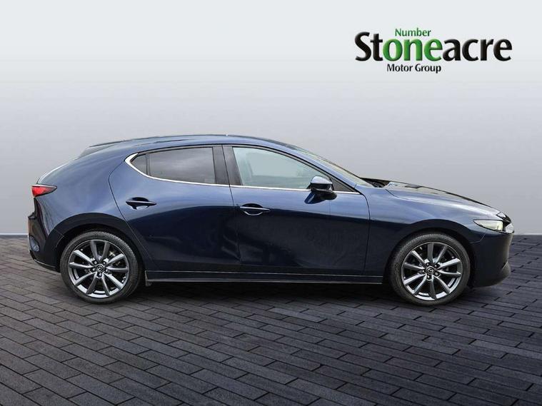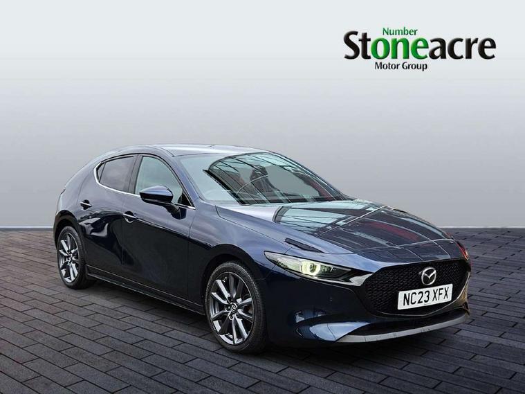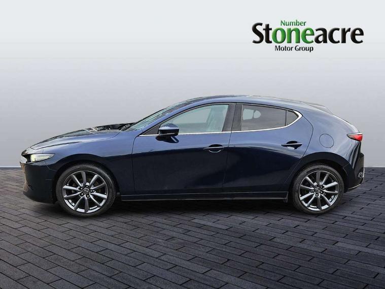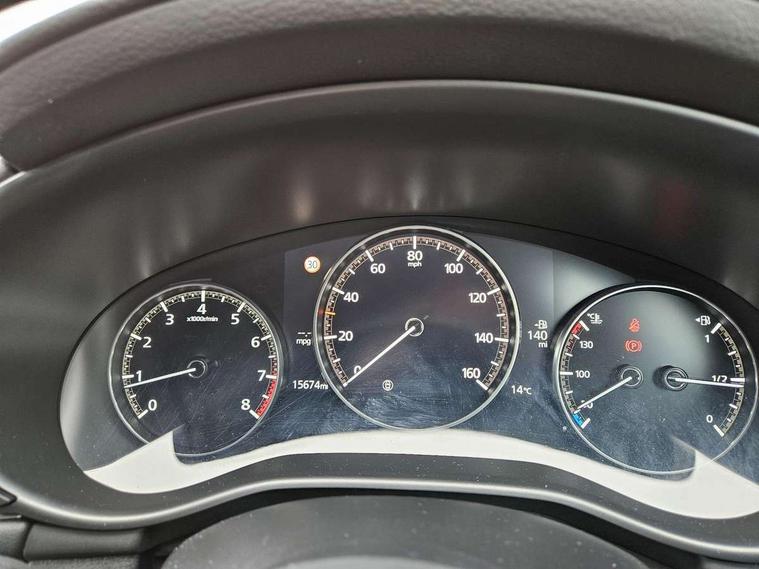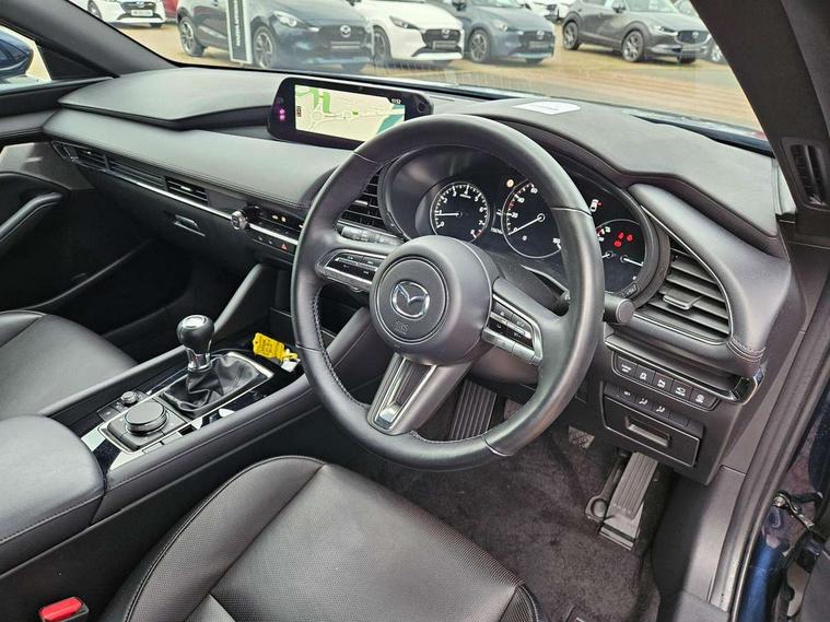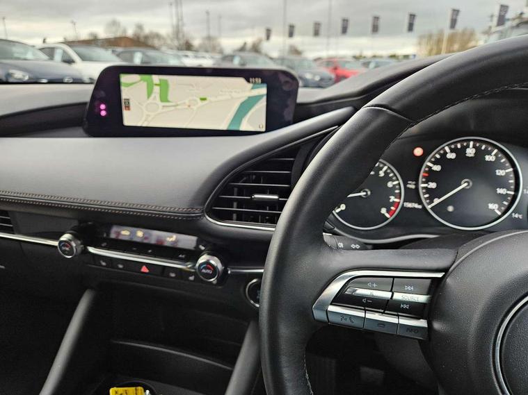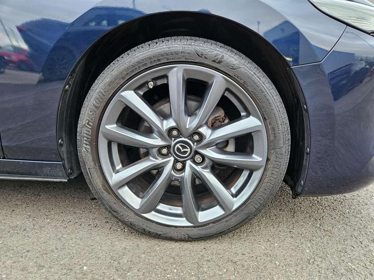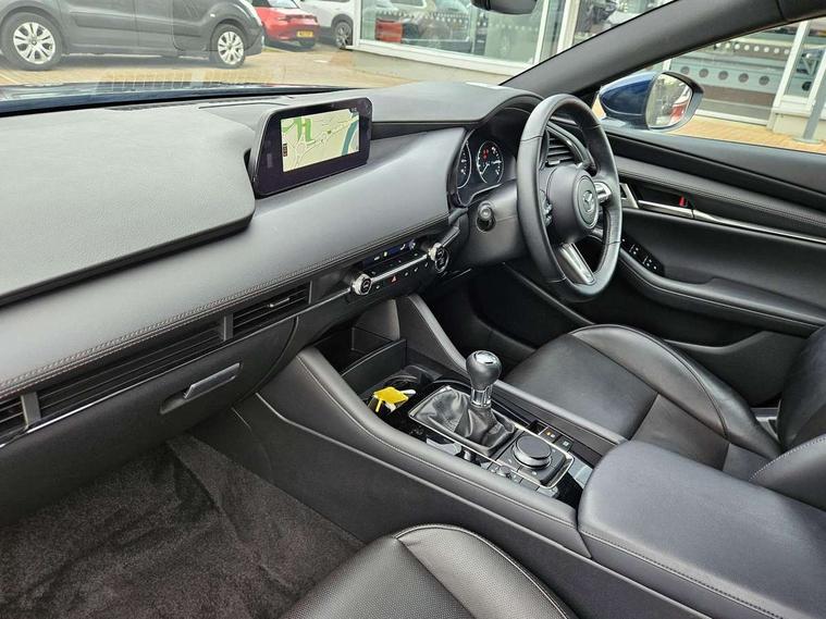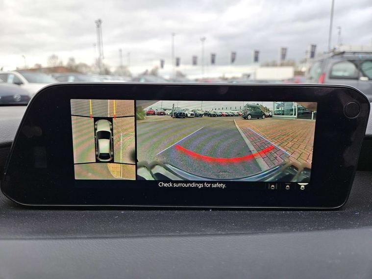 360 View Monitor, 7" colour TFT display, 8.8" Colour centre touch screen display with Mazda Connect infotainment, Apple car play/Android Auto, Audio transfer from bluetooth devices, Blind spot monitoring with rear cross traffic alert, Colour active driving display inc Windscreen projected, Traffic Sign Recognition, turn-by- turn navigation and Mazda Radar Cruise Control information, Cruising Traffic Support, Digital instrument cluster, Driver attention alert system, Driver monitoring system, E-call with GPS, Emergency stop signalling system, Engine start/stop button, Front and rear parking sensor with audible and visual warning, Front Cross Traffic Alert, Head up Display, Integrated bluetooth with steering wheel mounted controls, Intelligent speed assist, Lane keep assist system (LAS) with Lane departure warning system (LDWS), Mazda connected services, Mazda Navigation System with european mapping, Mazda Radar Cruise Control, Mobile App interface, Multimedia Commander, PAS, Service indicator, Tailgate, Traffic sign recognition (TSR), Trip computer, Cylinder Deactivation, i-stop, Mazda Multimedia System with AM / FM / DAB radio with 12 Speaker Bose sound system, bose centerpoint, bassmatch+audiopilot technology, Adaptive LED Headlights, Auto dimming driver's door mirrors, B-pillar garnish in piano black, Body coloured, electrically adjustable, heated auto power folding door mirrors with integrated indicators, Coming/leaving home lighting function, Dark metallic finish signature wing, Door mirrors with adjustable memory and tilt-down function when reversing, Dual chrome tailpipes tip, Dusk sensing headlights, Electric front/rear windows with one touch/auto up/down, Frameless auto dimming interior rear view mirror, Front body coloured bumper with black lower bezel, Front kodo turn signal, Gloss black finish front grille, Gloss black rear roof spoiler, LED indicator lights, LED third brake light, Privacy glass with dark tinting on rear side windows and rear window, Rain sensing front wipers with adjustable sensitivity and speed, Rear colour coded bumper with gloss black lower moulding, Rear fog lights, Rear side wing doors, Signature LED daytime running lights, Signature LED rear combination lights, Speed adjustable rear wash wiper with intermittent wipe, 12v electrical power outlet, 3 seat bench in 2nd row, 60/40 split fold down rear seats, Chrome interior trim accents with steering wheel centre bezel, surround of engine start / stop button and glove box handle, Dark roof headlining, ceiling and pillars, Dark vinyl leather door panel inserts, Driver seat power slide, recline, height and lumbar adjustment with driver door mirror memory, Driver, front passenger and two rear door pockets, Driver, Front passenger and two rear grab handles with coathooks, Driver/passenger sunvisors + vanity mirrors (drivers side with ticket holder), Dual zone climate control air conditioning, Folding rear centre armrest with two cup holders, Front and rear courtesy lamps, Front armrest, Front centre storage with two cupholders, Front head restraints, Front passenger seatback pocket, Front passengers seat manual slide, recline and height adjustment, Gear shift indicator, Heated front seats with 3 stage setting, Heated steering wheel, Illuminated glovebox, Interior colouration dashboard and doorcards in black with dark stitching, ISOFIX child seat anchorage points attached on outer rear seats, Leather upholstery, Leather wrapped gear shift knob, Leather wrapped steering wheel, LED interior light, Luggage compartment light, Power outlet in luggage compartment, Roof mounted sunglasses holder, Single front passenger seat, Three height adjustable rear head restraints, Tilt/height adjustable steering wheel, USB input, 3 point ELR front seatbelts with pretensioners, 3 rear 3 point seatbelts with ELR, Anti-lock braking system (ABS), Drivers knee airbag, DSC - Dynamic Stability Control, Dual stage driver and single stage passenger airbags, EBD - Electronic brakeforce distribution, Electronic parking brake with auto disengage function and auto hold function, Front and rear curtain airbags, Front passenger airbag cut-off switch, Front side airbags, Front smart city brake support, G-Vectoring control plus, Hill launch assist, Intelligent Traction Control system, Manual child lock in rear doors, Mild Hybrid system with regenerative braking, Rear crossing smart brake support, Rear smart city brake support, Seatbelt reminder for driver/front passenger and rear seats, Tyre pressure monitoring system (TPMS), Auto door lock when driving, Remote central locking + deadlocks, Smart keyless entry, Thatcham accredited alarm and immobiliser, 18" Grey alloy wheels, Emergency tyre repair kit,