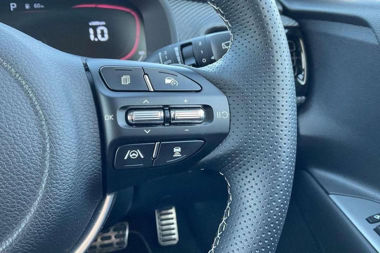 4.2" supervision colour cluster display, 8" touchscreen navigation, Apple car play/Android Auto with voice control, Blind spot collision avoidance assist, Blind spot collision warning, Drive mode selector, Electric power steering, Emergency call service, Emergency stop signalling system, External temperature display, Forward Collision-Avoidance Assist (FCA) - City/Pedestrian/Cyclist/Junction, Front parking sensors, Intelligent speed limit assist, Intelligent speed limit warning, Lane follow assist, Lane keeping assist system (LKAS), Driver attention warning (DAW) and High beam assist (HBA), Rear parking sensor, Reversing camera system, Smart cruise control with stop and go functionality, Speed limiter, Trip computer, Intelligent Stop and Go, Audio system with 6 speakers, Bluetooth with music streaming, Front USB port, Steering wheel mounted controls, All round electric windows with drivers auto up/down function, Auto dimming rear view mirror, Automatic defog system, Automatic headlights control, Black rear roof spoiler with high mounted LED braking light, Black side sill, door garnish and wheel arch trims, Black/body colour bumpers, Body coloured exterior door handles, Chrome side window trim, Electrically adjustable/heated/folding door mirrors with LED indicators, Front and rear silver skid plates, Gloss black door mirrors with matt black lower housing, GT-Line body kit, Headlight levelling device, Heated rear window, High gloss black radiator grille, LED Bi-function projection headlights with static bending, LED daytime running lights, LED front fog lights, LED position light, LED rear combination lights, Privacy glass - Rear windows and tailgate, Rain sensing front wipers, Rear fog lights, Rear side wing doors, Rear wash/wipe, Roof rails, Shark fin antenna, Solar windshield glass, Speed variable front wipers, Tinted glass, Welcome and follow-me home light functionality, Windscreen Washer Level Warning, 12V power point front, 3 seat bench in 2nd row, 60/40 split folding rear seat, Air filter, All-round height adjustable headrests, Alloy pedals, Aluminium pedals, Automatic air conditioning, Centre armrest storage box, Centre console with cupholders, Cloth and artificial leather upholstery, D-Cut perforated leather trimmed steering wheel, Dash illumination dimmer switch, Driver's seat height adjuster, Front and centre cabin lights, Front and rear door map pockets with bottle holder, Front and rear door storage, Gear shift indicator, Glovebox illumination, GT-Line Interior Styling, Heated front seats, Heated steering wheel, ISOFIX Child seat top tethers and anchor fixings outer rear seats, Leather trimmed gearshift, Luggage area light, Luggage area parcel shelf, Luggage net with hooks, Overhead console lamp, Overhead console with sunglasses cases, Passenger front seatback pockets, Passenger seat height adjuster, Rear USB charging port, Satin chrome interior door handles, Single front passenger seat, Sunvisors with vanity mirror illumination (Driver and front passenger), Tilt/telescopic adjustable steering wheel, ABS with Electronic Brakeforce Distribution (EBD) and Brake Assist System (BAS), All round 3-point seatbelts, Electronic stability control (ESC) and vehicle stability management (VSM), Front passenger airbag cut-off switch, Front seatbelt pretensioners + load limiters, Height adjustable front seatbelts, Hill start assist control (HAC), Impact sensing auto door unlocking, Manual child lock in rear doors, Rear airbags, Rear seat Occupancy alert, Seatbelt reminder warning, Twin curtain airbags, Twin front airbags, Twin front side airbags, Tyre pressure monitoring system, Alarm system, Customisable automatic door unlocking, Door deadlocks, Engine immobiliser, Locking wheel nuts, Smart key with engine start/stop button, Speed sensitive auto door locking, Visible vehicle identification number, High gloss black centre fascia, 17" GT-Line alloy wheels, Tyre mobility kit,