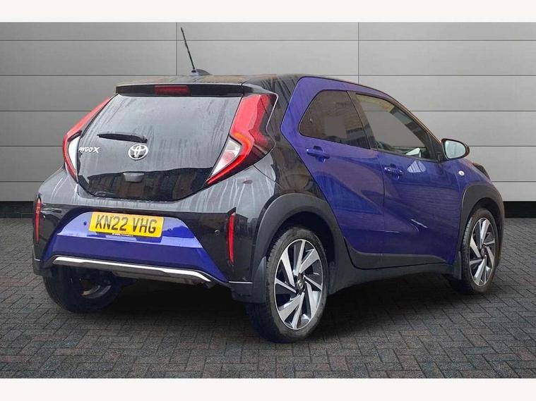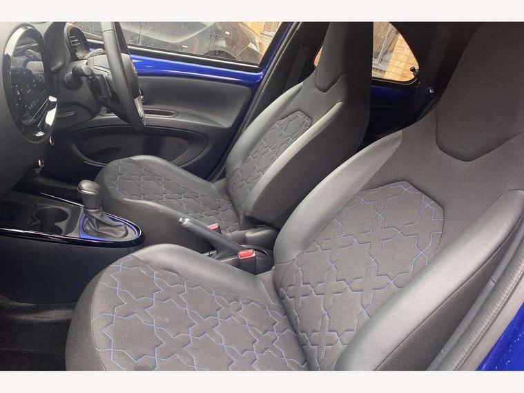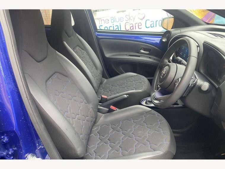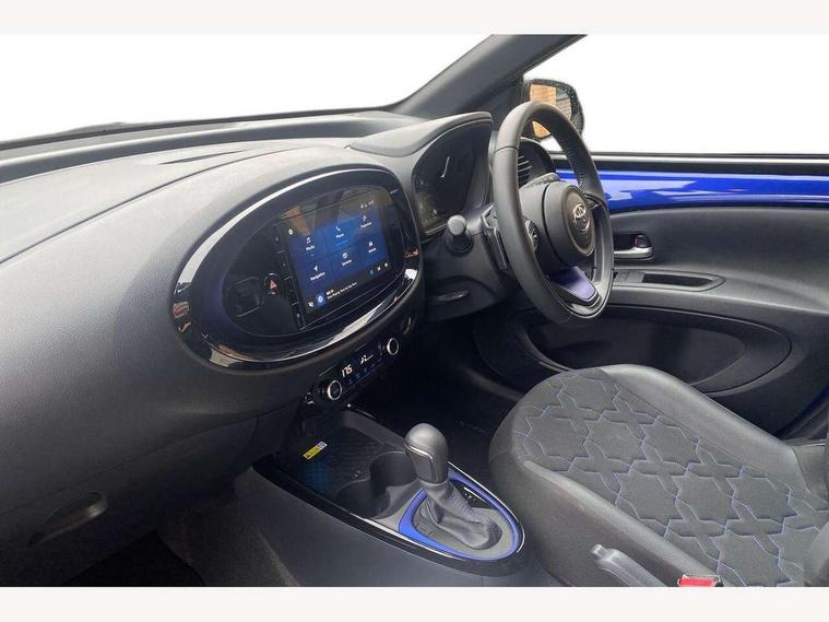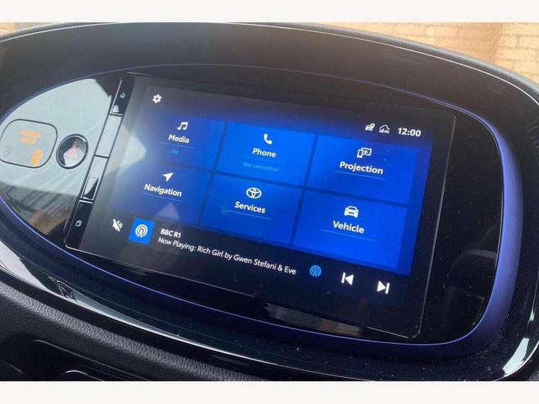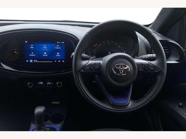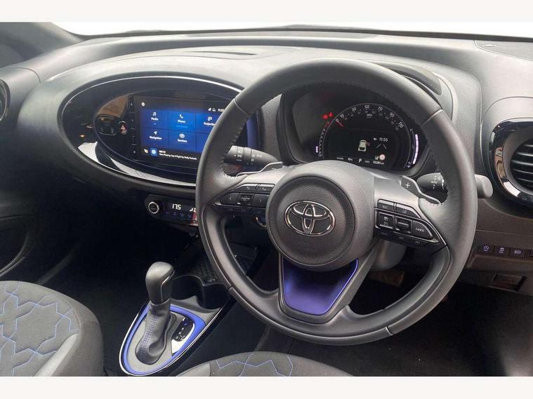 4.2" TFT colour screen, Adjustable speed limiter, Analogue speedometer, Bluetooth connectivity, Digital tachograph, Driver attention alert system, eCall emergency call system, ECO-driving indicator, Electric power steering, Front and rear parking sensors with auto brake, Intersection turn assist, Key reminder warning, Noise reduction kit, Pre collision system with emergency steering assist, Remote boot door release on key, Reversing camera with static guide lines, Smart entry and push button start, Speed limit display, Start and stop, Wireless charger, Wireless Smartphone Integration includes Apple CarPlay and Android auto, Vehicle Stability Control (VSC), 4 speakers, 9" HD multimedia display touch screen with Toyota smart connect, DAB digital audio broadcast, USB connector, Auto headlights, Auto wipers, Automatic headlights cut-off, Automatic high beam On/Off switch, Bicycle towing hook, Black fog light surrounds, Black side protection mouldings, Black wheel arch mouldings, Body colour door handles, Body coloured front bumper, Boot door scuff plate, Eclipse black rear bumper, Electric heated door mirrors, Follow me home headlights, Front and rear underruns in silver, Front fog lights, Front power windows, Gloss black door mirrors, Gloss black upper front grille, Headlight cut-off reminder, LED daytime running lights guide, LED front light guide, LED High mounted stop lamp, LED projector headlights, Manual day/night rear view mirror, Manual headlight levelling, Pagoda roof, Power adjustable door mirrors, Privacy glass, Rain sensor, Rear combination lights LED bulb type, Rear side wing doors, Rear windscreen defogger, Rear windscreen wiper, Remote hazard lights system, Short antenna, Variable intermittent windscreen wipers, 12v power outlet - front, 2 seat bench in 2nd row, 3 spoke leather steering wheel, 50/50 split folding rear seat, Adhesive roof headlining, Adjustable speed limiter switch on steering wheel, Audio and telephone switches on steering wheel, Auto air conditioning, Black roof lining, Body colour satin anodised insert on steering wheel, Boot light, Centre room light, Chrome interior door handles, Chrome surround on air conditioning buttons, Clean air filter, Floor mats, Front and rear cup holders, Front head rest deco art, Front head restraints, Gear shift indicator, Height adjustable driver seat, Intelligent adaptive cruise control switch on steering wheel, ISOFIX child restraint system on rear seats, Lane departure alert switch on steering wheel, Leather gearshift knob, Light blue ambient lighting in centre console, Manual tilt steering wheel, Manually reclining and sliding driver seat, Manually reclining and sliding front passenger seat, Multimedia switches on steering wheel, Paddle shift levers on steering wheel, Partial synthetic leather upholstery, Pollen filter, Rear door pockets, Rear head restraints, Remote air-conditioning system, Satin silver insert on gear shift knob, Single compartment glovebox with lights, Single front passenger seat, Soft tonneau cover, Sun visors with mirror on driver and passenger side, Voice recognition switch on steering wheel, Toyota safety sense pack - Aygo X, Anti lock braking system + Electronic brake force distribution, Child safety door lock, Emergency brake light signal (EBS), Hill start assist control (HAC), Passenger airbag on/off switch, Seat belt reminder for front and rear seats, Supplement restraints system (SRS) - 6 airbags, Traction control, Tyre pressure warning system, Immobiliser, Remote power door locks, Black wheel centre caps, Tyre repair kit,