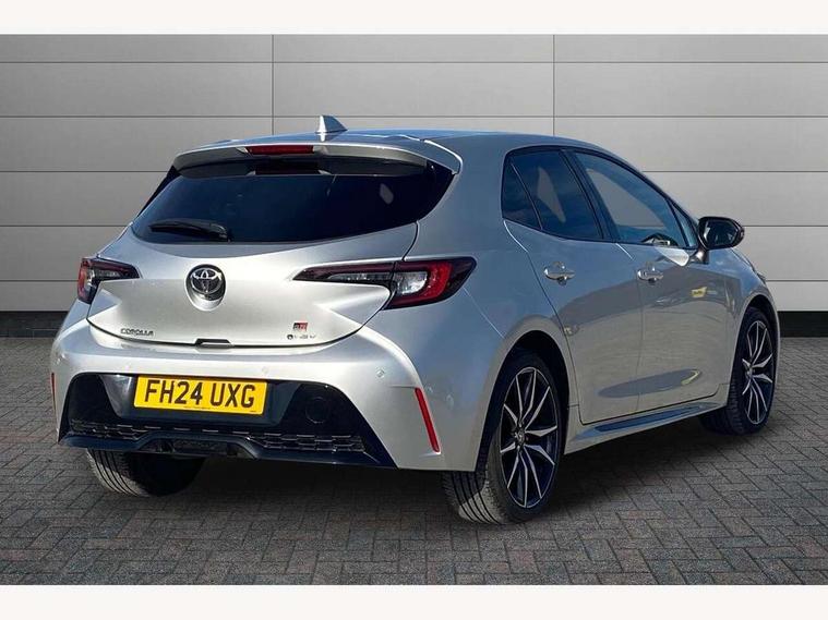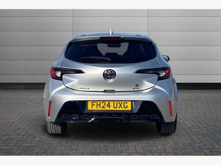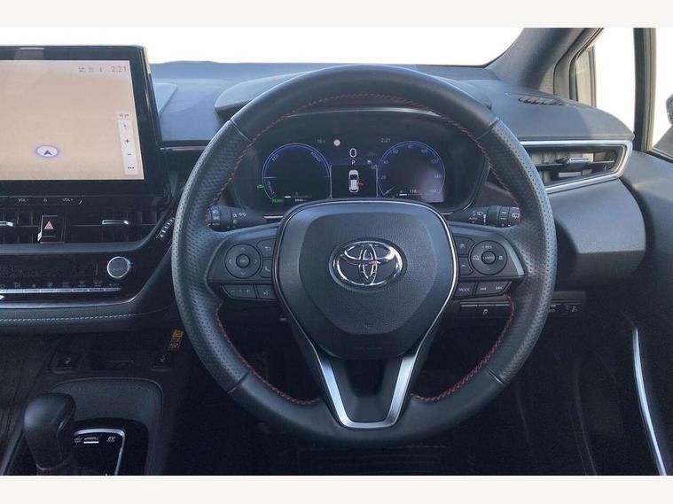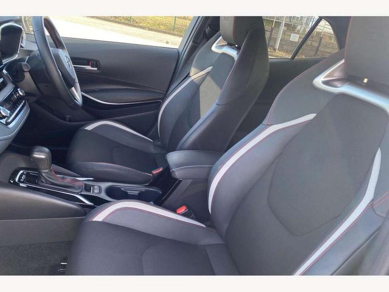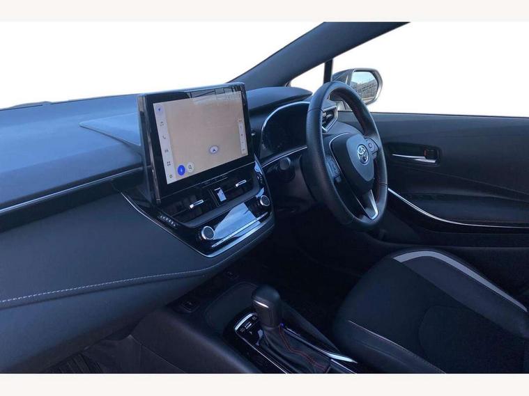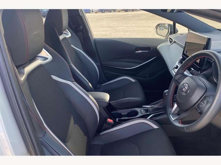 10.5" Multimedia display screen, Bluetooth telephone connectivity, Connected car functionality upgrade, tracker, remote status and e-care, Drive mode select (Eco, Normal), E-call, Electrically assisted power steering, EV drive indicator, Front and rear parking sensors with auto brake, Full Digital 12.3" TFT Digital Combimeter, Key reminder warning, Lane Departure Alert (LDA) switch on steering wheel, Memory on adjustable speed limiter, MyT connected services, Proactive driving assist (PDA), Reversing camera, Smart entry and push button start with GR Logo, Smartphone integration with Apple CarPlay and wired android auto, Tailgate, Toyota remote services, Toyota smart connect navigation, Wireless charger, Gasoline particulate filter, Vehicle Stability Control (VSC), 6 speakers, AM/FM radio, DAB Digital radio, Front USB-C in centre console, Front USB-C in dashboard, Smart voice assist/ Voice recognition, USB and Aux in connectors + 12V front outlet, Anti-jam protection on power windows, Auto up and down function on all power windows, Automatic folding mirrors, Automatic headlights with high beam assist, Black centre and side air vents, Black toyota logo in front, Body coloured bumpers, Body coloured door mirrors, Body coloured outside door handles, Dark chrome lower grille, Electrochromatic mirror, Follow me home headlights, GR Sport dark chrome front mesh grille and black rear grille, GR Sport exclusive under guard, GR sport scuff plates, LED daytime running lights, LED dual beam projector headlights, LED front fog lights, LED High mounted stop light, LED rear combi lights with LED lightguide, Manual headlight levelling system, New grille pattern, Noise reduction layer on windscreen, Piano black diffuser, Power adjustable heated door mirrors, Power front windows, Power rear windows, Privacy glass with UV filter, Rain sensing wipers, Rear side wing doors, Rear window defogger, Rear window wiper, Reverse tilting door mirrors, Rocker and door lower moulding, Roof spoiler, Satin chrome insert on front air vents, Satin chrome insert on front door assist grips, Satin silver front spoiler, Shark fin antenna, Tailgate release with push button, Time adjustment on intermittent wiper, Turning signal integrated indicators in door mirrors, Unique lower skirt, Unique side rocker with black insert, UV-filter on driver and passenger windows, 2 Shopping bag hooks in luggage compartment, 3 rear headrests, 3 seat bench in 2nd row, 3 spoke leather steering wheel with satin insert/red stitching + gear knob, 4 tie down hooks in luggage compartment, 60/40 split folding rear seat, Adaptive cruise control (ACC) switch on steering wheel, Adjustable speed limiter switch on steering wheel, Audio, multimedia and telephone switches on steering wheel, Black armrest on centre console box, Black gear shift console, Boot light, Centre room light, Driver and front passenger personal light, Driver and passenger assist grip, Driver and passenger seatback pockets, Driver and passenger sun visor with mirror and light, Dual zone automatic air conditioning with ECO mode switch, Fabric/synthetic leather upholstery, Front and rear cup and bottle holders, Front door pockets, Front head restraints, Front passenger seat, Front sliding synthetic leather armrest, GR Sports seats with partial leather bolsters, Heated seats, Illuminated entry system in room lamp, ISOFIX seat fixing (2 fixings on rear outer seats), Manual height adjustable for driver and front passenger seat, Manually tilt with sliding driver and front passenger seat, Nanoe-X air purifier, Parcel shelf, Pollen filter, Power window switches with satin chrome inserts, Rear armrest with 2 cupholders, Rear passenger coat hooks (2), Red stitching on gear shift, Remote air conditioning, Satin chrome inside door handles, Satin chrome surround on speedometer, Sliding armrest on centre console box, Slow opening glovebox with lights, Textile floor mats, Tilt/telescopic steering column, Voice recognition switch on steering wheel, Whiplash Injury Lessening (WIL) feature (active headrest) for seats, White ambient lighting on open tray and front cup holder, Toyota safety sense 3 pack - Corolla, 3x3 point rear seatbelts, Adjustable driver and front passenger seat belt extender to top anchor point, Anti lock braking system + Electronic brake force distribution, Brake assist function, Child locks on rear doors, Downhill Assist Control (DAC), Electronic parking brake, Emergency brake light signal (EBS), Front passenger airbag on/off switch, Front seatbelt reminder, HAC - Hill start assist control, Rear seat belt reminder, Seatbelt pretensioners and force limiters, Supplemental restraint system (SRS) 7 airbags - dual driver, dual side curtain, side impact and driver knee airbags, Traction control, Tyre pressure warning system, Acoustic vehicle alert system (AVAS), Alarm with motion sensor and immobilizer, Power passenger window lock, Remote central locking + deadlocks, GR Sport interior styling with accents and exterior styling, Satin chrome dash trim, Soft touch texture on upper dashboard, Stitching on lower dashboard, 18" Black machined face 10 spoke alloy wheels, Tyre repair kit, Unique wheel finish with red wheel cap,