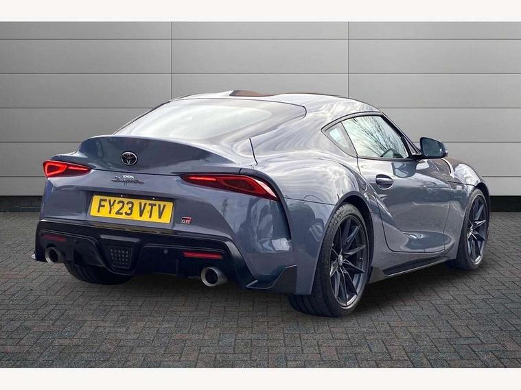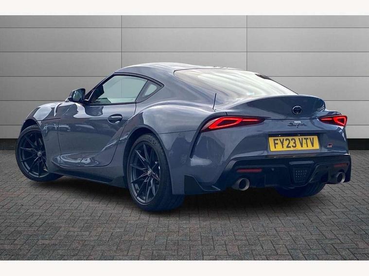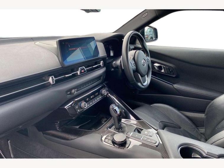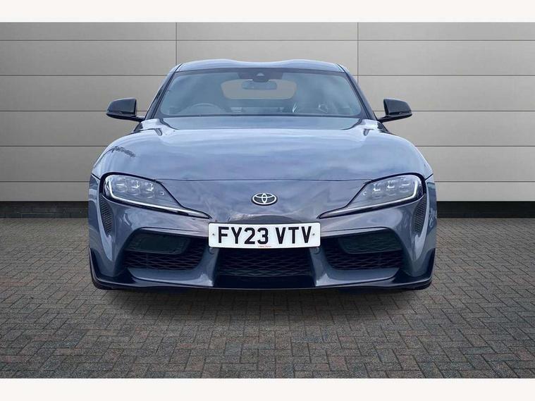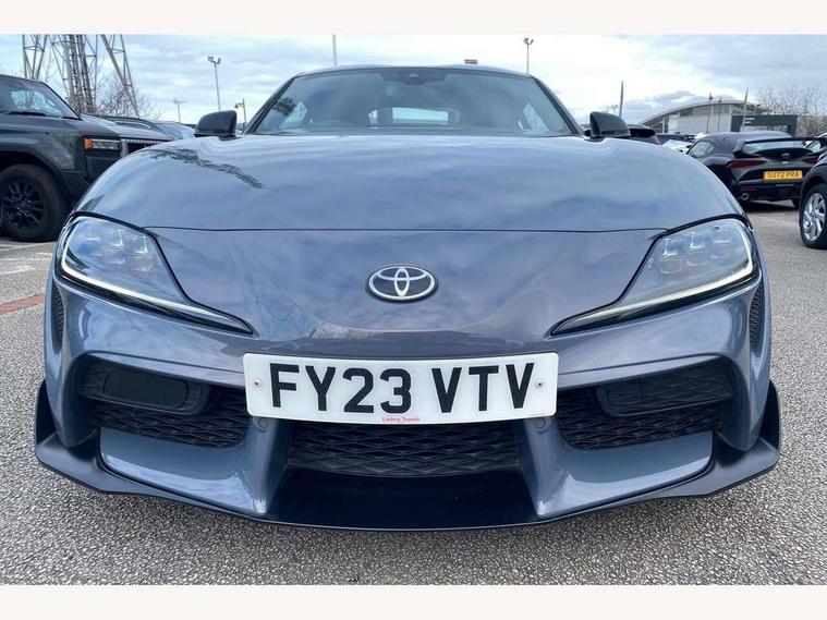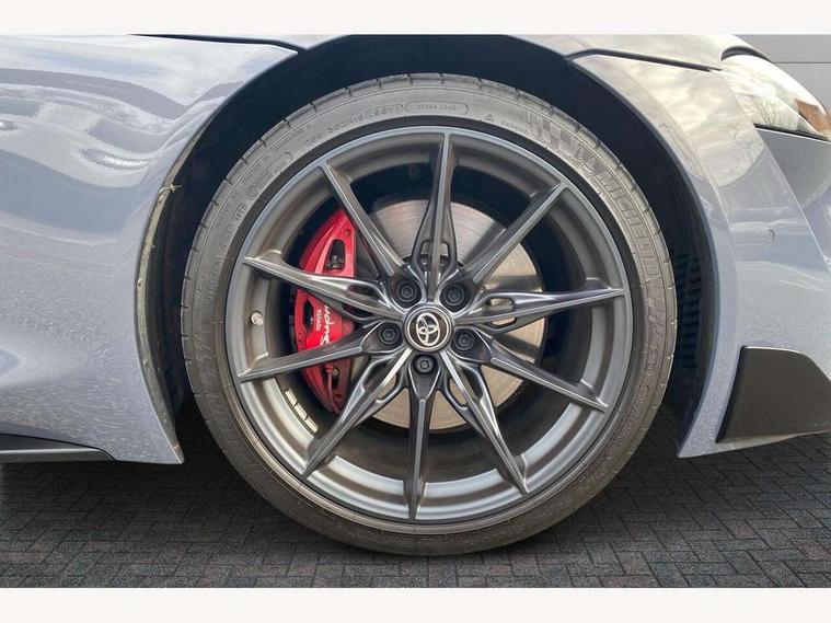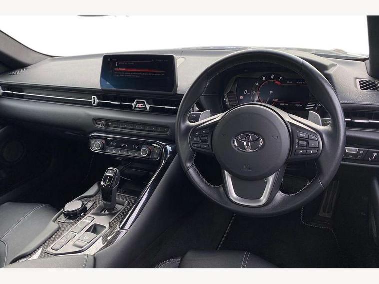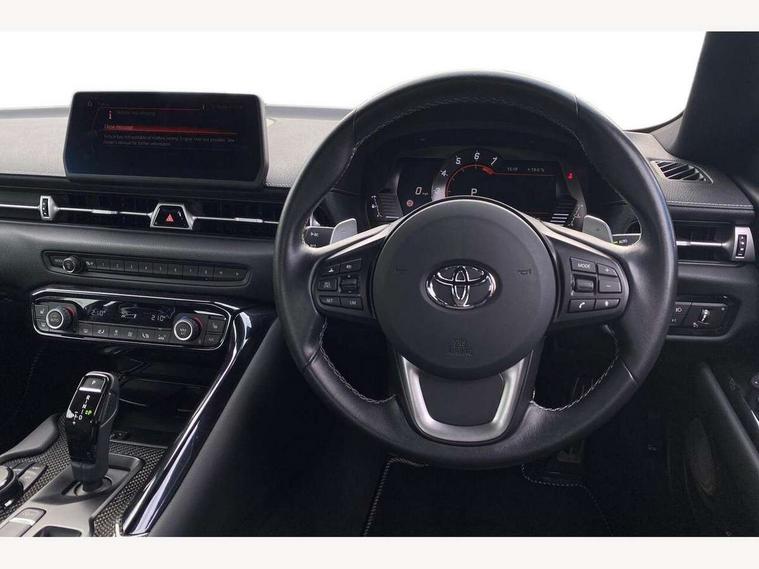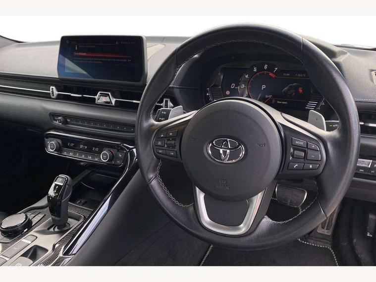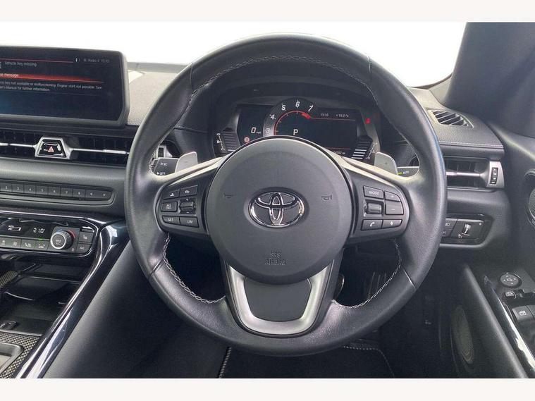 Adaptive cruise control with stop and go + steering wheel, Blind spot monitor, Digital speedometer, Drive mode selector, Driver and passenger microphone, Driving assistant, Dynamic guide lines on reversing camera, E-call, Front and rear parking sensors, Head up Display, Lane departure alert with steering control, PAS, Push button start, Rear collision warning, Rear cross traffic alert, Rear view camera, Remote boot door release in cabin, Reversing camera display, Road sign assist - RSA, Service indicator, Smartphone integration with Apple CarPlay, Sport drive mode, Telephone switch on steering wheel, Toyota supra connect, Voice recognition, Wireless charger, Active sports differential, Adaptive variable suspension, Vehicle Stability Control (VSC), 2.1 amp USB connector, 8.8" toyota touch multimedia system, Audio switch on steering wheel, DAB Radio (Digital Audio Broadcasting), Glass integrated antenna, JBL premium sound system with 12 speakers, Toyota touch 2 with go navigation system, Auto adaptive high beam, Auto cut off headlamps, Auto dimming inside rear view mirror, Auto headlights, Automatic headlight levelling, Automatically retractable door mirrors, Boot door release with push button, Brushed stainless steel dual exhaust pipes, Cornering light, Electric heated door mirrors, Electric windows, Electrically adjustable driver and passenger door mirrors with memory function, Electrochrome door mirrors, Follow me home headlights, Indicators integrated on door mirrors, LED daytime running lamp, LED dual beam projector headlights, LED front light guide, LED High mounted stop light, LED Indicators, LED rear fog light, Piano black door mirrors, Rain sensing wipers, Rear tailgate, Rear window defogger, Rear wiper, Reverse gear tilting passenger door mirror, Variable intermittent windscreen wipers, 12V power outlet - Boot, 12v power outlet - front, 3 spoke leather steering wheel, Active sound control, Adjustable speed limiter switch on steering wheel, Aluminium door scuff plates, Aluminium pedals, Boot light, Chrome insert on centre console, Door courtesy light, Driver and front passenger personal light, Driver and passenger seatback pockets, Driver seat memory function, Driver/passenger sunvisors and illuminated vanity mirrors, Dual zone automatic air conditioning, Electrically adjustable lumbar support for driver and front passenger, Electrically height adjustable, sliding and reclining front seats, Floor mats, Front cupholders, Front footwell lights, Front headrests, Front sports seats, Gear shift indicator, Glovebox light, Heated driver and front passenger seats, Leather upholstery, Luggage holding net, Luggage hooks, Multimedia switches on steering wheel, Paddle shift controls, Power tilting cushion on driver seat, Single front passenger seat, Tilt/telescopic adjustable steering wheel, Tonneau cover, Voice recognition switch on steering wheel, Anti lock braking system (ABS) with brake assist, Child restraint system, Electronic parking brake, Emergency brake light system (EBS), Front seatbelt reminder, Pre-collision system with pedestrian and cyclist detection, Red sports rear brake caliper, Red supra Sports front brake caliper, Start holding control, Supplemental restraint system (SRS) airbags - 7 airbags including driver, front passenger, curtain, side and knee airbags, Traction control, Tyre pressure monitoring system, Immobiliser, Intrusion sensor, Locking wheel nuts, Power door locks, Remote door lock, Smart entry, Speed detecting automatic door lock, Tilt detection sensors, Carbon dash insert, 19" 10 spoke gunmetal grey forged alloy wheels, Tyre repair kit,