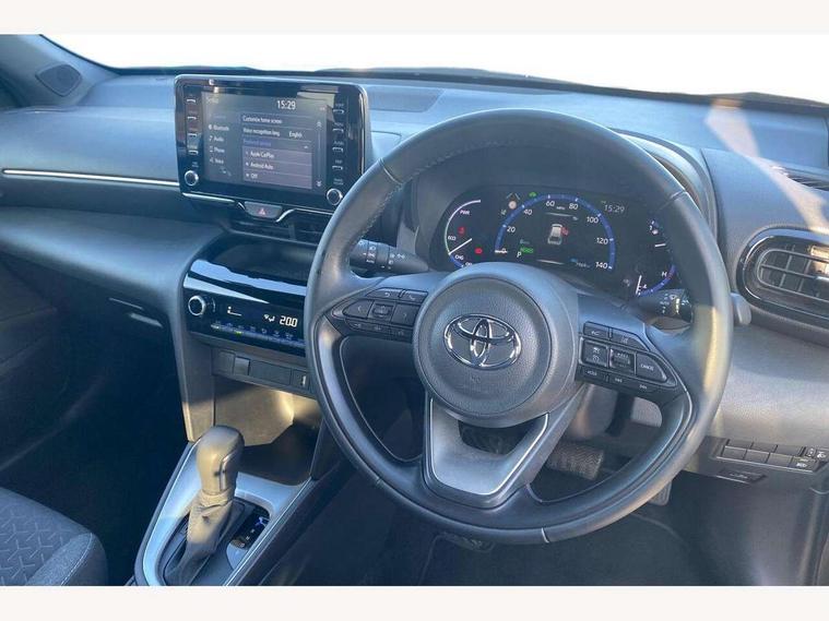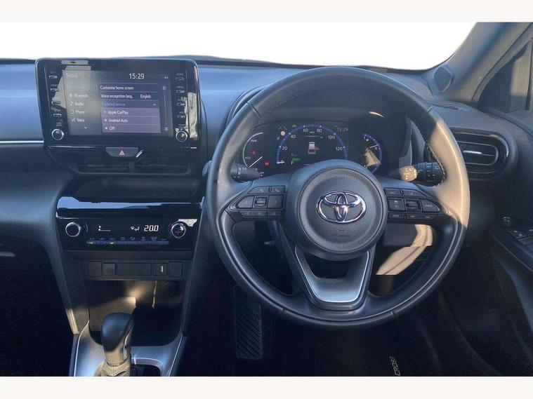 10.5" Multimedia display screen, 7" Multi information display screen, Adaptive cruise control, multi info switches on steering wheel, Adjustable speed limiter, Bluetooth connectivity, Color multi-information display, Digital speedometer, Digital tachometer, Drive mode selector, Driver attention alert system, eCall emergency system, Electric power steering, Emergency driving stop system, Full range intelligent adaptive cruise control, Hybrid system indicator, Intersection turn assist, Key reminder warning, Lane trace assist, My T Connected services, Pre-collision system enhanced with emergency steering assist, Reversing camera, Road sign assist - RSA, Static guide lines on reversing camera, Telephone switch on steering wheel, Wireless Smartphone integration incl Apple CarPlay, Steering assisted vehicle stability control, 6 speakers, DAB Digital radio, Front USB Type-C connector, Front USB-C device charger, 3rd brake light, Acoustic windscreen glass, Anti-jam protection on power windows, Auto high beam [AHB] with on/off switch, Auto intermittent windscreen wipers, Automatic headlights, Automatic headlights cut-off, Black door moulding, Black lower front grille, Black protection moulding on side doors, Black roof rails, Black upper front grille, Black wheel arch mouldings, Body colour door handles, Body colour front bumper, Body colour rear bumper, Electric adjustable heated door mirrors, Follow me home headlights, Front and rear electric windows with auto up/down function, Headlight cut off reminder, Indicators integrated on door mirrors, Intermittent rear wiper, LED daytime running lights guide, LED front fog lights, LED front light guide, LED Indicators, LED projector headlights, LED rear lights with sequential indicators, Manual day/night rear view mirror, Manual headlight levelling, Manually retractable door mirrors, Noise reduction layer on windscreen, Privacy glass, Rain sensor, Rear side wing doors, Rear spoiler, Rear window defogger, Shark fin antenna, 12v power outlet - front, 2x Rear coat hooks, 3 seat bench in 2nd row, 3 spoke leather steering wheel, 40/60 split deckboard, 40:20:40 split folding rear bench seat, Adjustable rear headrests, Adjustable speed limiter switch on steering wheel, Auto air conditioning, Black roof lining, Boot light, Central armrest, Driver and front passenger personal lights, Driver and front passenger Whiplash injury Lesseing seats, Fabric door trim, Fabric upholstery, Front console box, Front cup holders, Front door pockets, Front head restraints, Front/rear assist grips, Gear shift indicator, Gloss black surround on gear shift console, Height adjustable driver's seat, Height adjustable front passenger seat, Hooks for luggage holding belts, ISOFIX child restraint system, Lane departure alert switch on steering control, Leather gearshift, LED centre room light, Manual telescopic and tilting steering wheel, Mirror on driver and passenger sun visor, Pollen air filter, Power adjustable lumbar support on driver seat, Rear cup holders, Rear door pockets, Rear head restraints, Remote air-conditioning system, Single compartment glovebox, Single front passenger seat, Soft tonneau cover, Storage box under boot floor, Voice recognition switch on steering wheel, Yaris cross floor mats, 3x3 point rear seat belts, ABS+EBD+Brake assist, Driver and passenger central airbags, Driver and passenger front airbags, Driver and passenger side airbags, Electronic parking brake, Emergency brake light system (EBS), Front seat belt reminder, Hill start assist control (HAC), Passenger airbag on/off switch, Pre-collision system with pedestrian and cyclist detection, Rear door child safety locks, Rear passenger side airbags, Rear seat belt reminder, Traction control, Tyre pressure warning system, Immobiliser, Intrusion alarm, Keyless smart entry with push button start, Power door locks, Power passenger window lock, Remote door lock, Gloss black side air vent surrounds, Tyre repair kit,