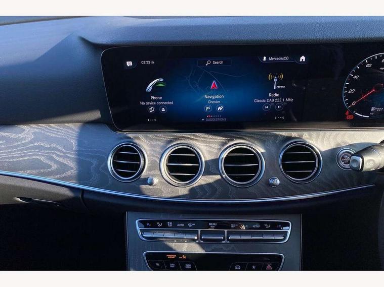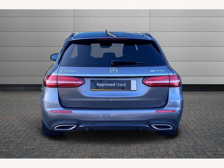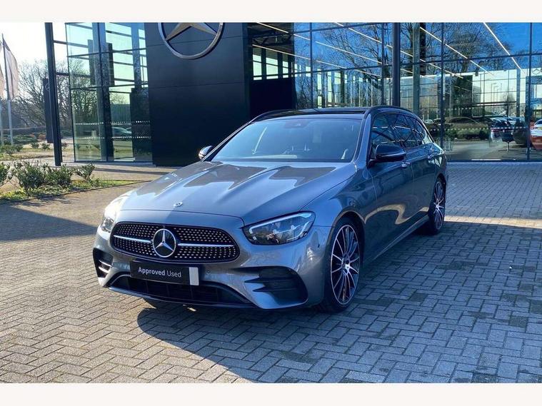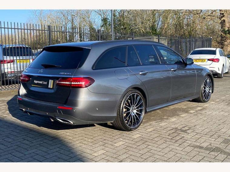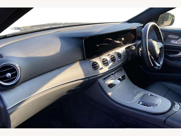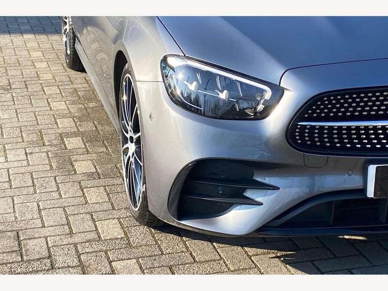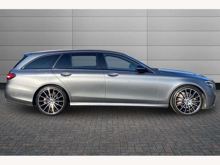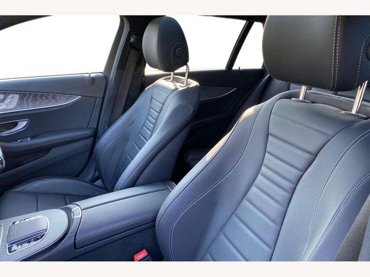 Attention assist, Brake wear warning display, Cockpit display 10.25" widescreen digital instrument cluster, Direct steer speed sensitive steering, DYNAMIC SELECT with a choice of driving modes (ECO, Comfort, Sport, Sport+ and Individual), Easy-pack tailgate - Powered opening/closing automatically, ECO start/stop function, Emergency call service, High resolution 10.25" multimedia colour display, MBUX voice control activated by keywords "Hey Mercedes", Mercedes connect me, Outside temperature display, Remote boot release, Service indicator (ASSYST), Smartphone integration via Android Auto/Apple CarPlay, Media Interface, USB and Bluetooth interface, Status display for rear seat belts in instrument cluster, Touchpad without controller, Traffic sign assist, Trip computer in multifunction display showing current fuel consumption, Wireless charging, 25 litre AdBlue tank, 66 litre fuel tank, 9G TRONIC 9 speed automatic transmission, Agility control sports suspension with selective damping system and lowered by 15mm, Diesel particulate filter, Incorrect fuelling protection, Rear air suspension with level control, 2 USB ports in centre console, 2 USB ports in the rear, Burmester surround sound system with 13 speakers and a 9 channel amplifier with total output of 590 watts, MBUX multimedia system with DAB digital radio and touchpad including satellite navigation, 3rd brake light, Adaptive brake lights, Aerial integrated in rear window, AMG bodystyling front and rear aprons in polished aluminium, Chrome pins diamond radiator grille, surround in high gloss black, single louvre in chrome with insert in high gloss black and integral star, Chrome roof rails, Electric windows with one touch opening/closing and obstruction sensors, Electrically adjustable and heated door mirrors, Front apron in high gloss black, High gloss black exterior mirror housing, High gloss black rear bumper with chrome trim, Illuminated front door sill panels with Mercedes-Benz lettering, LED High Performance headlamps including integral LED daytime running lamps and adaptive highbeam assist, LED rear lights, Panoramic electric glass sunroof, Privacy glass Includes rear side windows and rear windscreen, Rain sensor with automatic headlight activation, Rear side wing doors, Rear wiper, Tail lights, Top surround of side windows in polished aluminium, Visible twin pipe exhaust system integrated into bumper, Waistline trim strip in high gloss black, 3 seat bench in 2nd row, 3 spoke multifunction flat bottom AMG steering wheel with chrome inserts and touch control buttons, trimmed in black nappa leather, 40:20:40 split folding rear bench seat, Artico man-made leather upper dashboard and beltlines with contrast stitching, Automatic child seat recognition sensor, Black door pins, Black roof lining, Central stowage compartment with 12 V socket in centre console, USB socket for use with Android Auto and Apple CarPlay, Courtesy lights in rear grab handles with reading light functionality, Floor mats with AMG lettering, Four way partially front electric seat adjustment, Front centre armrest with stowage compartment, Glasses compartment in overhead control panel, Glove compartment - lockable, air conditioned and illuminated, Head restraints for driver and front passenger (four-way adjustability) and in rear (two-way), Heated front seats, Interior lighting - 64 colour Ambient lighting, Leather upholstery, Seat occupancy sensor for front passenger seat, Single front passenger seat, Steering column electrically adjustable for height and reach, Steering wheel multifunction with gearshift paddles, Steering wheel touch control buttons for audio and onboard settings, Sunvisors with illuminated vanity mirrors, THERMOTRONIC automatic climate control system with 3 climate zones, Mirror pack - E Class, Parking package including 360 degree camera - E Class, Seat comfort pack - E Class, Stowage pack - E Class Estate, 3x3 point rear seatbelts, Active bonnet pedestrian safety measure which detects an impact and raises bonnet, Adaptive brake system with HOLD function and brake drying in the wet, Airbags - sidebag for driver and front passenger with combined thorax/pelvis bag, Anti-lock braking system (ABS), Childproof locks manually operated for rear doors and electrically operated for rear power windows, Driver and adaptive front passenger airbags, Drivers knee airbag, Electronic parking brake, Electronic Stability Programme, Hill start assist, ISOFIX child seat attachment points two outer rear seats, Perforated brake discs with Mercedes Benz lettering, Pre-Safe anticipatory safety system, Tyre pressure monitoring system, Warning triangle and first aid kit, Window airbags, Alarm system/interior protection/immobiliser, Central locking with interior switch, automatic locking and crash sensor with emergency opening function, Chrome surround in electric key, Keyless entry go starting function, Grey open pore ash wood trim and centre console in grey open pored ash wood, 20" AMG multi spoke light alloy wheels painted in high gloss black with high sheen finsih, Summer tyres, TIREFIT with tyre inflation compressor,