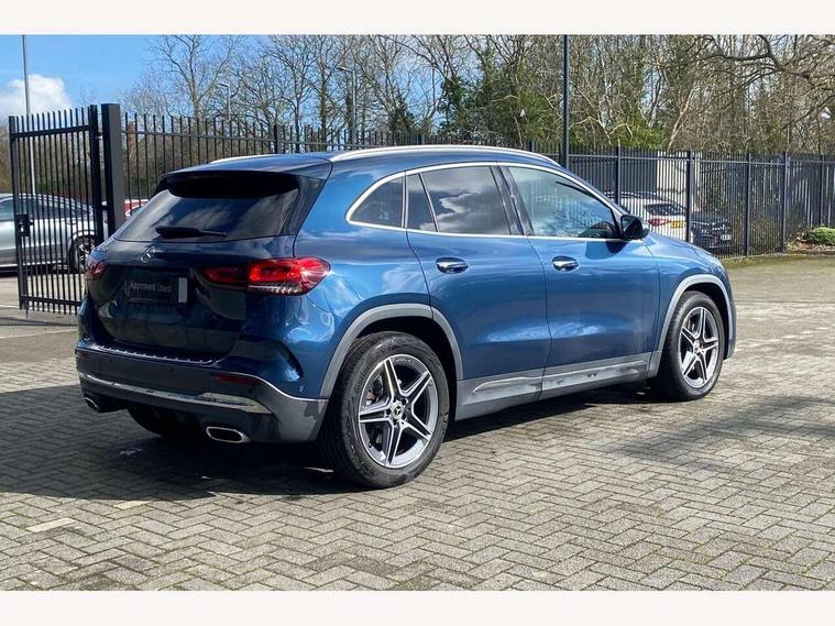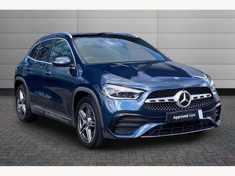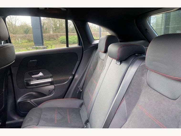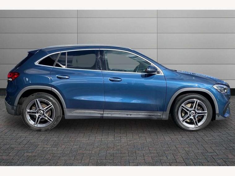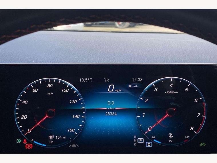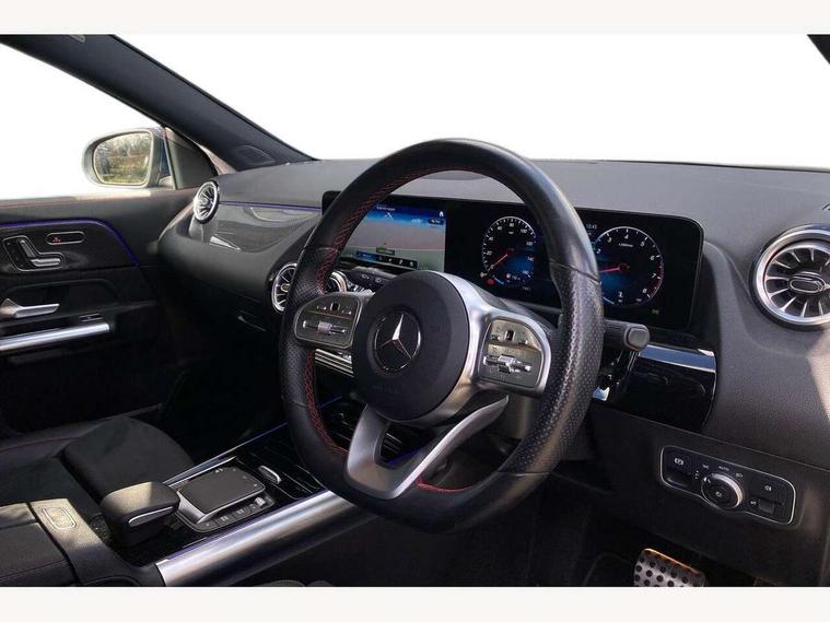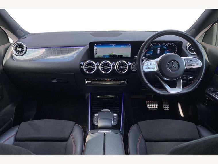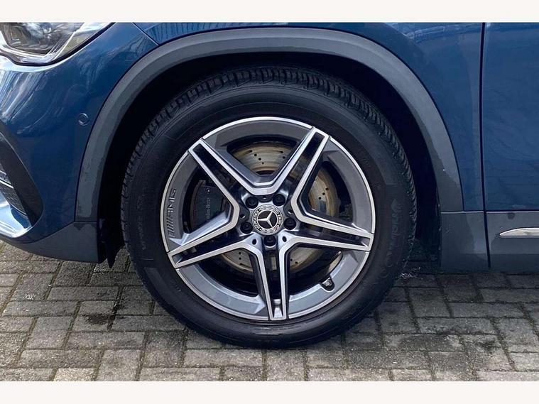 10.25 inch touchscreen central media display, 10.25" Digital instrument cluster display screen, Active lane keeping assist, Attention assist, Direct steering, DYNAMIC SELECT with a choice of driving modes (ECO, Comfort, Sport and Individual), ECO start/stop function, Fluid level warning indicator for fuel, oil, coolant and washer fluid, Hard-disk navigation, Hey Mercedes Voice activation, Lamp failure indicator, Mercedes me connect including emergency call system, accident recovery, breakdown and maintenance management, Mercedes me remote services, Multi function trip computer, Outside temperature gauge, Owners manual and service booklet in English, Pre-installation of private car share, Radio aerial integrated into front and rear windshields, Service indicator (ASSYST), Smartphone integration with Apple CarPlay and Android auto, Status display for rear seat belts in instrument cluster, Traffic sign assist, Lowered comfort suspension, Rear axle multi-link, 2 USB ports (type C) in rear stowage compartment and one in front of center console, Bluetooth connectivity including audio streaming, DAB Digital radio, MBUX multimedia system, Media interface, Mercedes-Benz sound system - 100W, Adaptive brake lights, Aerial for GPS, Aluminium roof rails, AMG front and rear apron, AMG specific/dual flow exhaust pipes in chrome (non-functional), Automatic headlamp activation, Beltline strips and weather strip in chrome, Black grained claddings with chrome parts, Body colour bumpers, Body colour door mirrors, Body coloured door handles with chrome insert for keyless entry, Car wash function, Dark privacy glass from B-pillar backwards, Electric front windows, Electric rear windows, Electrically adjustable and heated door mirrors with integrated LED indicators, Heated glass rear windscreen + timer control, Heated windscreen wash system, Interior mirror with black reading lamps and frameless, LED third brake light, Matt titanium grey front and rear apron trim, Multibeam LED headlamps with adaptive highbeam assist and cornering function, Panoramic sunroof, Pre-installation for trailer coupling, Rain sensor windscreen wipers, Rear fog lights, Roof spoiler, Single lamella raditor grille with chrome dotted diamond grille and inlay, 12V power socket in centre console, 3 spoke multifunction sports steering wheel in nappa leather with flattened bottom and perforated grip area, 40:20:40 split folding rear seat backrests, Adjustable head restraints, Air conditioning - Two zone thermotronic luxury automatic climate control with display, Ambient lighting in front headrests, AMG floor mats with AMG lettering and stiched edging, Artico man-made leather/Microfibre Dinamica upholstery with red contrast stitching, Auto Mercedes-Benz child seat recognition sensor, Black roof lining, Brushed door pulls in silver chrome, Courtesy light in boot, Electrically adjustable front memory seats with four way lumbar support, Front centre armrest with stowage, Galvanished gear shift paddles on steering wheel, Heated front seats, illuminated door sills with changeable cover, Illuminated glovebox, Interior lighting - 64 colour Ambient lighting, Leather trimmed gearknob, Luggage net on driver/front passenger seat backrest, Manually height and reach adjustable steering column, Multi-gesture touchpad control on center console, Sports pedals in brushed stainless steel with black rubber studs, Sports seats, Stowage compartment in centre console, Stowage compartment with retractable cover, Sunvisors with illuminated vanity mirrors, Twin front cup holders, Two outer rear seat isofix and top tether child seat fixing points, AMG body styling pack - GLA, Interior lighting with light and sight pack - GLA, Load compartment pack - GLA, Mirror pack - GLA Class, Parking pack - GLA, 3 rear 3 point seatbelts, ABS with Brake Assist, Active bonnet pedestrain safety measure which detects an impact and raises bonnet by 65mm, Active brake assist includes forward collision warning system with autonomous braking, Adaptive brake assist with hold function and hill start assist, Bonnet with power domes, Brake pad wear warning indicator, Childproof locks manually operated for rear doors and electrically operated for rear power windows, Crash responsive emergency lighting, Driver and passenger head and side airbags, Drivers knee airbag, Dual stage driver/passenger airbags, Electronic parking brake, ESP curve dynamic assist, ESP with ASR, Front and rear seatbelt reminder, Front brake callipers with Mercedes Benz logo lettering on front, Front brake discs internally ventilated and perforated, Front passenger seat occupancy sensor, Tyre pressure monitoring system, Warning triangle and first aid kit, Window airbags, Alarm system with immobiliser and interior protection -Thatcham category 1, Keyless Go starting function, Remote central locking and crash sensor with emergency opening function, Urban guard vehicle protection, Vehicle key with decorative surround in chrome, Carbon structure trim, Chrome air vent surrounds, 19" AMG 5 twin spoke light alloy wheels aerodynamically optimised painted in tantalite grey with a high sheen finish, Summer tyres, Tirefit tyre sealant kit,
