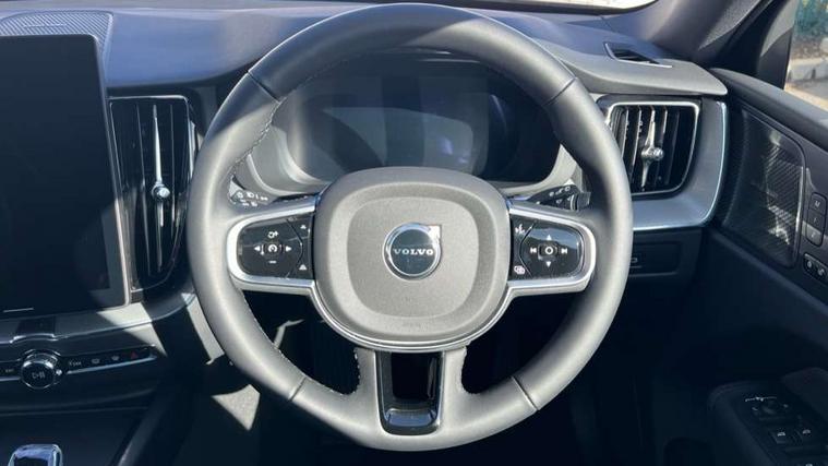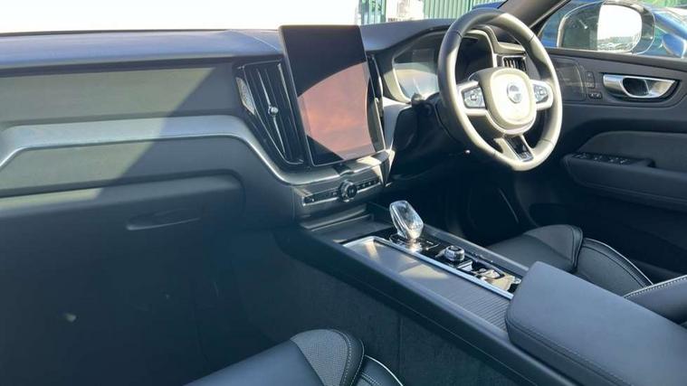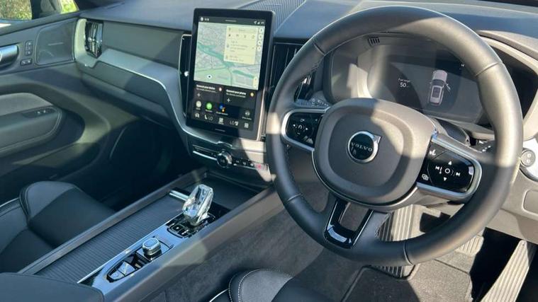 11.2" centre console touch screen, 12.3" Progressive Driver Display, 360 degree surround view parking camera with side proximity sensors, Adaptive cruise control, Adjustable steering wheel force, Android auto (Wired), Apple carplay (wired), Bluetooth handsfree system, Driver alert control with lane keeping aid, Emergency services call system, Front and rear park assist, Google Automotive Services, Intelligent speed assistance, Oncoming Lane Mitigation, PAS, Power operated tailgate with handsfree opening and closing, Service interval indicator, Speed limiter, Speed sensitive steering, Trip computer, Volvo cars services with app, Volvo on call with App, Wireless/Inductive Mobile Phone Charging, 8 speed automatic transmission with start/stop + manual change functions, DAB Digital radio, Premium Sound by Harman Kardon, dirac unison, dolby pro logic II surround sound, 13 speakers/600W output and fresh air subwoofer, Steering wheel remote infotainment controls, Adaptive brake lights with high level LED brake lights, Auto dimming interior + exterior mirrors, Automatic headlight levelling system, Automatic LED Headlights + Active high beam incorporating daytime running lights, Dark tinted windows for rear side windows and cargo area, Electric adjustable/heated/auto power folding door mirrors, Electric front+rear windows, Front aluminium tread plates, Heated front windscreen, High gloss black door mirrors and window surround, High gloss black front and rear bumper decoratives, High gloss black front grille, Surround, Strikethrough and Ironmark, High gloss black rear model, engine and volvo logo badges, Home safe and approach lighting, Integrated roof rails in high gloss black, Puddle lights, Rain sensor with automatic windscreen wiper activation, Rear side wing doors, Rear wiper, Roof antenna, Roof spoiler, Tinted windscreen, Visible VIN plate, 12V socket in front tunnel console and luggage compartment, 3 seat bench in 2nd row, 3 Spoke tailored steering wheel with chrome trim, 4 Zone electronic climate control, A-pillar parking ticket holder, Air purifier particulate matter (PM) 2.5 filter, B Pillar ventilation, Bright metal luggage scuff plate, Centre console cupholders and storage, Charcoal floor mats, Contour sports seats with nappa soft leather/textile upholstery, Front and rear courtesy lights, Front and rear door pocket illumination, Front cupholder illumination, Front footwell illumination, Front reading lights, Front seat cushion extensions, Glovebox compartment with illumination, Head restraints for all seats, Heated front seats, Heated steering wheel, Height/reach adjustable steering column, Illuminated luggage compartment, Illuminated vanity mirrors + ticket holder, Inner door release handle illumination, ISOFIX attachment on outer rear seats, Load cover, Load protection net, Multi directional lumbar support, Power driver seat with memory + exterior mirrors memory, Power height adjustable passenger seat, Power passenger seat with memory, Rear armrest with cupholder, Rear footwell and front and rear side step illumination, Rear reading lights, Rear seat concealed storage, Single front passenger seat, Tailgate illumination and ambient door lighting, Underfloor stowage compartment, Versatile split folding rear seat - 60/40, Driver assist pack without Adaptive cruise control - XC60, 5 three point seatbelts, City safety with steering support with Pedestrian + cyclist + front collision warning with full auto brake and rear auto brake, Drivers knee airbag, Dual stage driver/passenger airbags, Electronic parking brake with auto hold, First aid kit, Front seats SIPS airbags, Hill descent control - Off-road drive mode, Hill start assist, IC (Inflatable Curtains) - Full Length, Passenger airbag cut-off device, Power child locks on rear doors, Road sign information display, Run off Road Mitigation, Run off Road Protection, Seatbelt reminder and pretensioners, SIPS (Side Impact Protection System), Slippery road and hazard light alert, Stability and Traction Control with Spin control, Engine Drag Control and Corner Traction Control, Tyre pressure monitoring system, Vehicle deceleration control with Anti-lock Brake System, Electronic Brake Distribution and Emergency Brake Assist, Warning triangle, WHIPS whiplash protection system - front, Anti-theft alarm including immobiliser/volume sensor + level sensor, Key integrated remote control central locking + fuel flap with deadlocking system and auto open/close power windows, Keyless Drive (includes Keyless Entry and Keyless Start), Locking wheel nuts, Private locking for tailgate, 21" 5 Double spoke high gloss black alloy wheels, Summer tyres,