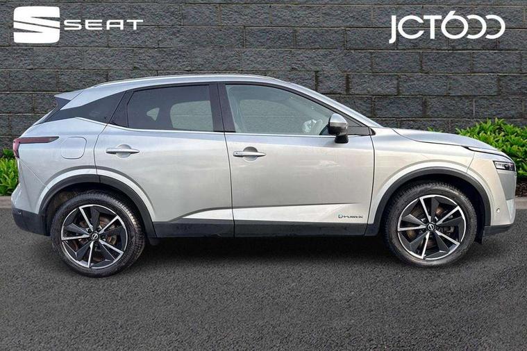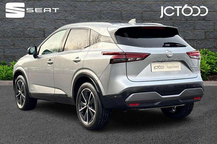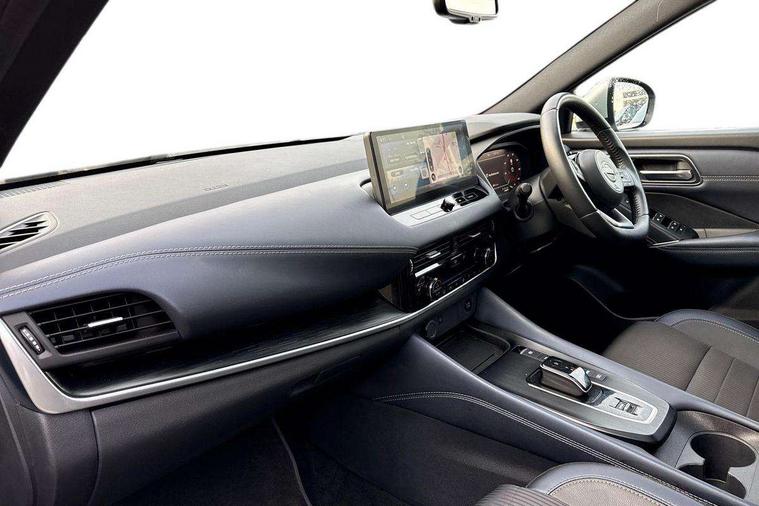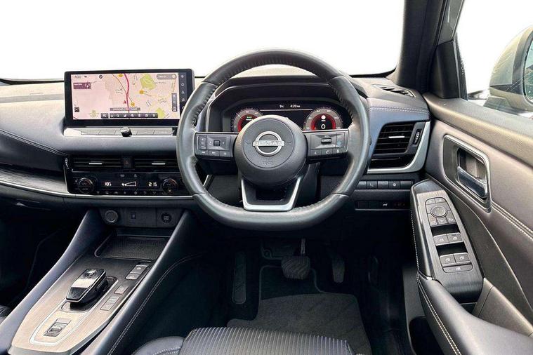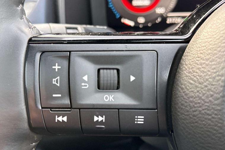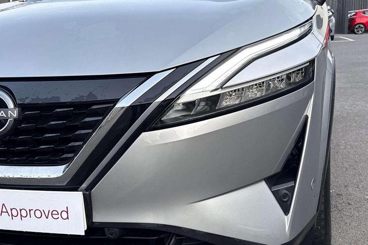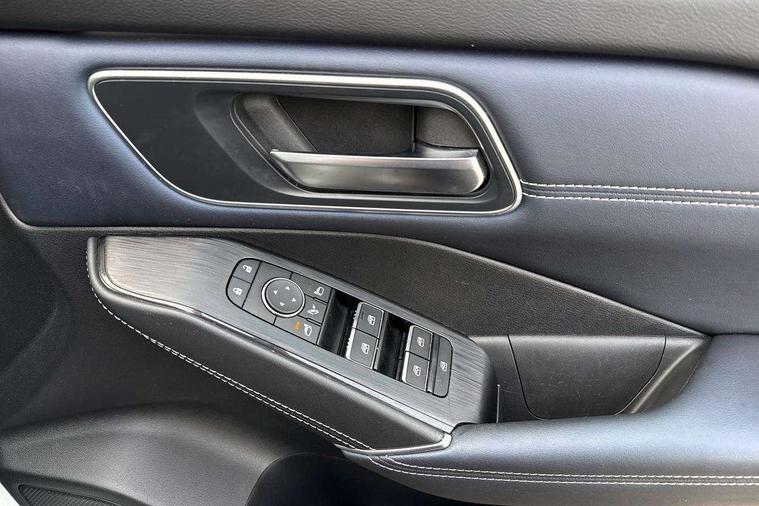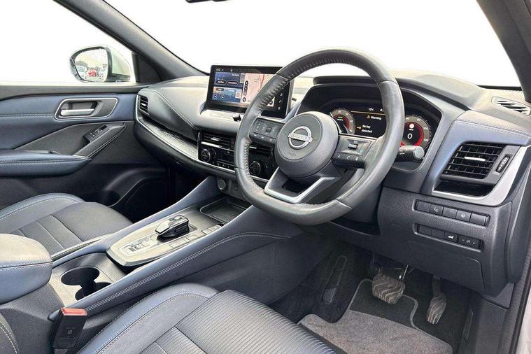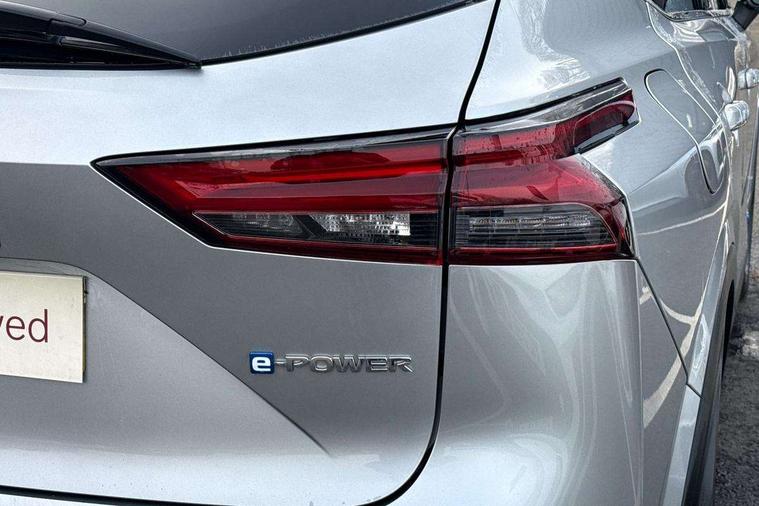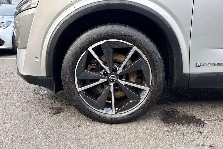 Advanced windscreen head up display, Android auto/Apple CarPlay (Wired), Blind spot warning, Drive modes (sport, normal, eco), Electric speed sensitive power steering, Emergency and breakdown call, Front and rear parking sensors, Full Digital 12.3" TFT Digital Combimeter, Google maps services - search, weather, 3D maps and Google street view, Hands free power tailgate, Idle stop/start system, Intelligent around view monitor, Intelligent Cruise control (ICC), Intelligent driver alert system, Intelligent forward collision warning, Intelligent lane intervention, Lane departure prevention, Lane departure warning system, Lane keep assist, Moving object detection, Nissan connect 12.3 inch touchscreen infotainment system, Nissan connect navigation, ProPILOT with Navi-Link, Push button starter, Rear cross traffic alert, Rear view camera, Remote control services - door locks, lights, horn and car locator, Telematics - notifications and connectivity services, TomTom live traffic services, Traffic sign recognition with legal speed adjustment, Trip computer, Virtual personal assistant and firmware over the air capability, Wireless apple carplay, Wireless charging pad, 6 speakers, AM/FM audio system with DAB, Bluetooth audio streaming, Front USB connections (Type-A and Type-C), Rear USB charging only ports (Type-A and Type-C), Auto dimming rear view mirror, Auto rear wiper when reversing, Automatic hazard signal with emergency stop signal, Body colour mirror caps, Body coloured door handles, Bodyside mouldings, Chrome side window finisher, Door handle with button, e-POWER badging, Electric auto folding door mirrors, Electrically adjustable and heated door mirrors with LED turn indicator, Follow me home headlights, Front and rear LED turning signals, Headlights auto levelling system, Intelligent auto headlights, LED daytime running lights, LED headlights with adaptive driving beam, LED rear lights, One touch front and rear electric windows with remote opening and closing, Partially body coloured bumpers, Privacy glass, Rear bumper with graphite insert, Rear reversing light (bulb lighting), Rear roof spoiler, Rear side wing doors, Rear styling plate, Shark fin antenna, Splash free rain sensing wipers, Super UV and infrared cut glass, Thermaclear heated windscreen, Three blink turn signal, 12v power socket in dashboard and luggage, 2x Rear coat hooks, 3 bench rear seats in 2nd row, 3 rear headrests, 4 folding assist grip, 6 Luggage hooks - 4 on floor, 2 on side, 60/40 split folding rear seat bench, Ambient lighting around centre console, Ambient lighting in front doors, Centre console storage tray, Chrome interior door handles, Cloth/syntech leather monoform upholstery, Dark black/blueish PVC wrapping, Dark headlining, Driver and front passenger sunvisors with illuminated vanity mirrors, Driver seat back pocket, Dual zone automatic climate control with pollen filter, e-POWER shifter, Electrically adjustable driver seat, Electrically adjustable lumbar support for driver, Front and rear door storage, Front centre console and armrest, Front cupholders x 2, Front door with bottle holders, Glovebox with light, Hard trunk cover, Heated front seats, Heated steering wheel, Height adjustable driver's seat, Height adjustable front headrests, Height adjustable passenger seat, Leather steering wheel, Luggage board system, Luggage space lighting, Manual lumbar support on passenger seat, Manually adjustable passenger (slide recline + lifter), Multifunction steering wheel, Passenger seat back pocket, Rear armrest with 2 cupholders, Rear door bottle holders, Single front passenger seat, Soft PVC kneepad, Steering wheel switches, Tilt/telescopic adjustable steering wheel, Two rear isofix child seat anchorage points with top tether, Welcome light and doors with console tray ambient lighting, Glass roof pack with roof rails - Qashqai, 3x3 point rear seatbelt pretensioners + load limiters, ABS with EBD and brake assist, Active brake limited slip, Auto hold function, Child locks on rear doors, Curtain and front side, far side airbags, Driver and passenger airbags, Driver, passenger and 2nd row rear seat belt reminder, Electronic parking brake, Front seatbelt pretensioners + load limiters, Height adjustable front seatbelts, Hill start assist, Intelligent blind spot intervention, Intelligent front emergency braking with pedestrian, cyclist recognition and junction assist, Intelligent rear automatic braking, Tyre pressure monitoring system, Vehicle dynamic control, Capless fuel filler, Engine immobiliser, Intelligent Key, Remote central door locking with deadlocking, Thatcham Cat.1 alarm, Interior instrumental panel C finisher, 19" Diamond cut alloy wheels, Tyre puncture repair kit,