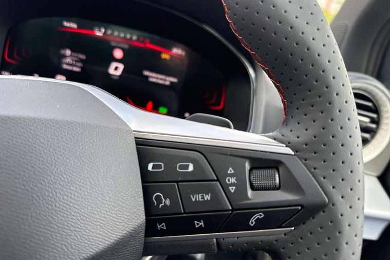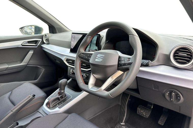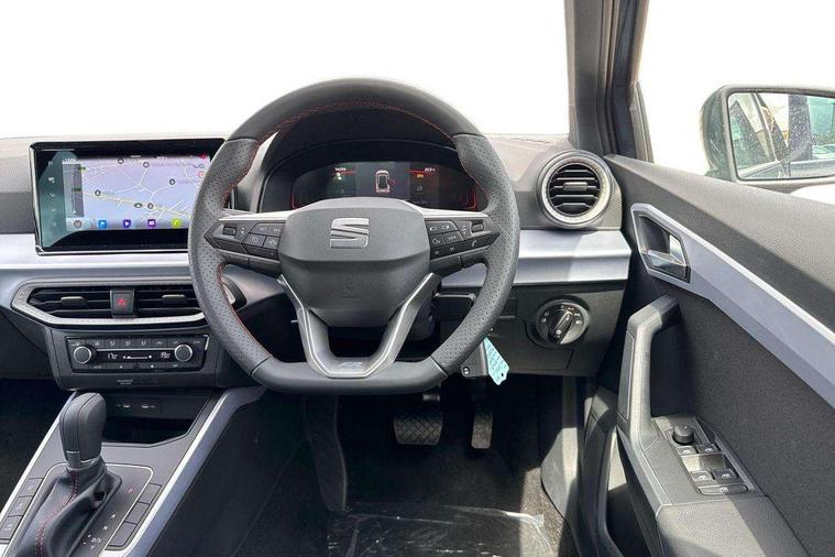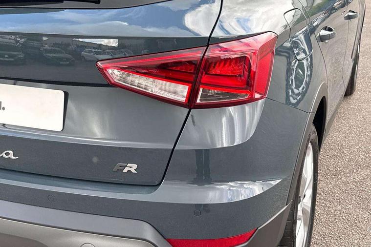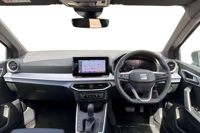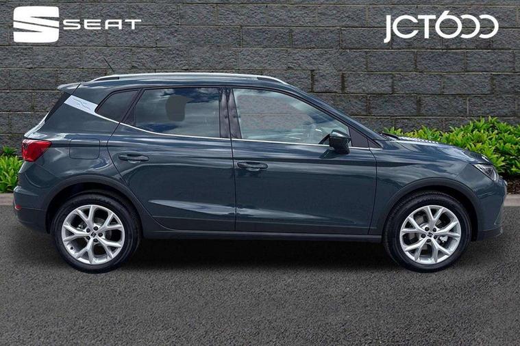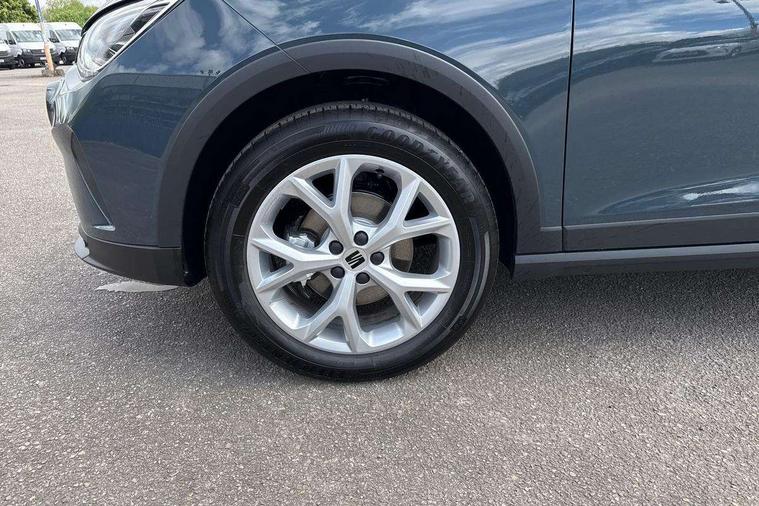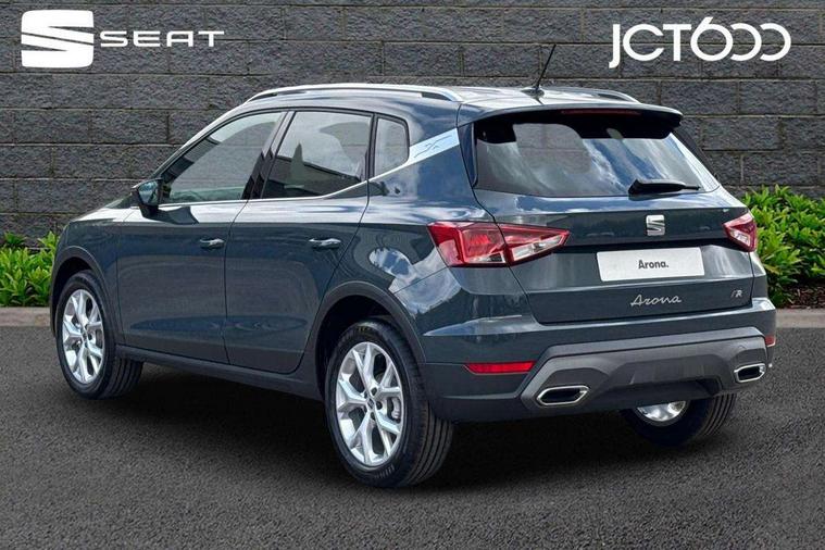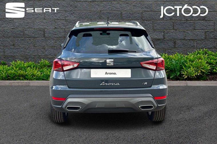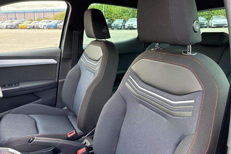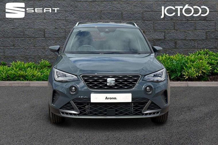 'Lights On' Reminder warning buzzer, 8" Digital cockpit, Digital clock, E-call, Electric speed sensitive power steering, Full link smartphone integration with mirror link, wireless apple carplay, Google android auto + USB Type C cable for apple and android devices, Lane keeping system, Low fuel warning light, Outside temperature display, RPM counter, SEAT Drive profile - Four different models normal-sport-eco-individual, steering response, throttle response and gear shifts mode, Trip computer, Wireless phone charger, 9.2" colour touchscreen with navigation system, voice control and USB port (type c), Bluetooth interface for hands free and audio streaming, DAB digital radio and AM/FM radio, Steering wheel mounted audio controls, Anti theft roof antenna, Auto dimming interior rear view mirror, Automatic activation of hazard warning lights, Body coloured bumpers, Body coloured door handle inserts, Chrome roof rails and window surrounds, Dark tinted rear windows, Electric front/rear windows, Electrically adjustable, heated and folding door mirrors, Front fog lights with cornering function and rear fog light, FULL LED automatic headlights with dynamic headlight range control, coming and leaving home, LED daytime running lights, LED rear tail lights and licence plate lights, Protective side mouldings, Rain sensing wipers, Rear side wing doors, Rear spoiler, Rear window wash/wipe, Roof colour door mirrors, Third brake light, Twin exhaust pipe styling hidden exhaust pipe, Visible VIN plate, 2 cupholders, 3 seat bench in 2nd row, 60/40 split folding rear seat, Aircare filter, Black interior roof, Cloth upholstery, Double boot floor, Driver sunvisor with covered mirror + card holder, Dual zone climate control, Front courtesy light with front reading lights, Gear shift indicator, Height adjustable front seats, Height/reach adjustable steering column, Illuminated air vent surrounds, Illuminated boot, Instrument lighting with brightness control, Interior ambient lighting, Interior light in footwell, central console and door panel, ISOFIX points in outer rear seats with top tether anchorage points, Passenger sunvisor with vanity mirror, Perforated flat bottomed leather steering wheel/gear knob/handbrake with red stitching and FR logo, Potentiometer, Single front passenger seat, Steering wheel mounted gearshift paddles, Two front and three rear height adjustable headrests, Interior chrome pack - Arona, Safe and driving pack (S) - Arona, 3 point seatbelts on all rear seats, ABS, Active front headrests, Child locks on rear doors, Driver and front passenger airbags with front passenger airbag de activation, front side and curtain airbags, Emergency Brake Assist (EBA) and front assist, Front and rear seatbelt reminder, Hill hold control, Multi-Collision braking, Tiredness recognition system, Traction control, Tyre pressure monitoring system, Alarm with back up horn with tow away protection, Deadlock, Electronic engine immobiliser, Locking wheel bolts, Remote central locking, Titan black dashboard, 17" Dynamic alloy wheels,