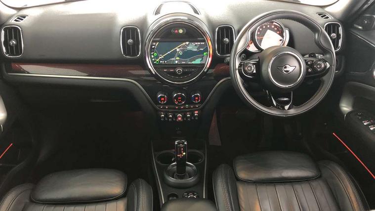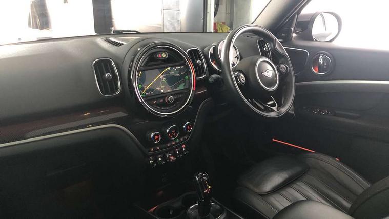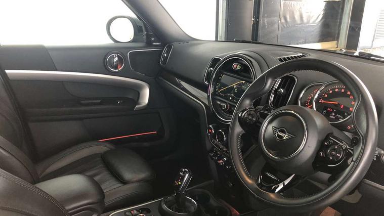 Active Guard incl speed limiting and lane departure functions with auto steering, and front collision warning with brake intervention, Automatic start/stop function with brake energy recuperation, Compatible mobile phone bluetooth with audio streaming, Electro-mechanical speed dependant steering assistance, Instrument cluster, MINI Driving Modes - centre toggle switch to control driving setting (sport, mid and green), Mini E-call, MINI TeleServices, On board computer, Rear parking distance control, Double Vanos system, Fully variable valve control, High precision injection, Performance Control, Steptronic sport transmission with double clutch and steering wheel paddles, FM tuner and DAB digital radio, Bonnet scoop, Chrome border honeycomb structure radiator grille with S badge, Chrome fuel filler cap, Chrome line exterior, Day time driving lights, Dynamic brake lights, Electric windows, Heated rear window, Heated windscreen washer jets, Metal door sill strips with Cooper S imprint, Model logo, Model logo on Tailgate, Rain sensor with auto headlights, Rear fog lights, Rear window wiper, Side scuttle panel with integrated indicator, Split rear doors, Sun/heat protection glass, Twin exhaust tailpipe, White indicator lenses, 12V Accessory socket in centre console, 360L luggage compartment capacity, 4 lashing eyes in luggage compartment, 40:20:40 split folding rear seats, Chrome interior highlights, Cupholders, English handbook, Front headrests, Glove compartment, Height and length steering column adjustment, Interior lighting with 12 basic colours selectable via toggle switch in roof, Isofix rear child seat preparation, Leather gearshift lever and handbrake gaiters, LED reading lights, vanity mirror lights, front foot well light and spotlight on front seats, Manual air conditioning, Mechanical seat adjustment, driver seat height adjust, forward/back and front seats backrest, MINI Yours fine walk nappa leather steering wheel with contrast stitching in silver and MINI Yours badge, Multifunction steering wheel, Passenger seat height adjuster, Rear headrests, Storage compartments in doors, Sunvisors with vanity mirrors, Excitement pack - Countryman, Navigation pack - Countryman, 2 tone horn, 3 point seatbelts on all seats, 6 Airbags - front, side, head and seat belt tensioners, Anti-lock braking system (ABS), DSC - Dynamic Stability Control, Electronic handbrake, Front and rear disc brakes, Hill start assist, Tyre pressure monitoring system, Alarm system with tilt sensor, monitoring doors, bonnet interior and tailgate, Auto drive away locking, Deadlocking function, Electronic vehicle immobiliser, Locking wheel bolts, Start/stop toggle with keyless go, Chrome line interior, Tool kit,
