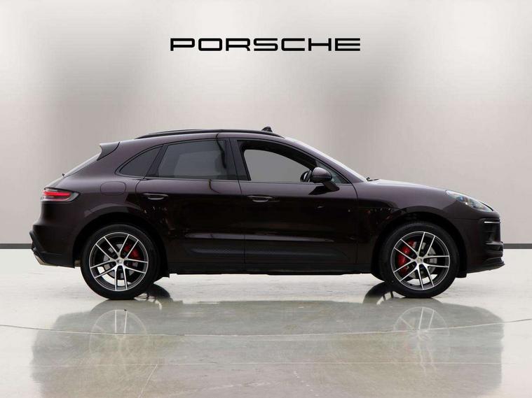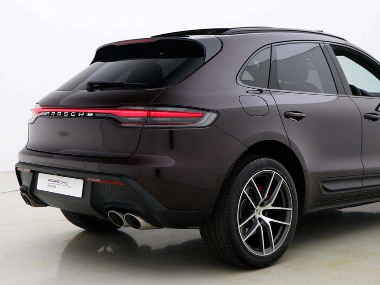 Analogue clock on dashboard, Automatic start/stop system, Automatic tailgate, Digital boost pressure gauge on colour display of instrument cluster, eCall emergency call system, Instrument cluster with high resolution 4.8-inch TFT display, gear indicator for PDK, service interval display, external temperature indicator, fuel gauge, Off-road button, On board computer, Porsche Communication Management (PCM) including online navigation module, mobile phone preparation, audio interfaces and voice control system, Sports button in centre console, 7-Speed Porsche Doppelkupplung (PDK) with automatic mode and manual controls (gearshift paddles) on steering wheel, Direct fuel injection (DFI), Gasoline particulate filter, Steel spring suspension, VarioCam Plus variable valve timing and switchable valve lift, 2 USB sockets in rear centre console, Apple CarPlay with Siri voice recognition, Connect Plus including online navigation, LTE communication module with SIM card reader, wireless internet access, Porsche Car Connect services, DAB Digital radio, Porsche Vehicle Traking System Plus (PVTS Plus), Smartphone compartment with wireless charging, Two USB C charging and connectivity ports in the front centre console storage compartment, Active radiator grille shutters, Automatic headlight activation including welcome home lighting, Bumper system with high strength cross members and two deformation elements + One threaded fixture point for towing eye contained in onboard tool kit, Dynamic cornering lights, speed-sensitive headlight and dynamic range control, adverse weather function, four-point LED daytime running lights, Electric front and rear windows with remote closing function + anti trap + one touch, Electrically folding and heated exterior mirrors, Front light modules with LED position lights and direction indicators, Front windscreen wipers with two speeds, intermittent wipe and rain sensor, Front with integrated cooling air intakes, Fully galvanised body, Heated rear window with automatic switch off, High level 3rd LED brake light integrated into roof spoiler, Loading edge protection in aluminium, Rear side wing doors, Rear window wiper with intermittent function and washer jet, Roof spoiler in high gloss black, Towbar preparation, 3 adjustable rear headrests, 3 rear seats, 4 way adjustable front head restraints, 40:20:40 split folding rear bench seat, Cloth hook b-pillar, Fold up centre console armrest with fore/aft adjustment, Front and rear bottle holders in door panels, Front passenger seat, Glove compartment, Isofix fastening system for child seats on outer rear seats, Luggage compartment cover, Particle/pollen filter with active carbon filter, Rear armrest with 2 cupholders, Storage bin in centre console, Storage compartment in side of luggage compartment and storage compartment in spare wheel recess, Storage pocket in front and rear doors, Two integrated cup holders in front with variable diameter, Two socket 12V power outlets in front console and luggage compartment, Uncovered storage compartment in centre console, Ambient comfort lighting pack - Macan, Lower exterior trim package in black - Macan, 3-point automatic seatbelts with front and outer rear seats pretensioners and force limiter + manually height adjustable seatbelt + reminder warning, 6-piston aluminium monobloc fixed caliper brakes at front, internally vented brake discs, Auto hold function, Brake discs with 360 mm diameter at front and 330 mm at rear, Child locks on rear doors, Curtain airbags along entire roof frame and side windows from A pillar to the C pillar, Electronic parking brake, Front passenger airbag deactivation facility for installation of child seats indicator in overhead console, Front side airbags integrated into seat, Full size driver and passenger airbags, Multi-Collision braking, Porsche hill control (PHC), PTM(Porsche Traction Management) and All-wheel drive with map-controlled multi-plate clutch, Roll over sensor for curtain airbag and seatbelt pretensioners, Side impact protection in doors, Tyre pressure monitoring system, Vehicle stability system, Porsche stability management (PSM) including ABS, ASR, ABD, MSR and trailer stability management, Vented discs brake with combination floating calipers at rear, Alarm system with ultrasonic interior surveillance, Dashcam prep, Engine immobiliser with key transponder, Remote control central locking, Accent trims with silver coloured finish, Tyre repair kit,