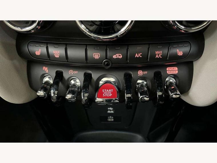 Apple CarPlay, Automatic start/stop function with brake energy recuperation, Compatible mobile phone bluetooth with audio streaming, Cruise control with brake assist, Electro-mechanical speed dependant steering assistance, Flexible car sharing preparation, Instrument cluster, MINI Driving Modes - centre toggle switch to control driving setting (sport, mid and green), Mini E-call, MINI TeleServices, On board computer, Rear park distance control, Service interval indicator, Double Vanos system, Fully variable valve control, High precision injection, Performance Control, Steptronic transmission with double clutch, 8.8" touchscreen with LED ring, FM tuner and DAB digital radio, 3rd brake light, Automatic headlight activation switch, Body colour fuel filler cap, Chrome line exterior - radiator grille bars, tailgate handle, lower front grille grating and rear central fog-light, Dynamic brake lights, Electric front windows, Heated rear window, Heated windscreen washer jets, LED headlight with closed ring and daytime driving lights, Metal door sill strips with MINI imprint, Model logo Cooper on right of tailgate, Rain sensor window wipers, Rear fog lights, Rear LED lights with union jack design, Rear window wiper, Side scuttle panel with integrated indicator, Sun/heat protection glass, White indicator lenses, 12V Accessory socket in centre console, 2 seat bench in 2nd row, 4 lashing eyes in luggage compartment, 60/40 split folding rear seat, Carbon black colour line - Knee roll and door armrest, Chrome interior highlights, Chrome line interior - air vents, gear lever base, door handles and speakers in doors, Cupholders, Front and rear head restraints, Front and rear isofix with front passenger airbag deactivation, Front floor mats in velour, Glove compartment, Height and length steering column adjustment, Interior lighting with 12 different colours across the dashboard, underneath door bezel with illuminated laser-engraved design on central display, Leatherette gearshift lever and handbrake gaiters, LED reading lights, vanity mirror lights, front foot well light and spotlight on front seats, Manual air conditioning, Mechanical seat adjustment - forward/back & backrest for front seats and driver seat height adjust, MINI yours badge on exterior pillar, Multifunction steering wheel, Passenger seat height adjuster, Satellite grey headlining including grab handles and clothes hooks, Single front passenger seat, Storage compartments in doors, Sunvisors with vanity mirrors, Walknappa leather steering wheel with grey seam and MINI Yours badge on Piano Black lower steering wheel spoke, 3 point seatbelts on all four seats, 6 Airbags - front, side, head and seat belt tensioners, Anti-lock braking system (ABS), DSC - Dynamic Stability Control, Front and rear disc brakes, Single tone fanfare horn, Tyre pressure monitoring system, Alarm system with tilt sensor, monitoring doors, bonnet interior and tailgate, Electronic vehicle immobiliser, Start/stop toggle with keyless go, Tool kit,