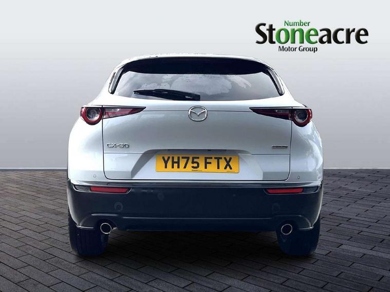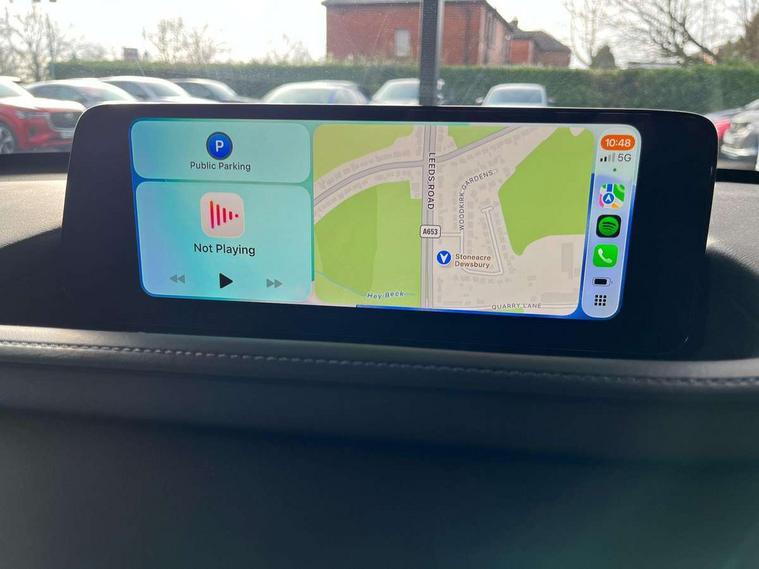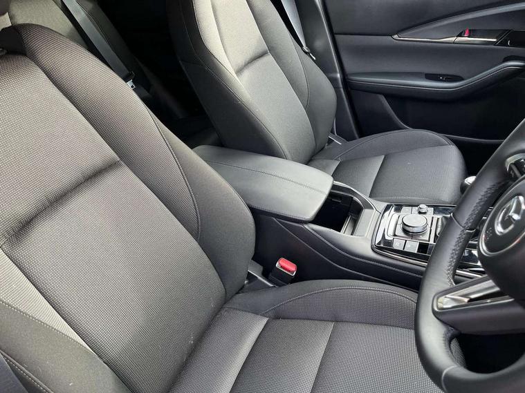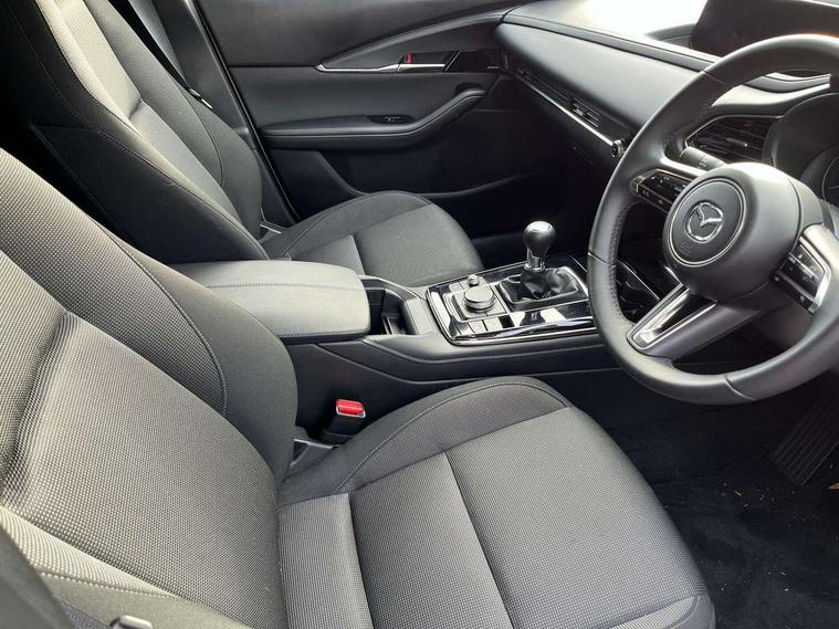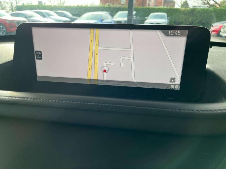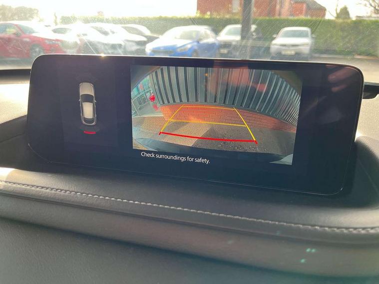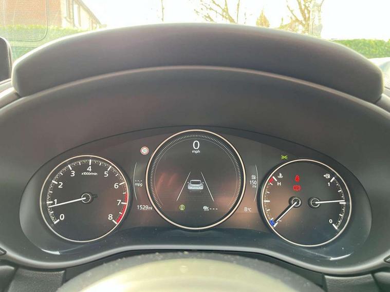 10.25" display with Mazda Connect infotainment, 7" TFT Colour driver instrument panel display, Adaptive cruise control (Mazda radar cruise control), Blind spot monitoring with rear cross traffic alert, Driver attention alert system, E-call with GPS, Emergency stop signalling system, Engine start/stop button, Front and rear parking sensors, Integrated Alexa Voice Assistant, Integrated bluetooth, Integrated Mazda navigation system, Intelligent speed assist, Lane keep assist system (LAS) with Lane departure warning system (LDWS), Mazda connected services, PAS, Power lift gate, Qi wireless charging, Reversing camera, Service indicator, Tailgate, Traffic sign recognition, Trip computer, Windscreen projected colour active driving display (HUD), Wireless Apple CarPlay/Android Auto, Cylinder Deactivation, i-stop, 2 x USB Type-C inputs, AM/FM and DAB radio, Bose surround sound system with 12 Speaker, Bose center point, Bass match and audio pilot technology, Multimedia Commander including separate volume dial, Steering wheel mounted audio/bluetooth controls, Adaptive LED Headlights, Auto dimming driver's door mirror, B-pillar and C-pillar garnishes in gloss black finish, Body coloured, electrically adjustable, heated auto power folding door mirrors with integrated indicators, Chrome finish signature wing in front grille, Coming/leaving home lighting function, Dual bright finish exhaust tip trim, Dusk sensing headlights, Electric front/rear windows with one touch auto up/down, Frameless auto dimming interior rear view mirror, Front kodo turn signal, Gloss black front grille, Gloss black rear roof spoiler, High beam assist, LED auto headlight levelling, LED signature daytime running lights, Privacy glass (rear side windows and rear screen), Rain sensing front wipers with adjustable speed and intermittent wipe, Rear fog lights, Rear side wing doors, Rear wiper, Signature LED rear combination lights, Third brake light, 12V power outlet in centre console, 3 seat bench in 2nd row, 60/40 split fold down rear seats, Bright interior trim accents with steering wheel centre bezel, surround of engine start / stop button and glove box handle, Cloth upholstery with interior accents, Dark cloth door panel inserts, Dashboard, door cards and front centre armrest in black cloth, Driver and front passenger visors with covered vanity mirror and driver ticket holder, Driver seat manual slide, recline, height and seat tilt adjust, Driver, front passenger and two rear door storage, Driver, Front passenger and two rear grab handles with coathooks, Dual zone climate control air conditioning with rear air vents, Folding rear centre armrest with two cup holders, Front and rear (x3) head restraints, Front and rear LED lighting, Front armrest, Front centre storage with two cupholders with lid, Front passenger seatback pockets, Front passengers seat manual slide, recline and height adjustment, Gear shift indicator, Glovebox illumination, Heated front seats with 3 stage setting, ISOFIX child seat anchorage points attached on outer rear seats, Leather wrapped gear shift knob, Leather wrapped steering wheel with telescopic and tilt adjustment, LED luggage compartment lighting, Light roof headlining and pillars, Roof mounted sunglasses holder, Single front passenger seat, 3 point ELR front seat belts x2 with pretensioners, 3 point ELR rear seat belts, Anti-lock braking system (ABS), Drivers knee airbag, DSC - Dynamic Stability Control, Electronic parking brake with auto disengage function and auto hold function, Front and rear curtain airbags, Front dual stage driver and single stage front passenger airbags, Front passenger airbag cut-off switch, Front side airbags, Front smart city brake support, G-Vectoring control plus, Hill launch assist, Manual child lock in rear doors, Mild Hybrid system with regenerative braking, Seatbelt reminder for driver/front passenger and rear seats, Traction control system (TCS), Tyre pressure monitoring system (TPMS), Remote central locking with deadlocking and automatic door lock when driving, Smart keyless entry, Thatcham accredited alarm and immobiliser, 18" Silver metallic alloy wheels, Emergency tyre repair kit,