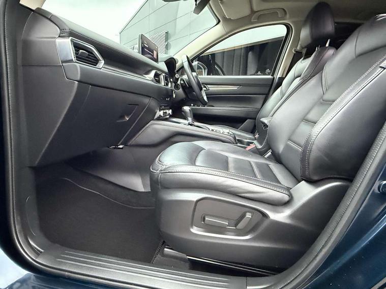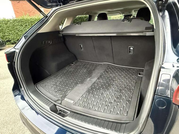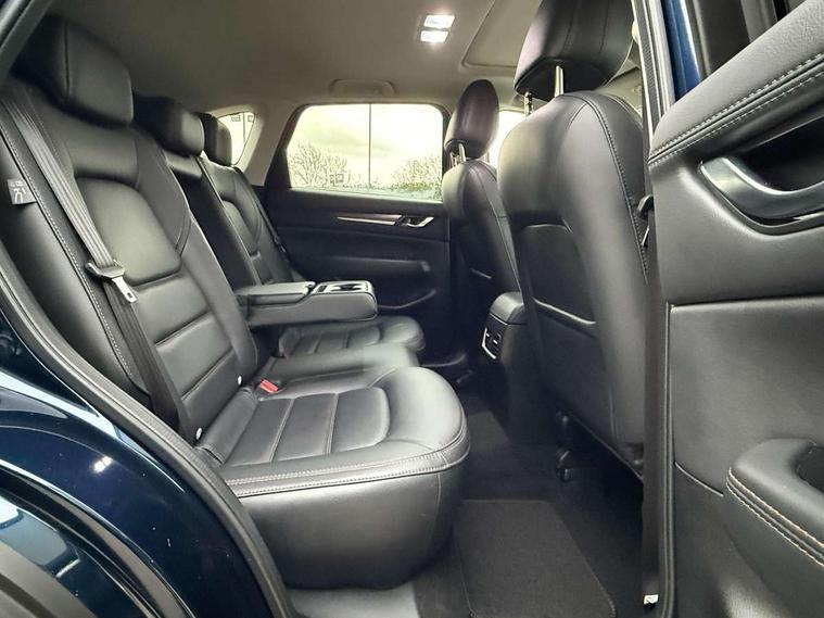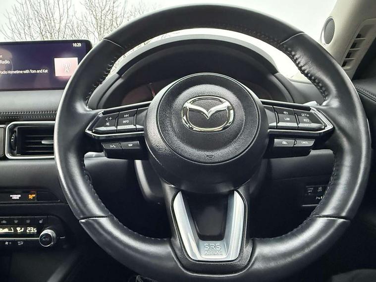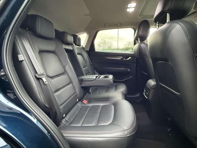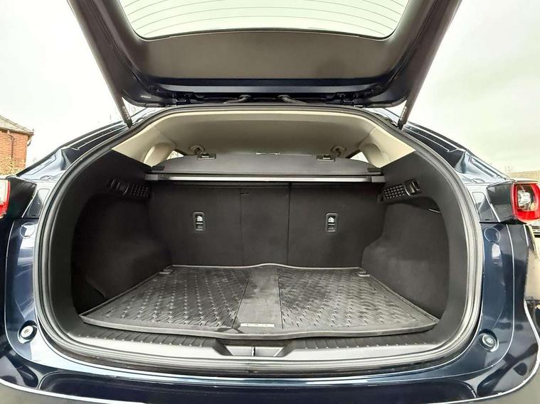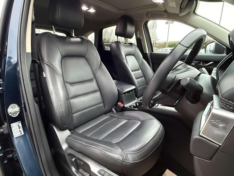 10.25" display with Mazda Connect infotainment, 7" colour TFT display, Advanced blind spot monitoring, Bluetooth connectivity with voice control, Collision prevention assist, Connected services, Cruising Traffic Support, Drive mode selector, Electric power steering, Emergency stop signalling system, Engine start/stop button, Forward collision warning, Front and rear parking sensors, Integrated navigation system, Intelligent speed assist, Lane departure warning system, Lane keep assist, Power liftgate, Qi wireless phone charging, Radar cruise control with Stop and Go, Rear cross traffic alert, Reversing camera, Service indicator, Traffic sign recognition (TSR), Trip computer, Windscreen projected colour active driving display (HUD) with memory, Wireless apple car play/android Auto, Cylinder Deactivation, i-stop, AM/FM radio, Bluetooth audio streaming, Bose premium sound system with 10 speakers, DAB Digital radio, Multimedia Commander including separate volume dial, Steering wheel mounted audio controls, Adaptive front lighting system, Auto dimming rear view mirror, Automatic headlights, Black inlay dashboard panel, Body colour door mirrors, Body colour roof spoiler, Body coloured front and rear black lower bumper mouldings, Coming/leaving home lighting function, Door mirror integrated indicators, Dual chrome tailpipes, Dusk sensitive headlamps, Electric front/rear windows with one touch auto up/down, Front grille in gloss black finish, Front grille in gloss black finish with chrome signature wing, Gloss black B and C pillars garnish, High beam assist, Intermittent rear wash/wipe, LED auto levelling, LED daytime running lights, LED front fog lights, LED Headlights, LED third brake light, Power folding and heated door mirrors, Power tilt/slide sunroof, Privacy glass (rear side windows only), Rain sensing front wipers, Rear side wing doors, Satin black side mouldings, Scuff plates, Shark fin antenna, Signature LED rear combination lights, Variable intermittent front wash/wipe, Vinyl with wood grain metal inlay door trim panel, Windscreen wiper de-icer, 12v electrical power outlet, 3 seat bench in 2nd row, 3 stage heated front seats, 40:20:40 Karakuri fold-flat seat system, 6 way electric adjustable passenger seat, 8 way electric driver seat with lumbar support + memory, Cargo room flat floor board with waterproof undertray, Driver seat power slide, recline and height adjustment, Driver, Front passenger and two rear grab handles with coat hooks, Driver/passenger front seatback pockets, Driver/passenger sunvisors + illuminated vanity mirrors (drivers with ticket holder), Dual zone climate control, Folding centre armrest with 2 cup holders, Front and rear door pockets, Front centre storage with two cupholders, Front passenger seat power slide, recline and height adjustment, Heated steering wheel, Humidity sensor, Illuminated glovebox, Interior dome light with integral spotlight, ISOFIX child seat anchorage points attached on outer rear seats, Karakuri tonneau cover, Leather upholstery, Leather wrapped steering wheel and gear knob, Light roof lining, Luggage compartment LED lighting, Luggage compartment power outlet, Paddle shifts, Rear air vents, Rear headrests, Rear seat recline, Roof mounted sunglasses holder, Single front passenger seat, Three height adjustable head restraints, Tilt/height adjustable steering wheel, USB Connectivity (2x front Type-C, 2x rear Type-B), White interior LED illumination lighting, 3 point front seatbelts with pre-tensioners, 3 rear 3 point seatbelts, ABS, Advanced Smart City Brake Support - SCBS, Child locks on rear doors, Driver and front passenger side airbags, DSTC-Dynamic Stability and Traction Control, Dual front airbags, Electronic brake force distribution, Electronic parking brake with auto hold, ESP, Front and rear curtain airbags, Front passenger airbag deactivation, G-Vectoring control, Hill hold assist, Seatbelt reminder front and rear, Single stage passenger airbags, Smart brake support with forward obstruction warning, Tyre pressure monitoring system, Automatic door locking when moving off, Deadlock, Immobiliser, Power door locks, Remote central locking, Smart keyless entry, Thatcham Cat.1 alarm, 19" diamond cut black alloy wheels, Tyre repair kit,