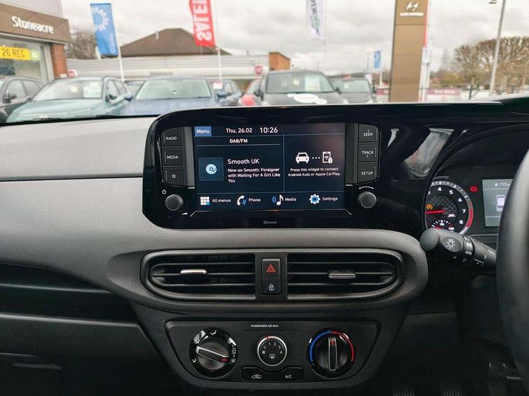 8" Touchscreen centre console display audio with smart device integration and DAB, Apple car play/Android Auto, Bluetooth connectivity with voice recognition, Cruise control + speed limiter, Driver attention alert system, eCall emergency call system, ISG - Idle stop and go, Lane departure warning system with lane keep assist - LKAS, PAS, Rear view camera, Roadside assistance, Trip computer, 2 front/2 rear speakers, Steering wheel audio, phone and cruise controls, USB socket, 1 speed non intermittent rear windscreen wiper, Black finish on B pillars, Body colour door handles, Body coloured bumpers, Body coloured door mirrors, Electric front windows, Electric rear windows, Electrically adjustable and heated door mirrors, Front grille in matte black, Front intermittent wipers, Halogen daytime running lights, Halogen headlights, Heated rear window, High beam assist, Indicator light on door mirrors, Rear roof spoiler with integrated LED brake light, Rear side wing doors, 12v power outlet - front, 3 seat bench in 2nd row, 60/40 split folding flat to floor rear seats, Air conditioning, Auto light control, Bottle holders in front/rear doors + front centre console, Cabin and luggage compartment interior lighting, Cloth upholstery, Driver + passenger vanity mirrors, Driver's seat height adjustment, Driver/passenger sunvisors with ticket holders, Front door pockets, Front Head Restraints - Vertical and Horizontal Adjustment, Glove compartment, Height adjustable steering column, Isofix child seat preparation, Leather wrapped steering wheel and gear knob, Metal paint effect interior door handles, Rear door pockets, Single front passenger seat, Vertical adjustment rear head restraints, 3x3 point rear seatbelts, Airbags - front, front side and curtain airbags, Anti-lock brake system (ABS), Autonomous emergency braking (AEB) with forward collision warning system, Brake assist function, Childproof rear door locks, Electronic stability control, Front and rear seatbelt reminder, Front seatbelt pretensioners, Hill start assist control (HAC), Passenger airbag deactivate switch, Traction control, Tyre pressure monitoring system, Immobiliser, Perimeter alarm, Remote central locking, Second remote key, Speed sensitive auto door locking, 15" Alloy wheels, Tyre repair kit,