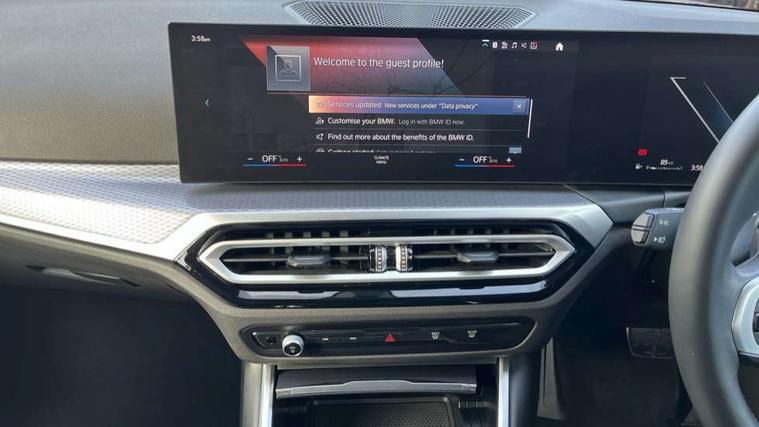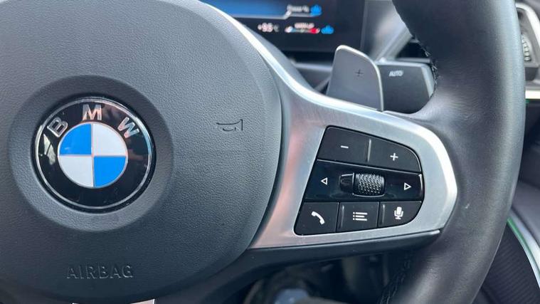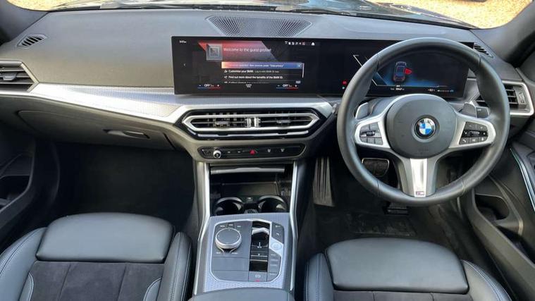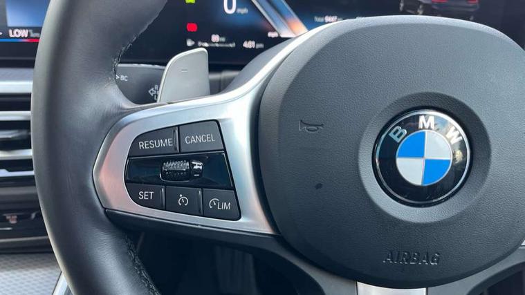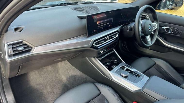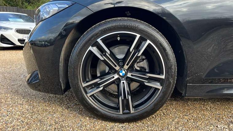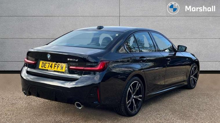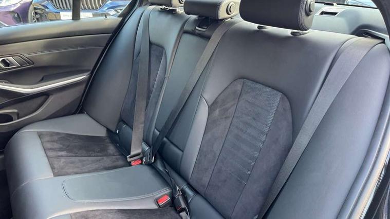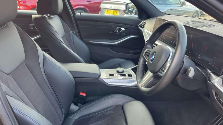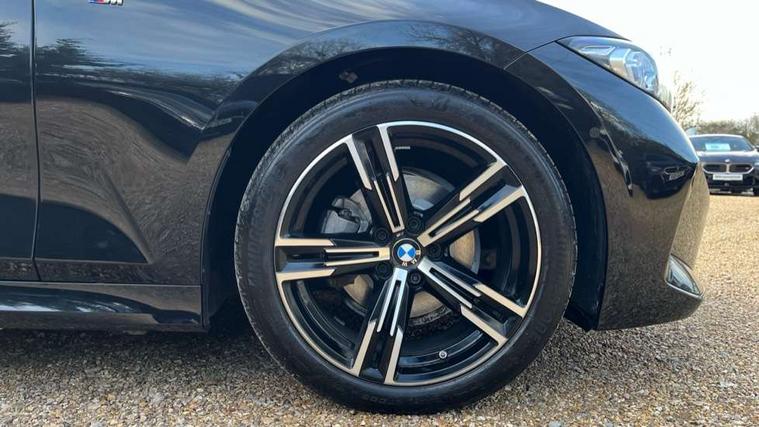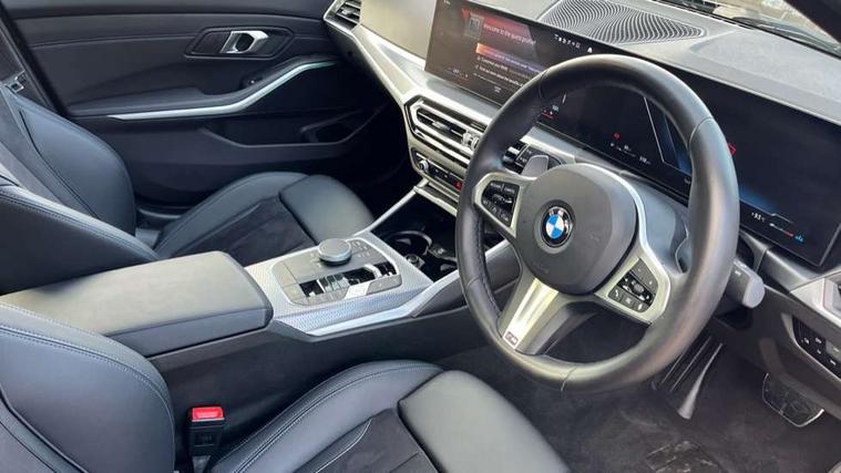 Active guard plus, Attentiveness assist, Automatic Start/stop button, BMW iDrive, BMW Teleservices, Condition based service, ConnectedDrive Services, Driving experience switch, Live cockpit plus with Navigation + 12.3" instrument display + 14.9" display, Intelligent voice assist, 2 USB, 4G LTE connect, Oil sensor for level and grade, Preparation for driver assistance, Shifting point display, Variable sport steering, 48V Mild hybrid technology, Double joint spring strut front axle, Electronic differential lock control (EDLC), Fuel tank breather system, Larger capacity fuel tank, M sport suspension, Sport automatic transmission with steering-wheel mounted gearshift paddles and launch control, DAB tuner, 3rd brake light, Acoustic glazing, Automatic headlight beam throw control with load dependent regulating reaction, dynamic compensation of braking dive and acceleration squat, BMW emblem, engine compartment lid and tailgate, Body colour roof fin, Door sill strips, Electric windows - front and rear, with open/close fingertip control, anti-trap facility and comfort closing, Follow me home headlight function, Front and rear bumper system with replaceable deformation elements, Front apron plastic in body colour, Fuel filler flap - right rear in body colour, Heated washer jets, High gloss shadow line exterior trim, Illuminated bow type door handles in body colour drivers side with door lock, Interior rear view electrochromatic mirror with automatic anti dazzle function, LED rear lights, Licence plate panel integrated into front bumper and tailgate, Matt black B-pillar finsher, Matt black window recess cover, Model designation on right side of tailgate, One piece front bumper cover including towing eye cover in body colour, Rain sensor with automatic headlight activation, Rear boot, Rear side wing doors, Reversing lights, Side frame decorative moulding black matt, Visible exhaust tailpipe finisher, Welcome lights in interior and door handle area, 12V power socket in front storage compartment, 2 front cupholder in centre console with clamping elements and matt black inlay, 3 seat bench in 2nd row, 3 zone automatic air conditioning, 40:20:40 split folding rear seat with loading system, Ambient inside door handle light, Ambient light design projected onto the left and right entering and exiting area, Ambient lighting front and rear with 9 selectable colours, Ambient storage compartment lighting in the centre console, Anthracite headlining, Armrest integrated in front and rear door trim + front centre console armrest, BMW ID, Contour lighting in instrument panel and door trim panel, Cruise control operation in steering wheel, Driver backrest width adjustment, Folding rear centre armrest with 2 cupholders, Front and rear ambient footwell lighting, Front and rear door exit lighting (left / right), Front and rear headrests, Front and rear reading lights, Front and rear velour floor mats, Front sport seats, Heated front seats, Height adjustable mechanically and infinitely variable steering column, Illuminated armrest storage compartment, Illuminated glove compartment, Illuminated luggage compartment, Lashing eyelets in luggage compartment, M Sport multifunction leather steering wheel, Make-up mirror lights, Single front passenger seat, Standard seat for driver and passenger with manual adjustment, Sunvisors with vanity mirrors and ticket pocket, Toolkit located in luggage compartment, Connected pack professional - 3 Series Saloon/Touring, Interior and exterior mirror pack - 3 Series Touring/Saloon, M Aerodynamics package - 3 Series Saloon/Touring, M sport exterior styling pack - 3 Series Saloon/Touring, Storage compartment pack - 3 Series Saloon/Touring, 3x3 point rear seatbelts, BMW emergency call, Child locks on rear doors, Crash sensor activating of airbags, Unlocking doors, hazard warning lights, interior light, safety battery terminal, Driver and front passenger with seat occupancy detection for driver's and passenger side, Driver and passenger side airbags, body protection at side and airbags deploy from seat backrests, Dynamic brake control, Dynamic stability control + (DSC+) - Anti-lock Braking System (ABS) with brake assist and cornering brake control + Automatic Stability Control (ASC), Dynamic Traction Control - DTC, Electric parking brake including automatic hold function and automatic release of the parking brake when driving off, Head airbags in 1st and 2nd row, head protection at side, curtain airbags open from headliner above 1st and 2nd row, Plastic fuel tank, Side impact protection, Tyre pressure monitoring with three level warning strategy, Ventilated front and rear disc brakes, Warning triangle and first aid kit, Alarm system, Centre lock switch, Closing system with central locking, Electronic vehicle immobiliser,