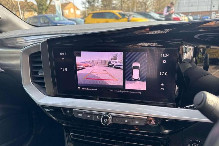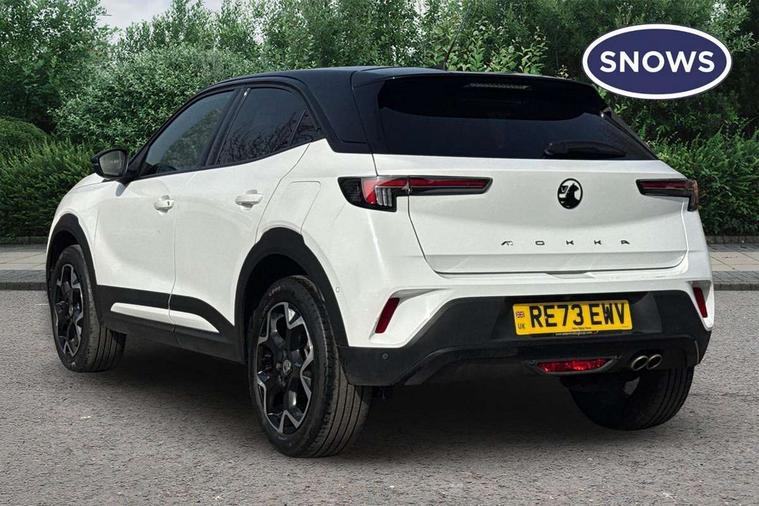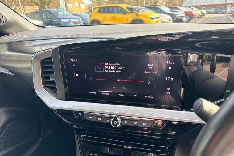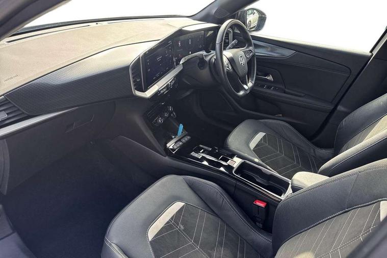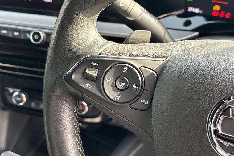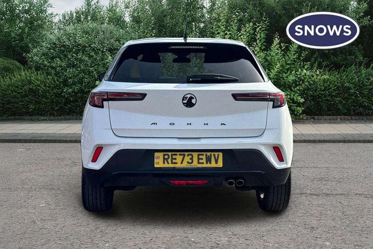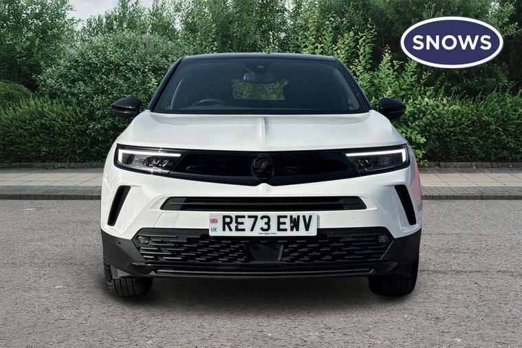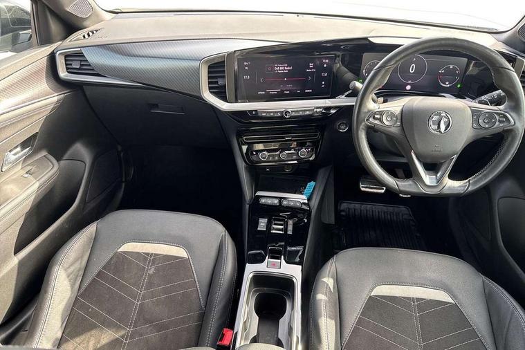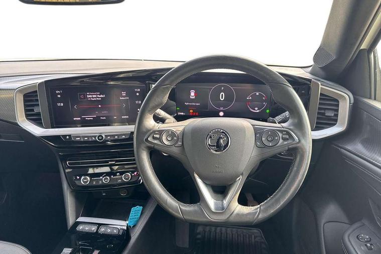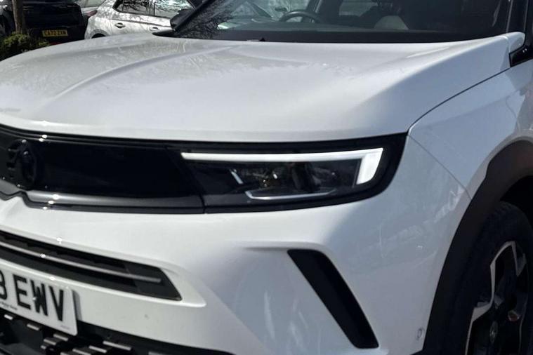 12" digital instrument cluster, Adaptive cruise control with speed limiter, Advanced Park Assist, Digital instrumentation with digital speedometer, rev counter, fuel and water temperature gauge, Driver drowsiness alert system, Driver information display with multi function trip computer, audio info, digital clock and outside air temperature with ice warning function, Engine start/stop button, EV information display, Extended traffic sign recognition, Front and rear parking distance sensors, Front camera and radar system, Lane keep assist system (LAS) with Lane departure warning system (LDWS), Lane positioning assist, Lights on audible warning, Panoramic rear view camera, Power assisted speed sensitive steering, RDS with traffic programme, Side blind spot alert and flank guard, Smartphone integration compatible with Apple CarPlay and Android Auto, Sports switch with engine sound enhancement, Start/stop system, Vauxhall connect with e-Call, Wireless charging for smartphone, 8 speed automatic transmission, 6 speakers, AM/FM stereo radio with 36 station presets, DAB Digital radio, Flexible Roof Mounted Radio Aerial, Front USB connection, Mobile phone portal - bluetooth connect, vehicle microphone, handsfree calls, SMS read out and reply, phone book access, Multimedia Navi Pro with 10" colour touchscreen, Steering wheel mounted controls, Two rear USB sockets, Adaptive brake lights, Automatic headlamp levelling, Automatic lighting control with tunnel detection, Automatically dimming anti dazzle rear view mirror, Black door mirror housings, Black front and rear bumper inserts, Black Griffin logo and vizor frame, Black upper window moulding, Body colour door handles, Body colour front and rear bumpers, Dark tinted rear side windows + tailgate window, Electric adjustable/heated/folding door mirrors + puddle lights, Electrically operated front and rear windows with safety auto reverse and one touch up/down facility, Hazard warning lights, Heated rear window+rear wash/wipe, High beam assist with anti glare, Integrated black tailgate spoiler, IntelliLux Matrix LED headlights with adaptive forward lighting, LED 3rd brake light, LED daytime running lights, LED front fog lamps, LED side repeat indicators, LED tail lights, Rear foglight, Rear side wing doors, Reversing light, Solar heat absorbing windscreen and windows, Two speed rain-sensitive windscreen wipers with variable intermittent wipe, Windscreen and side window demist vents, 12V Accessory socket, 3 seat bench in 2nd row, 3 spoke flat bottomed leather steering wheel with satin chrome bezel, 4 speed fan with illuminated controls, 6 way manual adjustable driver fore/aft, up/down with reclining seatback, 6 way manual adjustable front passenger fore/aft, up/down with reclining seatback, 60/40 split folding rear seat, Air recirculation system, Alcantara/leather upholstery, Alloy sports pedals, Black headliner, Cabin particulate filter - removes dust, airborne particles and pollen, Centre console with two cup holders at front and one in rear, Chrome effect interior door handles, Door pockets with two litre capacity, Driver and passenger sun visors with vanity mirror, Driver seat lumbar support and massage function, Electronic climate control (ECC), Four adjustable facia vents, Four load restraint lashing eyes, Front centre armrest with storage, Front head restraints, Front map reading lights, Front seat back storage pockets, Fully carpeted load area, Heated front seats, Heated steering wheel, Interior courtesy light, Interior tailgate handle, Luggage compartment cover, Luggage compartment lighting, Movable boot floor, Reach + rake adjustable steering column, Single front passenger seat, Steering wheel mounted paddle shift, Three height adjustable rear seat head restraints, Twin gas assisted tailgate struts, Black Pack with badge - Mokka, 2x Isofix child seat fitting on outer rear seats, 3x3 point rear seat belts, Anti-lock braking system (ABS), Child proof locks on rear doors, Cornering brake control, Deactivation switch for front passenger front and side impact airbags, Drag torque control, Driver and front passenger airbags, front seat side impact airbags, full size curtain airbags, Electronic brake force distribution, Electronic Stability Programme (ESP), Emergency brake assist, Enhanced automatic emergency braking with pedestrian detection, Forward collision alert at all speed, Hill start assist, Inertia reel lap and diagonal seatbelts for all seats, Seatbelt unfastened audible warning and warning light, Straight line stability control, Traction control, Tyre pressure monitoring system, Electronically protected audio equipment, Engine deadlock immobiliser, Freewheeling door locks, Key left in ignition audible warning, Keyless entry and start, Locking wheel nuts, Remote control central locking, Remote control ultrasonic security alarm system, Visible vehicle identification number, Atlantis black trim inserts of front doors, Black facia with silver trim insert, Instrument panel bar in polar silver, 18" bi colour alloy wheels,