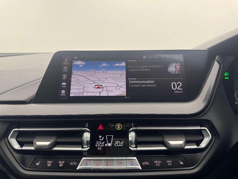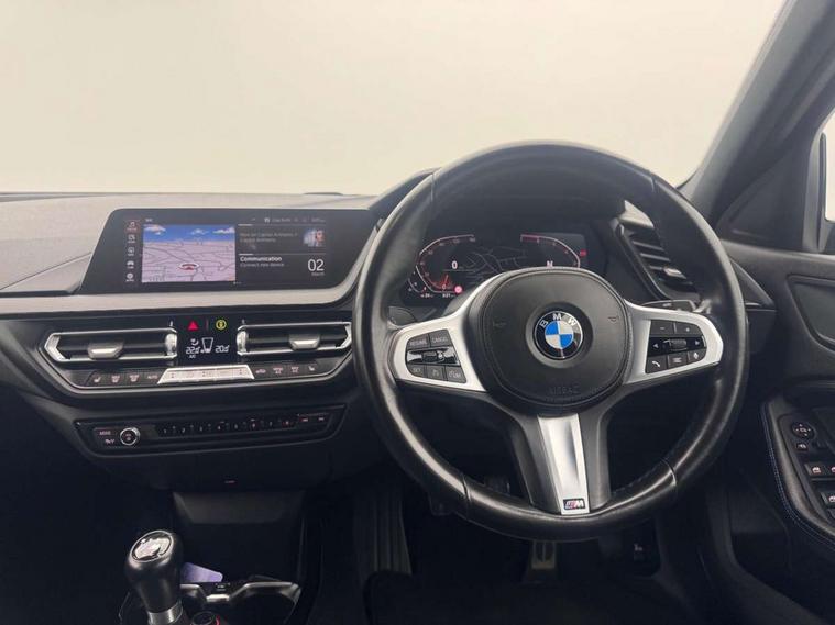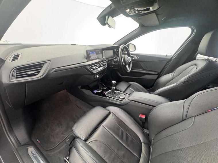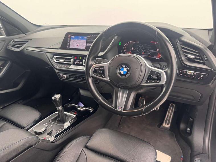 Active guard plus, Attentiveness assist, Bluetooth / WiFi interface for wireless connection of mobile terminal devices and audio streaming, BMW ConnectedDrive online services, BMW Teleservices, Check Control warning system for monitoring of lights and door/luggage compartment open warning, Cruise control with brake assist, Eco pro mode, Front axle single joint with specific axle kinematics to minimise drive influences on steering + provide increased rigidity agile driving behaviour, Head up Display, Integrated owners handbook, Lane departure warning system, Oil sensor for level and grade, On board computer, Optimum shift indicator, Park assist including reversing assistant, lateral parking aid and reversing assist camera, Personal Profile, Pull away assistant, Rigidly mounted rear subframe - Multi link construction with separate spring / damper configuration and excellent driving characteristics, Speed limit Info including no-overtaking indicator, Speed limiter, 6 speed manual transmission, Aluminium lightweight construction, Anti roll bar front and rear, Balancer shaft, Double VANOS twin scroll turbocharging system, Drive Performance Control, Electronic differential lock, High precision injection, M sport suspension, Petrol Particulate Filter, Twin tube gas filled shock absorbers with degressive characteristic curve, VALVETRONIC engine management, DAB Digital radio, Stereo speaker system with 2 mid range speakers in the front door trims and rear parcel shelf + 2 central bass speakers underneath the front seats, Auto dimming rear view mirror, Automatic headlight beam throw control, Automatic windscreen wipers and automatic headlight, BMW adaptive LED headlights, BMW individual high gloss shadow line with extended content, Body colour door handles, Body colour mirror caps, Body colour roof trims, Chrome 'M' logo side designation, Chrome exhaust twin tailpipes round 90mm in left, Chrome kidney grille frame with Satin Aluminium struts, Direction indicator side lights in exterior mirrors, Fading support, Folding side mirrors with auto dimming/folding wing mirrors with auto dimming, Follow me home headlights, Front and rear bumper system with replaceable deformation elements, Front and rear electric windows with open and close fingertip control, anti trap facility and comfort closing, Front door sill finishers in black plastic with M designation in metallic look, Green tinted heat protection glazing, Heated, electrically adjustable exterior mirror aspheric on driver side, convex on passenger side, High beam assistant, High gloss shadowline window frame, Recess cover mirror frames and B/C pillar embelisher trim, High level third brake light, Integrated front windscreen with washer jets, LED daytime running lights, LED eyebrow turn indicators, LED front fog lights, Lightweight engineering, M Sport spoiler, Matt black air guide grilles, Matt black wheel arch trim, Model designation on electric bootlid, Nearside reverse light in rear light cluster, Preparation for high beam assistant, Rear fog lights, Rear side wing doors, Rear window wiper, Shark fin antenna, Sun protection glass, Trailer stabilisation logic, Visible VIN plate, Welcome lighting, 12V power socket in front centre console with blanking plug, 3 rear seat head restraints, 3 seat bench in 2nd row, 3 spoke sports leather steering wheel in black leather with black stitching and decorative finisher in pearl chrome, specific M badge + leather knob, Ambient interior lighting, Anthracite headlining, Child seat ISOFIX attachment for two outer rear seats and front passenger seat with anchorage points, Conditioned based service, Driver and front passenger seat heating, Floor mats in anthracite velour with contrasting colour seam to match contrast stitching on instrument panel, Folding rear clothes hook, Four grab handles integrated in roof lining, Front and rear door pockets with bottle holders, Front and rear side armrest integrated into door trim, Front armrest, Front sports seats, Gearshift lever with M designation, Glove compartment, Height adjustable front head restraints, Luggage compartment for bag hooks on left and right, foldable luggage compartment liner and two lashing eyelets, Manual adjust steering wheel, Multi-function controls for steering wheel, Single front passenger seat, Storage compartment in centre console, Sun visors with vanity mirrors and insert tab, Two front centre console cupholders, Two zone automatic air conditioning, Additional interior lighting pack - 1 Series, Additional storage compartment pack with code 493 -1 series, BMW live cockpit professional pack- 1 Series, Connected pack professional - 1 Series, Interior lights pack - 1 Series, M Sport exterior styling aerodynamics pack - 1 Series, 2 tone horn, 3 point seatbelts on all seats, front pyrotechnic belt tensioners, stopper and belt force limiters, rear coded belt buckles, Airbags - Front driver/passenger, front and rear curtain head protection, front side, manual deactivation of front passenger airbag, Anti lock braking system (ABS) with brake assist, BMW emergency call, Brake drying, Braking readiness, Child proof locking system in rear door, City braking function, Comfort modes, Cornering brake control, Crash sensor activating central locking release, hazard warning lights, fuel cut off, interior lighting + activation of safety battery terminal clamp, Driver and front passenger seat belt security check, Dynamic stability control + (DSC+), Dynamic Traction Control - DTC, Electrically operated hand brake, Front and rear disc brakes, M Sport brakes with blue calipers M designation in front, M Sport seatbelts, Seatbelt warning, Side impact protection, Tyre pressure monitoring system, Warning triangle and first aid kit, Central locking switch for all doors, fuel filler cap and luggage compartment, Deadlocking function system to all doors, Drive away locking system on all doors and luggage compartment with de-activated in iDrive settings, Locking wheel bolts, Re