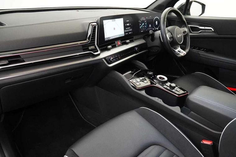 12.3" Display with navigation, 12.3" supervision colour cluster display, 360 degree around view monitor, Apple car play/Android Auto with voice control, Blind spot collision avoidance assist, Blind spot view monitor, Drive mode selector, E-call, Forward collision avoidance assist (FCA) - city/pedestrian/cyclist/junction covering, Front and rear parking sensors, Highway Driving Assist (HDA), Intelligent speed limit assist, Kia Connect (UVO), Lane Following Assist (LFA), Lane keep assist, Low washer fluid warning, Parking collision avoidance assist (PCA), Remote smart parking assist, Reversing camera system integrated into centre fascia screen, Smart cruise control with stop and go functionality, Smart power tailgate, Speed sensitive power steering, Trip computer, Windscreen washer level indicator, Wireless Smartphone charger, Intelligent Stop and Go, Terrain mode select (Mud, Snow, Sand), Bluetooth audio streaming, DAB Radio with MP3, Harman Kardon premium sound system, Rear USB port, Steering wheel mounted audio controls, USB C type charging ports on centre console, USB C type charging ports on side of front seats, USB port for connection of a media device, All round electric windows with drivers and front passenger auto up/down function, Automatic headlight control system, Automatic window defogger, Backlite glass heated with timer, Body colour and black bumper with silver accents, Body colour exterior door handles, Body colour radiator upper garnish and door garnish, Dual LED adaptive headlamps, Electric panoramic glass sunroof (Electric one touch with safety function), Electrically adjustable/heated/folding door mirrors with LED indicators, Front and rear chrome skid plates, Gloss black door mirrors, Gloss black radiator grille, Gloss black side sill and wheel arch body mouldings, Glossy black roof rack, High beam assist, Interior electrochromic mirror, LED daytime running lights, LED front fog lamps, LED High mounted stop light, LED rear combination lamp, Rain sensing wipers with aero blades, Rear fog lamp, Rear privacy glass, Rear side wing doors, Rear spoiler, Rear wiper, Satin finished beltline, Silver coloured inserts to bumpers, Tinted rear glass, Trailer stability assist, 10 way driver/8 way passenger electrically power adjustable seats, 12V power socket in front centre fascia and luggage compartment, 3 seat bench in 2nd row, 3 x passenger assist grips, 40/20/40 split folding rear seat, All-round height adjustable headrests, Ambient lighting, Black headlining, Centre console storage box, Cupholders in rear armrest, D-Shaped sports leather steering wheel and perforated inserts with GT-Line logo, Door courtesy lamps, Drink holder at centre armrest, Driver and front passenger side sunvisors with illuminated vanity mirrors, Driver seat memory function, Drivers seat power lumbar support, Front and rear door storage, Front seat and rear pockets, Front/rear centre armrests, Gear shift indicator, Glovebox illumination, Heated front and outer rear seats, Heated steering wheel, Interior door lock/unlock function, ISOFIX Child seat top tethers and anchor fixings outer rear seats, LED interior personal lamp, LED lighting in overhead console, Luggage area LED light, Luggage area load cover, Luggage net with hooks, Metal paint interior door handles, Paddle shift controls, Rear cabin light, Rear coat hooks, Single front passenger seat, Sports pedals, Suede leather upholstery, Three zone climate control, Tilt/telescopic adjustable steering wheel, Ventilated front seats, Ventilation ducts to rear compartment, Active front headrests, All round 3-point seatbelts, Anti-lock braking system (ABS), Dual front side airbags, Dual horn, Electronic parking brake, Electronic stability control with downhill brake control, Front passenger airbag cut-off switch, Front seatbelt pretensioners + load limiters, Height adjustable front seatbelts, Hill start assist control (HAC), Impact sensing auto door unlocking, Multi collision brake assist, Rear door child safety locks, Rear seat alert system, Traction control, Twin curtain airbags, Twin front airbags, Tyre pressure monitoring system, Advanced anti-theft system including immobiliser and alarm, Door deadlocks, Engine Start/Stop Button with Smart Entry System, Locking wheel nuts, Speed sensitive auto door locking, Visible vehicle identification number, Aluminium pattern finish centre fascia and door garnish, 18" GT-Line alloy wheels, Michelin tyres, Tyre mobility kit,