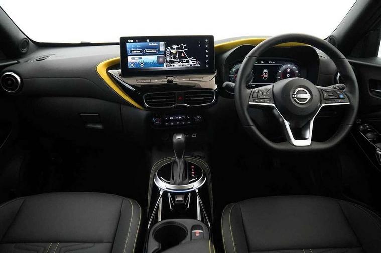 12.3" full colour TFT screen combimeter, Drive modes select (Eco, normal and sport), e-Pedal step, Emergency and breakdown call, EV mode switch, Front parking sensor, Intelligent driver alert system, Intelligent lane intervention, Lane departure warning system, Nissan connect 12.3" touch screen entertainment system, Nissan connect nav with TomTom traffic, Nissan connect services, Outside temperature sensor, Power Steering, Rear parking sensor, Stop/start button, Traffic sign recognition, Trip computer, Voice recognition, WiFi connectivity, Wireless Apple CarPlay and Google Android auto, Wireless Smartphone charger, 10 Bose speakers 8 speakers and 2 headrest speakers for driver/passenger seats, 2 X Rear console USB port, Bluetooth system, USB, Aux-in and 12V socket, Bose personal plus audio system, DAB Digital radio, Auto dimming frameless rear view mirror, Automatic hazard signal with emergency stop signal, Body colour door handles, Electrically adjustable door mirrors with integrated indicators, Follow me home headlights, Front and rear electric window with one touch driver window, High beam assist, LED 3rd brake light, LED daytime running lights, LED front fog lights, LED headlamps, LED rear fog lamp, LED rear lamps, One touch passenger window, Rear privacy glass, Rear side wing doors, Rear wiper, Roof spoiler, Shark fin roof antenna in solid Black, Solid black door mirrors, Three blink turn signal, 3 height adjustable rear headrests, 3 seat bench in 2nd row, 60/40 split folding rear seat, Card holder on driver sunvisor, Door ambient lighting, Driver seat back pocket, Driver side rear coat hanger, Driver/passenger sunvisors and vanity mirrors, Front and rear cabin lights, Front armrest, Front door pockets with bottle holders, Front head restraints, Front/rear passenger grab handles, Gear console ambient circle lighting, Height adjustable driver's seat, Internal chrome door handles, Luggage board, Luggage space lighting, Monoform sporty seats, Multifunction steering wheel, Passenger seat back pocket, Rear door bottle holders, Single front passenger seat, Smooth synthetic leather steering wheel, Synthetic leather kneepad, Synthetic leather shift knob, Telescopic steering wheel adjustment, Two cupholders in front centre console, Two rear isofix child seat anchorage points with top tether, Welcome light and console tray ambient lighting, Comfort pack - Juke, Gloss black exterior personalisation pack - Juke, Heat pack with height adjustable passenger seats - Juke, Interior personalisation pack - Juke, ProPilot pack - Juke Auto, ABS with EBD and brake assist, Active ride control, Active Trace Control, Driver and passenger airbags, Driver and passenger side airbags, Electric handbrake with auto hold function, Electronic Stability Programme (ESP), Front and rear curtain airbags, Height adjustable seatbelts, Hill start assist, Intelligent emergency braking with pedestrian and cyclist recognition, Rear door child safety locks, Seatbelt reminder for driver/front passenger and rear seats, Three 3 point rear seatbelts, Traction control, Tyre pressure monitoring system, VDC Dynamic Vehicle Control, Alarm, Immobiliser, Intelligent key and start push button with walk away lock and approach unlock functions, Remote central locking, Tyre puncture repair kit,