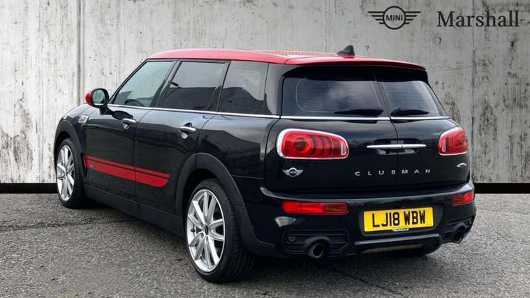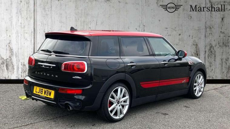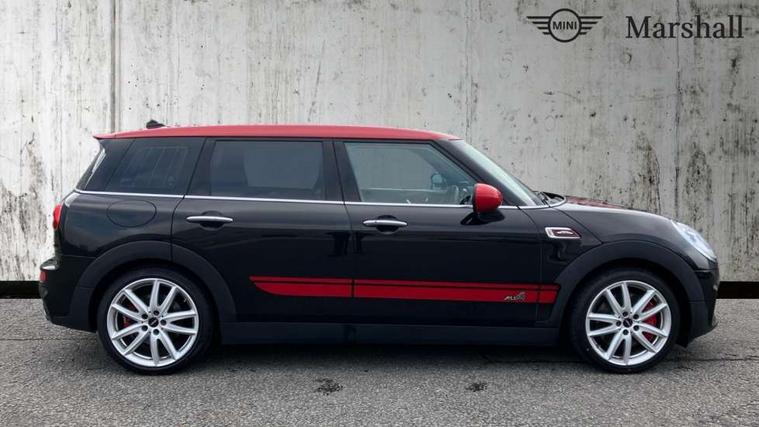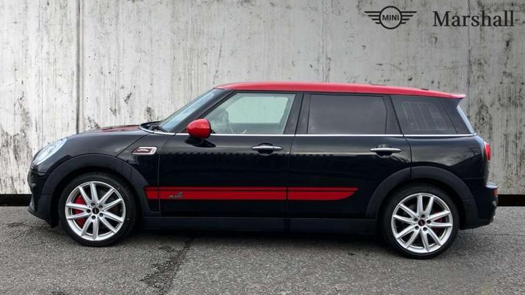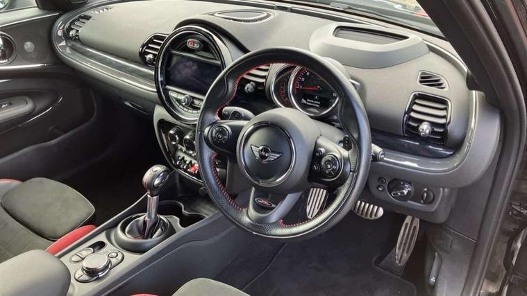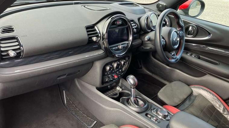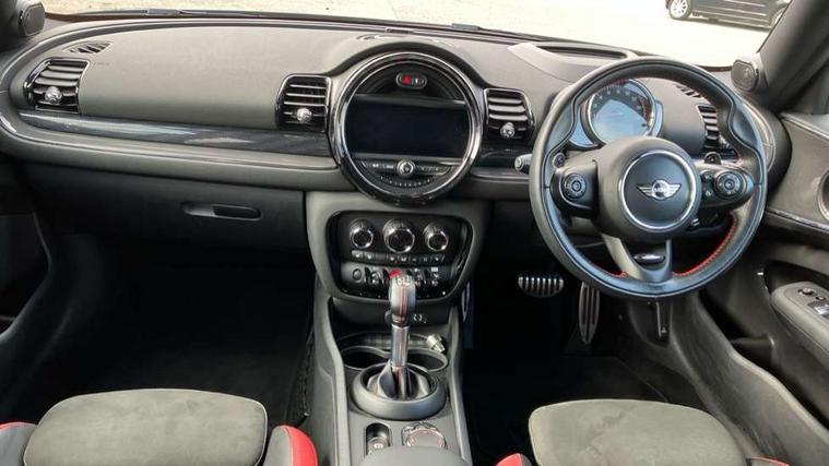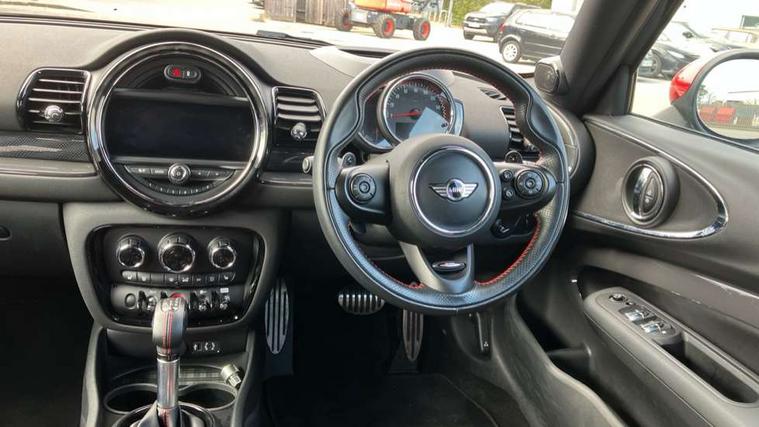 Interior lights pack - Mini Clubman, Comfort access system, Drive away door locking, Keyless Start, Locking wheel bolts, RF remote control central locking, Second remote key, Thatcham category 1 alarm + immobiliser, Auxiliary input socket, DAB digital radio module, MP3 compatible radio/single CD player, Radio visual boost, 3 point automatic seatbelts, 3 point seatbelts on all rear seats, ABS, Automatic Stability Control (ASC), Brembo brake callipers, CBC - (Cornering brake control), Crash Sensor - activates hazard/interior lighting + unlocks doors, Driver and passenger airbags, Driver and passenger side airbags, DSC - Dynamic Stability Control, Electronic brake force distribution, Electronic parking brake, Front curtain airbags, Front passenger airbag deactivation, Fuel cut off safety device, Hill start assist, Pyrotechnically pre-tensioned front seatbelts, Traction control, Twin horns, Tyre pressure warning, Anti dazzle rear view mirror, Body colour scoop integrated into engine- compartment lid, Body coloured bumpers, Chrome door handles, Chrome headlight surround, Electric front windows + one touch + anti-pinch, Electrically adjustable door mirrors, Follow me home headlights, Front intermittent wipers, Heated door mirrors/heated windscreen washers, Heated rear window with timer, Honeycomb radiator grille, Illuminated door handles, John Cooper Works aerodynamic kit, John Cooper Works rear spoiler, Metal look door sill finishers, MINI ALL4 exterior styling, Rain sensor including auto headlights activation, Rear wiper, Twin chromed exhaust pipes, White indicator lights, 12V power point front, 4 lashing points to secure luggage, 60/40 split folding rear seat, Anthracite headlining, Centre console storage box, Chrome interior door handles, Driver/passenger sunvisors, Easy entry seats, Front and rear cupholders, Front headrests, Front interior light, Front passenger grab handle, Front seat backrest storage nets, Heater with recirculation function, Height/reach adjust steering wheel, Isofix rear child seat preparation, Luggage compartment lighting, Multifunction steering wheel, Outer passenger rear headrests, Rear armrest with storage, Rear grab handles, Storage compartments in doors, Toolkit in luggage compartment, Apple car play, Brake pad wear indicator warning light, Central display with LED ring and 6.5" colour touch screen, Connected driver, DTC - Dynamic traction control, Exterior temperature gauge, Intelligent emergency call, MINI Driving Modes - centre toggle switch to control driving setting (sport, mid and green), MINI remote services, MINI TeleServices, Navigation system, On board computer, Personal Profile, Real time traffic information, Service interval indicator, Servotronic speed sensitive power steering, Electronic differential lock, Performance Control,
