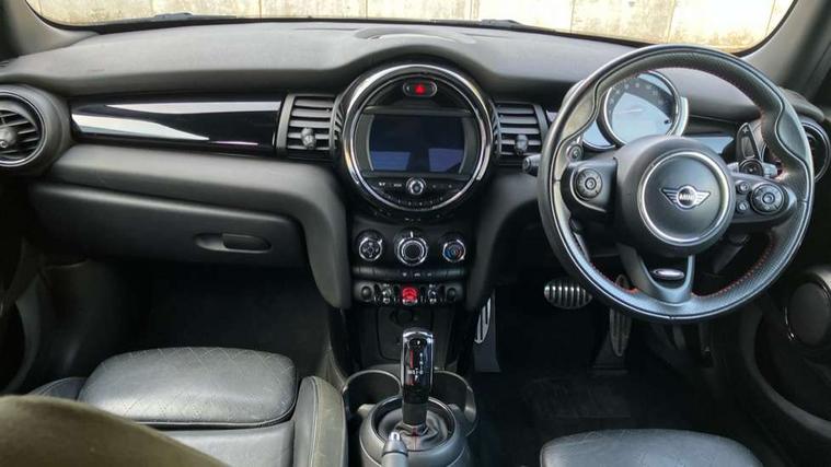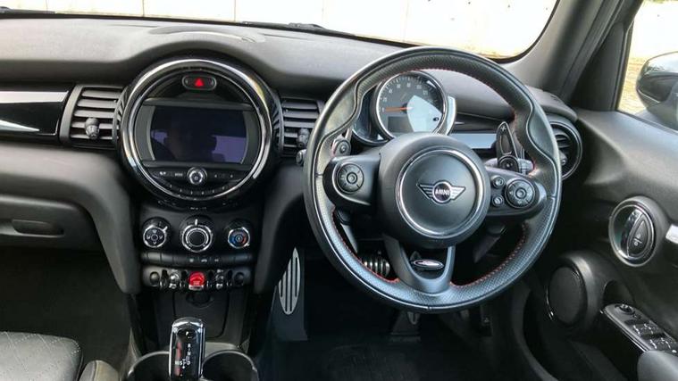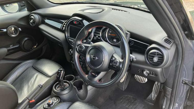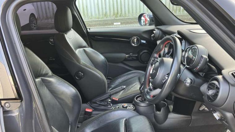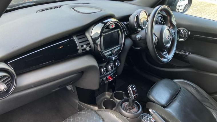 Automatic start/stop function with brake energy recuperation, Compatible mobile phone bluetooth with audio streaming, Electro-mechanical speed dependant steering assistance, Instrument cluster, Mini E-call, MINI TeleServices, On board computer, Service interval indicator, Double Vanos system, Fully variable valve control, High precision injection, Performance Control, Steptronic sport transmission with double clutch and steering wheel paddles, 6.5" touchscreen with LED ring, FM tuner and DAB digital radio, Automatic headlight activation switch, Bonnet scoop, Chrome border honeycomb structure radiator grille with S badge, Chrome plated fuel cap, Dynamic brake lights, Electric front+rear windows, Heated rear window, Heated windscreen washer jets, John Cooper Works - aerodynamic kit (front and rear apron, spoiler), front and rear sport bumpers and part-painted side sills with door sill finishers, John Cooper Works rear spoiler, LED headlight with closed ring and daytime driving lights, Metal door sill strips with Cooper S imprint, Model logo Cooper S on right of tailgate, Rain sensor window wipers, Rear fog lights, Rear LED lights with union jack design, Rear window wiper, Side scuttle panel with integrated indicator, Sun/heat protection glass, Two central exhaust tailpipes with chrome finisher, White indicator lenses, 12V Accessory socket in centre console, 4 lashing eyes in luggage compartment, 60/40 split folding rear seat, Anthracite headlining, Chrome interior highlights, Cupholders, Front and rear head restraints, Front and rear isofix with front passenger airbag deactivation, Glove compartment, Height and length steering column adjustment, Interior lighting with 12 basic colours selectable via toggle switch in roof, John Cooper Works leather steering wheel with contrasting stitching in Chilli Red with John Cooper Works logo, John Cooper Works Logo in seat, Leather gearshift lever and handbrake gaiters, LED reading lights, vanity mirror lights, front foot well light and spotlight on front seats, Manual air conditioning, Mechanical seat adjustment, driver seat height adjust, forward/back and front seats backrest, Mini logo projection on floor from drivers exterior mirror, Multifunction steering wheel, Storage compartments in doors, Storage pocket on back of front seats, Sunvisors with vanity mirrors, 3 point seatbelts on all five seats, 6 Airbags - front, side, head and seat belt tensioners, Anti-lock braking system (ABS), DSC - Dynamic Stability Control, Front and rear disc brakes, Hill start assist, Two tone horn, Tyre pressure monitoring system, Alarm system with tilt sensor, monitoring doors, bonnet interior and tailgate, Electronic vehicle immobiliser, Start/stop toggle with keyless go, Tool kit,