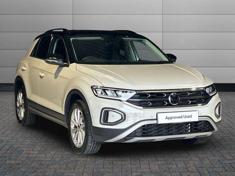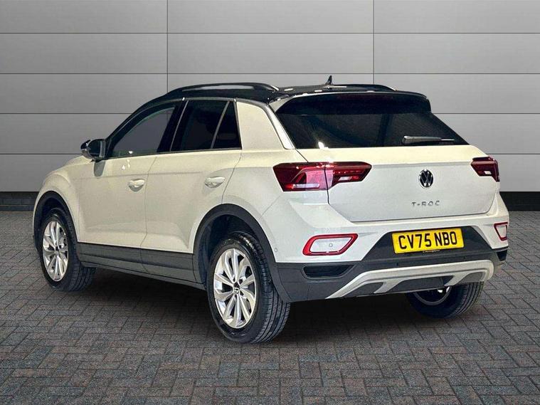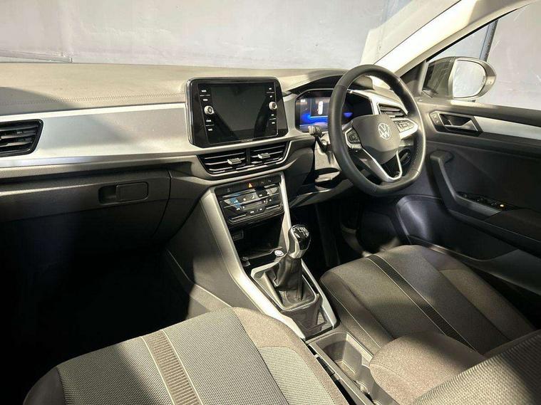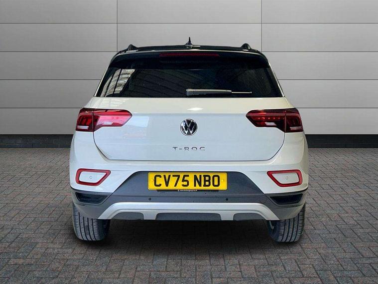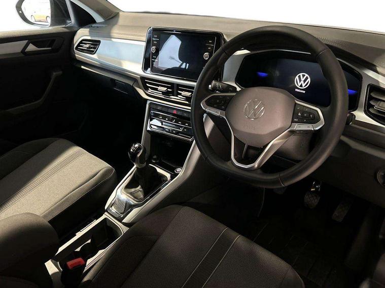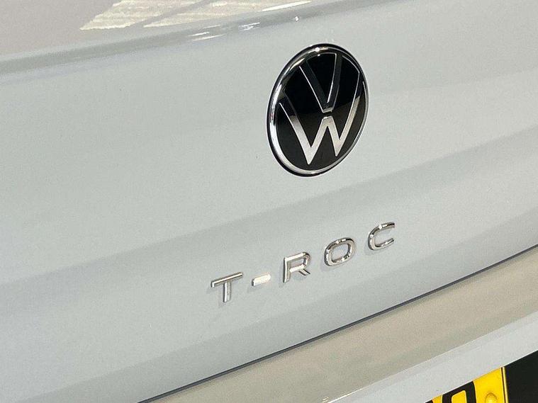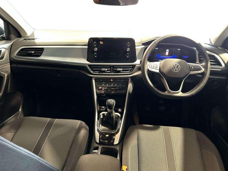 Advanced driver attention and drowsiness monitor, Dynamic road sign display, Emergency call service, Lane keeping system Lane Assist, Mobile phone interface, Modified key software - reduce switch off time for key status change to Long no motion, Online services, Park assist including front and rear parking sensors, Power assisted speed sensitive steering, Rear view camera, Service interval indicator, Tailgate/trunk lid release from outside, Think blue trainer driver tips and journey analysis, Warning sound and light for front seatbelts unfastened, Wireless app connect, Battery regeneration during braking, Front shock absorption, Rear shock absorption chassis with increased ride height, Start/stop function with battery regeneration, DAB Digital radio, Diversity antenna for FM reception, Music playback - MP3, WMA and AAC files, SD card slot, Simultaneous pairing of 2 compatible mobile devices, Title and cover art display, We Connect and We Connect Plus functionality, Auto dimming interior rear view mirror, Automatic hazard lights activation under emergency braking, Automatic headlight control with LED separate daytime running lights with coming/leaving home function, Black roof rails, Body coloured bumpers and radiator grille with chrome trim and front fog lamps with chrome bezel, Body coloured exterior mirror housings and door handles, Electrically adjustable and heated door mirrors, Extended roof spoiler, Exterior mirrors aspherical on driver side, convex on front passenger side, External USB type C socket and charging sockets, Front windscreen wiper with intermittent wipe and 4 position delay, Heated rear window, LED 3rd brake light, LED rear combination lamps, LED rear number plate lights, Power windows with comfort operation and circuit breaker, Privacy glass for rear side windows and rear window, Rain sensor, Rear exhaust tailpipe, Rear fog light on one side and reversing lights on both sides, Rear side wing doors, Rear wash/wipe with intermittent wipe setting, Remote electrically foldable door mirrors, puddle lights and reverse activated passenger's door mirror, 12V power socket in centre console, 3 rear head restraints, 3 seat bench in 2nd row, 4 load lashing points in luggage compartment, Air care climatronic air conditoning system with active combination filter and 2-zone temperature control, Black stitching for floor mats, Ceramique roof liner, Cloth upholstery, Door and side trim panel in cloth, Drawer under drivers seat, Driver/front passenger seat height adjustment, Front centre armrest, Front comfort sports seats, Front cupholders x 2, Front reading light, Front seat back storage pockets, Glove compartment door with light, Instrument lighting, white adjustable panel illumination, Interior ambient lighting and surround lighting, Interior light delay, Isofix child seat preparation, Leather gearshift handle, Load-through provision with cup holder when folded down ('Unsplit rear seat bench, split folding backrest, with centre armrest), Luggage compartment lighting, Lumbar support for driver's and front passengers seat, Non-folding front passenger seat backrest, Single front passenger seat, Storage compartment in left and right luggage area, Storage compartment in rear doors, Storage compartments in driver and front passenger doors, Sunvisors with illuminated vanity mirrors, Variable boot floor, height adjustable and removable, Driver assistance pack without proactive passenger protection - T-Roc Life/Match, 3 point height adj front seatbelts + pretensioners, 3 point seatbelts in outer rear with ECE label, ABS, Child locks on rear doors, City emergency braking and pedestrian monitoring, Driver and front passenger airbag with front passenger airbag deactivation, Driver and front passenger safety-optimised head restraints, Drivers seatbelt reminder, Electronic parking brake, Electronic Stability Control (ESC) inc EDL (Electronic Differential Lock) and ASR (Traction Control), Front and rear passengers curtain airbag system including front side airbags, Front disc brakes, Hill start assist, Predictive pedestrian protection, Rear disc brakes, Two tone horn, Tyre pressure loss indicator, Volkswagen roadside assistance, Alarm with interior protection, Keyless locking and starting system keyless access with safelock, Pewter matt decorative inserts for intrument panel, centre console and door panels at the front, Trims for alloy wheels,