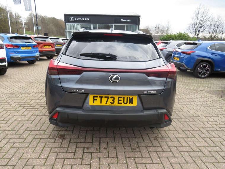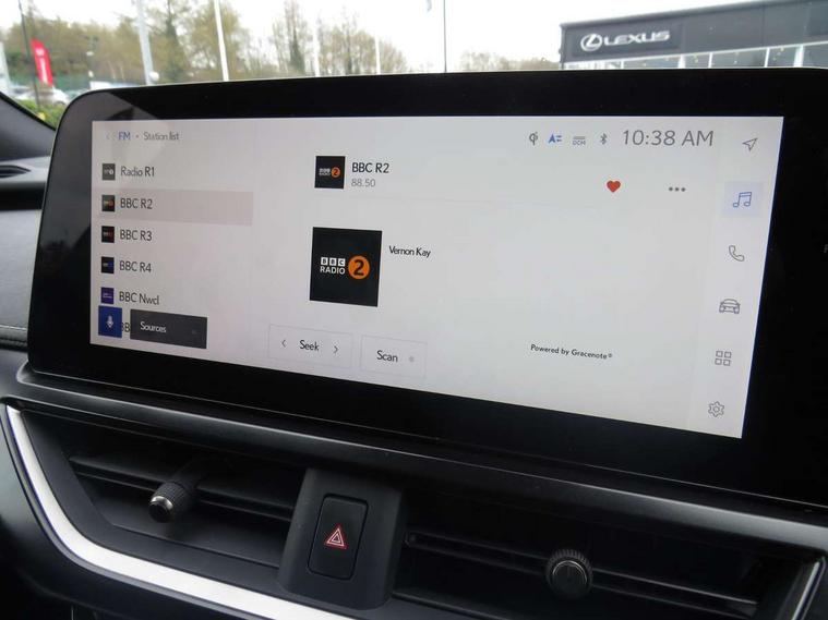 4 driving modes EV/Eco/Normal/Sport, 7" Lexus media display, 7" TFT instrument cluster, Analogue clock with GPS function, Apple car play/Android Auto, Compatible mobile phone bluetooth with audio streaming, E-call, Electric power steering (EPS) with speed sensitive features, Lane change flasher function, Lexus link connected services, Lexus safety systems + includes dynamic radar cruise control, pre collision system day and night, lane tracing assist, road sign assist, Push button start, Remote touch interface, Tailgate, Trip computer, Vehicle Dynamics Integrated Management (VDIM), Vehicle Stability Control (VSC), 2 front USB and 2 rear USB charging points, 6 speakers, AM/FM and DAB radio, AUX socket with VTR compatibility, CD player, Acoustic windscreen, Aero stabilising arch mouldings, Aero stabilising rear lights, Aero ventilated wheels, Bi-LED (low and high beam) headlights with Auto High Beam (AHB), Black roof drip mouldings, Black wheel arches, Body adhesive, laser screw welding and laser brazed roof structure, Body coloured bumpers, Electric adjustable/heated door mirrors, Front and rear one touch power windows, with anti-jam protection, Headlight cleaners, LED daytime running lights, LED tail lights, LED third brake light, Light green UV glass, Rain sensor windscreen wipers, Rear side wing doors, Rear wiper, Shark fin roof aerial, Single hidden exhaust pipe, Towing preparation, Variable front intermittent wipers, 12V accessory port centre console and luggage compartment, 2 cup holders in the front and rear centre console, 2 x folding shopping bag hooks in boot, 2 x sun visors with vanity mirror and lamp, 3 seat bench in 2nd row, 4 x tie down hooks in the boot, 5 headrests, 6 way driver and passenger manually adjustable front seats, 60/40 split folding rear seat, Black roof lining, Card holder installed in driver and passengers sun visors, Centre armrest with storage, Driver and passenger door pocket, Dual zone electronic climate control + Nano-E humidity sensor, Glovebox, Illuminated entry system, Leather gear lever, Leather steering wheel, LED interior illumination, Map pockets in the rear of passenger's front seat, Premium fabric upholstery, Rear air vents with 2 USB chargers, Rear armrest with 2 cupholders, Single passenger seat, Storage tray under audio panel, Textile carpet mats, Tilt/reach adjustable steering column, Under deck storage, Under desk side storage, 2 x Isofix child rear seat restraints, 3x3 point rear seatbelts, Anti-lock braking system (ABS), BAS (Brake Assist System), Driver and front passenger 2 stage airbag, Driver and front passenger knee airbag, Driver/front passenger side airbags, EBD - Electronic brakeforce distribution, ECB (Electronically Controlled Brake System), Electric child locks, Electric parking brake, Front adjustable seatbelt anchor points, Front and rear curtain shield airbags, Front outer seatbelt+pre-tensioners, force limiter+tension reduction: 3-point with active safety link to PCS, Hill start assist control (HAC), Passenger airbag cut-off device, Rear outer seatbelt+pre-tensioners, force limiter+tension reduction: 3-point with active safety link to PCS, Centre belt w/o pre tensioner+force limiter, Secondary Collision Brake (SCB), TRC (Traction Control), Tyre pressure warning, 2 x remote key fobs, Anti theft system : Alarm instruction sensor, glass breakage sensor and engine immobiliser, Locking wheel nuts, Remote central door locking, Speed sensitive auto door locking, Two motion door lock with double lock, VIN Window etching, 17" Alloy wheels, Tyre repair kit,