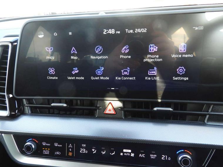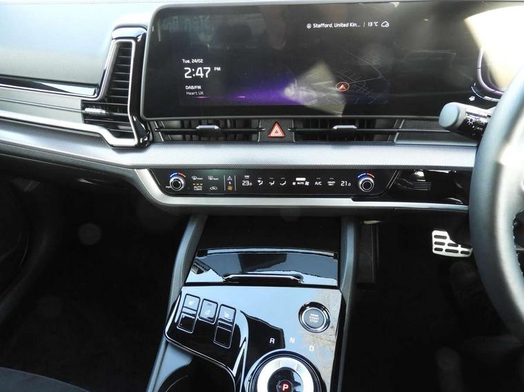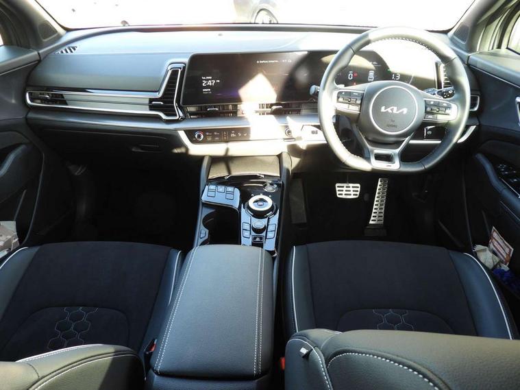 12.3" Touchscreen navigation system, 2 rear USB-C ports, 4.2" driver display screen, Apple car play/Android Auto, Drive mode selector, Driver attention warning, E-call, Emergency stop signalling system, Forward collision avoidance assist (FCA) - city/pedestrian/cyclist/junction covering, Front and rear parking sensors, Highway Driving Assist (HDA), Intelligent speed limit assist, Kia Connect (UVO), Lane Following Assist (LFA), Lane keep assist, Low washer fluid warning, Motor driven power steering, Rear view monitor, Reversing camera system integrated into centre fascia screen, Smart cruise control with stop and go functionality, Speed limiter, Tailgate, Trip computer, Windscreen washer level indicator, Terrain mode select (Mud, Snow, Sand), 1x USB-C port in front, 6 speaker audio system, Bluetooth audio streaming, DAB Radio with MP3, Steering wheel mounted audio controls, USB C type charging ports on centre console, USB port for connection of a media device, All round electric windows with drivers and front passenger auto up/down function, Auto dimming rear view mirror, Automatic headlight control system, Automatic window defogger, Black and body coloured bumpers, Body colour exterior door handles, Body colour radiator upper garnish and door garnish, Electrically adjustable/heated/folding door mirrors with LED indicators, Front and rear chrome skid plates, Gloss black door mirrors, Gloss black radiator grille, Gloss black side sill and wheel arch body mouldings, Glossy black roof rack, GT-Line exterior styling, Heated rear window, High beam assist, Interior electrochromic mirror, LED daytime running lights, LED front fog lamps, LED headlamps (low and high beam - MFR type), LED High mounted stop light, LED rear combination lamp, Rain sensing wipers with aero blades, Rear fog lamp, Rear privacy glass, Rear roof spoiler, Rear side wing doors, Rear wiper, Satin finished beltline, Silver window surround, Tinted rear glass, Trailer stability assist, 12V power socket in front centre fascia and luggage compartment, 2nd row personal lamps, 3 seat bench in 2nd row, 3 x passenger assist grips, 40/20/40 split folding rear seat, All-round height adjustable headrests, Alloy pedals, Automatic air conditioning, Black headlining, Centre console storage box, Cupholders in rear armrest, Door courtesy lamps, Drink holder at centre armrest, Driver and front passenger side sunvisors with illuminated vanity mirrors, Driver's seat manual height adjust, Drivers seat power lumbar support, Front and rear door storage, Front cabin, rear & luggage compartment lights, Front passenger's seat manual height adjustment, Front seat and rear pockets, Gear shift indicator, Glovebox illumination, GT-Line Interior Styling, Heated front seats, Heated steering wheel, ISOFIX Child seat top tethers and anchor fixings outer rear seats, Leather steering wheel, Luggage area load cover, Luggage area parcel shelf, Luggage board, Luggage compartment under floor storage, Luggage net with hooks, Manual adjust steering wheel, Metal paint interior door handles, Overhead console lamp, Paddle shift controls, Rear air conditioning, Rear cabin light, Rear coat hooks, Single front passenger seat, Suede leather upholstery, Ventilation ducts to rear compartment, Active front headrests, All round 3-point seatbelts, Anti-lock braking system (ABS), Dual front side airbags, Dual horn, Dynamic brake control, Electronic parking brake with auto hold function, Electronic stability control with downhill brake control, Front passenger airbag cut-off switch, Front seatbelt pretensioners + load limiters, Height adjustable front seatbelts, Hill start assist control (HAC), Impact sensing auto door unlocking, Multi collision brake assist, Rear airbags, Rear door child safety locks, Rear seat alert system, Seatbelt reminder warning, Traction control, Twin curtain airbags, Twin front airbags, Tyre pressure monitoring system, Vehicle stability management, Customisable automatic door locking, Customisable automatic door unlocking, Door deadlocks, Engine Start/Stop Button with Smart Entry System, Locking wheel nuts, Smart key with motion sensor, Speed sensitive auto door locking, Thatcham category 2 security alarm and immobiliser, Visible vehicle identification number, Aluminium pattern finish centre fascia and door garnish, 19" GT-Line alloy wheels, Tyre mobility kit,