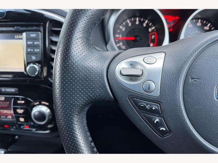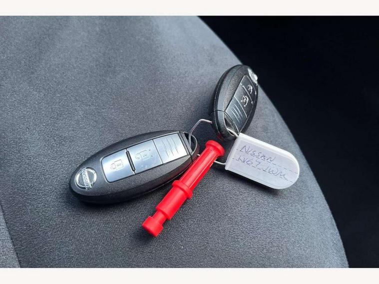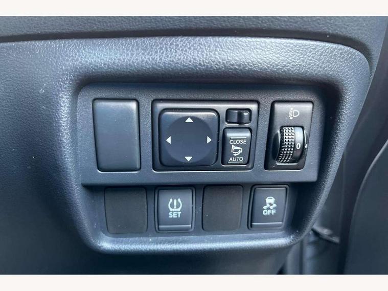 Bluetooth system, Colour rear view camera, Cruise control + speed limiter, Electric speed sensitive power steering, Nissan connect sat nav system, Push button starter, Service interval indicator, Trip computer, 6 speakers, Aux input, DAB Digital radio, Steering wheel mounted audio controls, Stereo radio/CD player and MP3 facility, USB port, 2 speed wipers+variable intermittent wipe, Automatic headlights, Body colour bumpers, Body colour door handles, Electric door mirrors, Electric folding door mirrors, Electric front/rear windows, Front fog lights, Heated door mirrors, LED daytime running lights, Privacy glass, Rain sensor, Rear wiper, 12V socket, 60/40 split folding rear seat, Artificial leather/suede upholstery, Climate control, Front armrest, Front cupholders x 2, Front door pockets with bottle holders, Front head restraints, Front seat belt pre-tensioners with load limiters, Gear shift indicator, Glovebox, Height adjustable driver's seat, Internal chrome door handles, Isofix child seat preparation, Leather steering wheel and gear knob, Luggage area under floor storage box, Map reading lamp, Passenger seat back pocket, Pollen filter, Rear headrests, Rear tonneau cover integrated into tailgate, Sports seats, Steering wheel rake adjustment, ABS + EBD + EBA, Child locks on rear doors, Driver and passenger airbags, Driver and passenger side airbags, ESP + traction control, Front and rear curtain airbags, Height adjustable front seatbelts, Passenger airbag deactivate switch, Three 3 point rear seatbelts, Tyre pressure monitoring system, VDC Dynamic Vehicle Control, Warning triangle and first aid kit, Alarm, Immobiliser, Intelligent Key, Remote central locking, 17" Sport alloy wheels, Tyre repair kit,