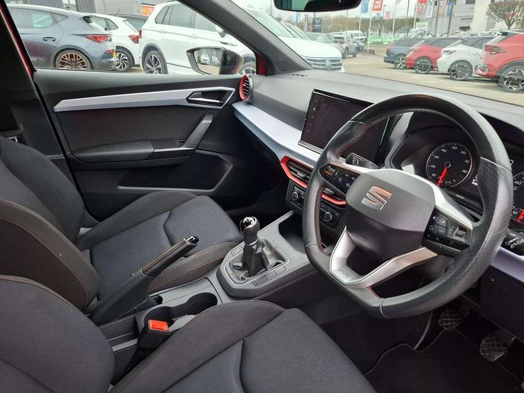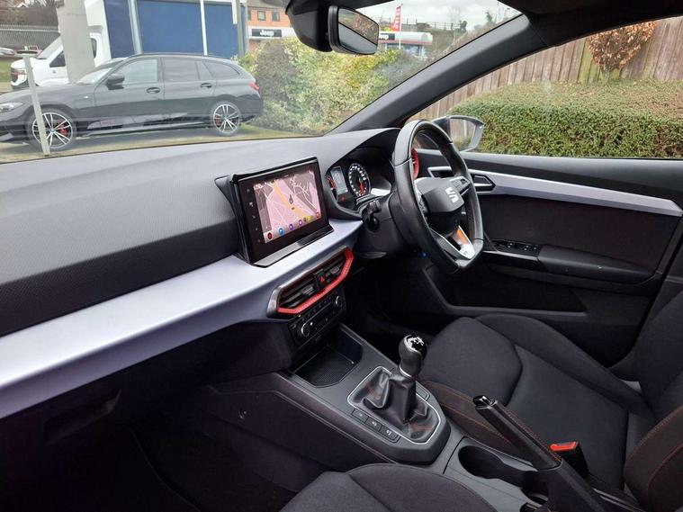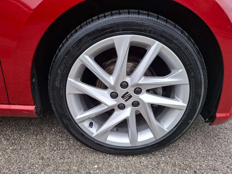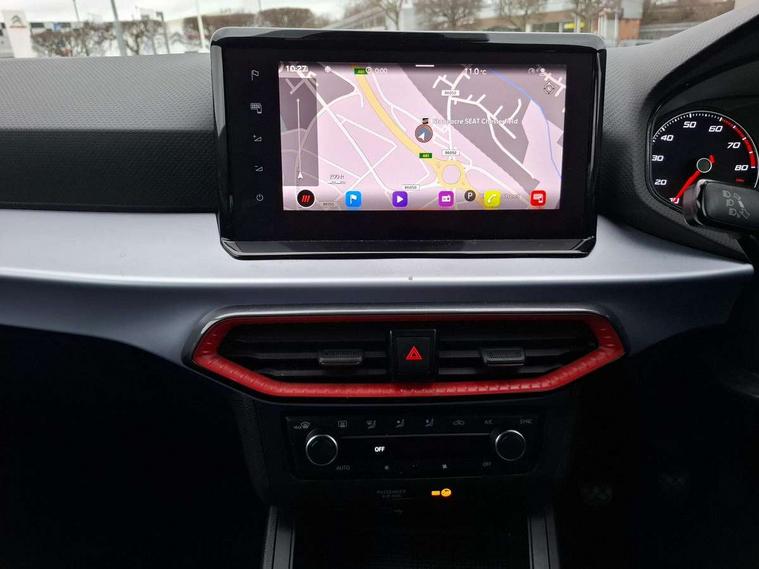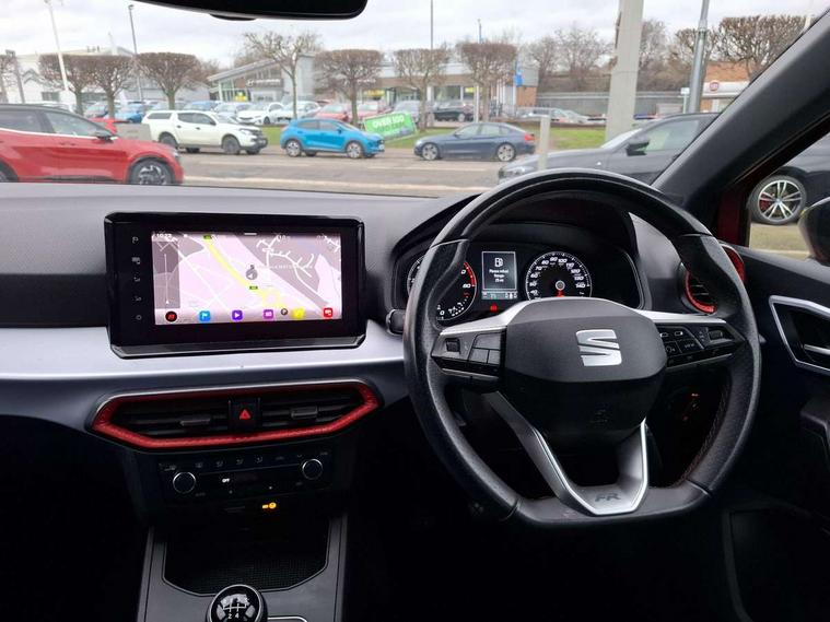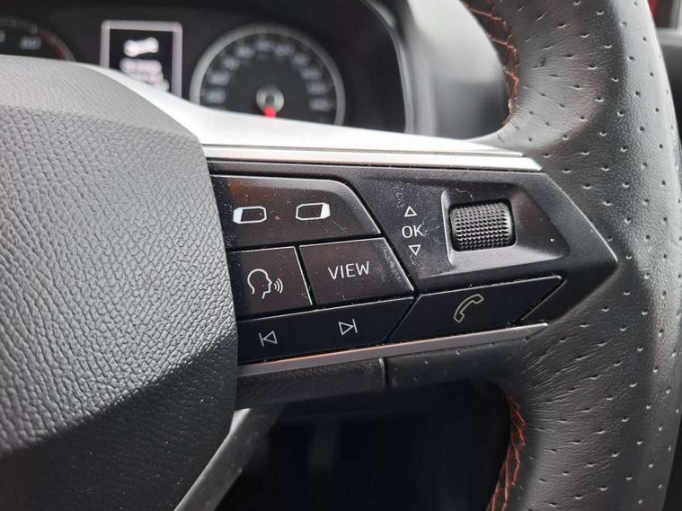 'Lights On' Reminder warning buzzer, 9.2" touchscreen navigation system with type C USB socket, Voice control and DAB/AM/FM radio, Auto start and stop system, Bluetooth audio streaming with handsfree system, Digital clock, E-call, Full link smartphone integration with mirror link, wireless apple carplay, Google android auto + USB Type C cable for apple and android devices, Lane assist, Low fuel warning light, Outside temperature gauge, Power Steering, Seat connect with safety, service, remote and online, SEAT drive profiles and ECO function, SEAT logo boot release, Speed limiter, Trip computer, Sports suspension, Auxiliary input socket, Radio/MP3 player, SD card slot, Steering wheel mounted controls, Anti theft roof antenna, Auto dimming rear view mirror, Automatic rain sensing wipers, Black door mirrors, Body colour bumpers, Body colour door handles, Brilliant black window surrounds, Dark tinted rear windows, Electric adjustable/heated/folding door mirrors, Electric front windows, Electric headlight adjustment, Electric rear windows, Front/rear fog lights, FULL LED automatic headlights with dynamic headlight range control, coming and leaving home, LED daytime running lights, LED tail lights, Rear roof spoiler with FR twin exhausts, Rear side wing doors, Rear wiper, Third brake light, 3 seat bench in 2nd row, 60/40 split folding rear seat, Ambient interior lighting, Chrome detailing and black headlining, Cloth upholstery, Dual zone climate control with combination filter, Front courtesy lights, Front cupholders x 2, Front reading lights, Gear shift indicator, Glovebox, Height adjustable front and rear headrests (five), Height adjustable front seats, Height/reach adjust steering wheel, Illuminated air vent surrounds, Illuminated boot, Instrument lighting with brightness control, Isofix, Leather multifunction flat bottomed sports steering wheel, Passenger sunvisor, Single front passenger seat, Sports seats, Sunvisors with mirror and driver side card holder, 3 point seatbelts on all 3 rear seats, ABS, Active front headrests, Child locks on rear doors, Electronic stability control, Energy recovery system, Front assist forward collision warning and autonomous emergency braking, Front driver and passenger side airbags with curtain airbag and front passenger airbag deactivation, Hill hold control, Multi-Collision braking, Seat belt reminder for front and rear seats, Tiredness recognition system, Tyre pressure monitoring system, Electronic engine immobiliser, Locking wheel bolts, Perimeter alarm and interior monitoring with backup horn and tow away protection, Remote central locking + deadlocks, 17" Alloy wheels in Brilliant silver,