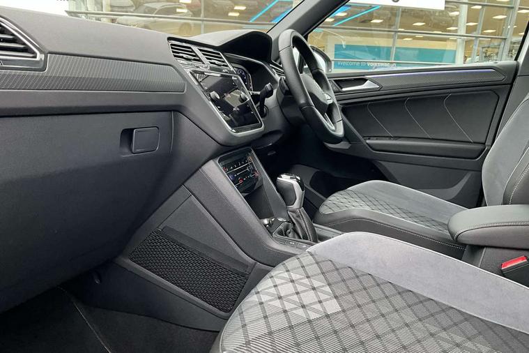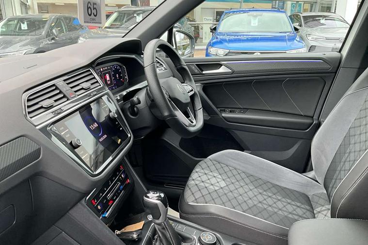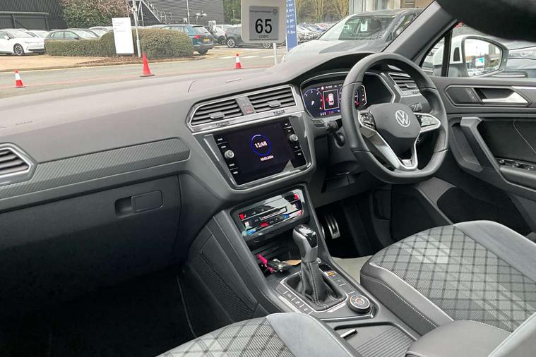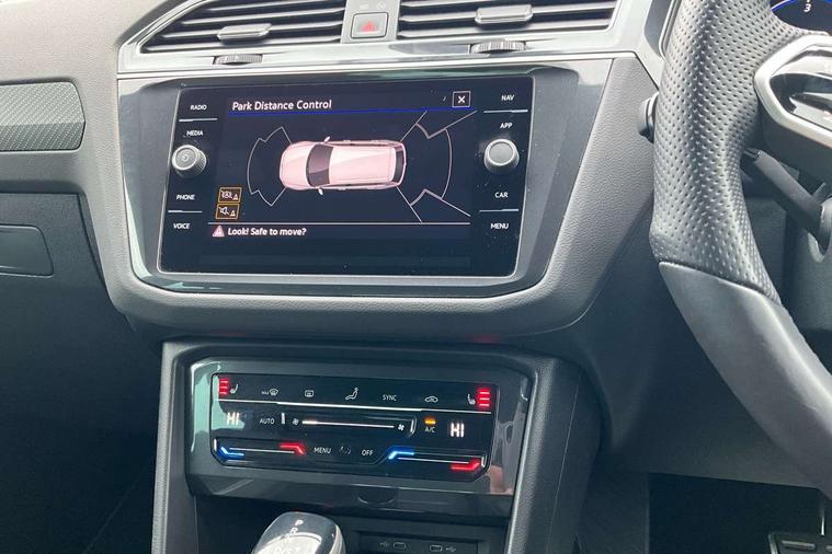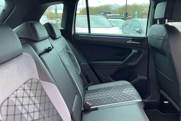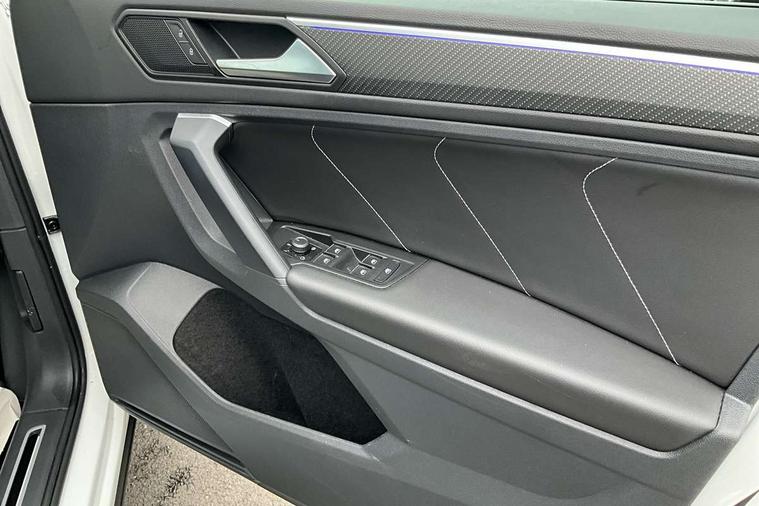 Adaptive cruise control ACC stop and go including speed limiter, App-Connect incl. App-Connect Wireless for Apple CarPlay and Android Auto, Bluetooth phone integration system, Distance control assist, Driver alert system, Driver profile selection, Dynamic road sign display, eCall emergency call system, Electromechanical speed sensitive power steering, Engine start/stop button, Lane keeping system Lane Assist, Lights on warning, Multifunction front facing camera, Outside temperature display, Premium multifunction display with multi colour display, Remote control boot opening, Rev counter, Revision / skills operating concept travel assistant, Service interval indicator, Speed limit display, Start/stop system with regenerative braking, Trip computer, Warning sound and light for doors and tailgate open, All wheel drive - 4Motion, Battery regeneration during braking, Diesel particulate filter, Misfuel prevention device for diesel engine, Selective Catalytic Reduction, XDS electronic differential lock for improved traction and handling, 4 X 20 watt output, 8 Speakers, Diversity antenna for FM reception, Radio, SD card slot, Simultaneous pairing of 2 compatible mobile devices, SMS functionality - read, compose and send SMS messages using touch-screen display, Title and cover art display, USB C ports, Auto dimming interior rear view mirror, Automatic headlight control system, Body colour door handles, Chrome moldings on the side windows, Coming/leaving home lighting function, Dynamic headlight range control, Front and rear electric windows, Heated rear window, High level 3rd brake light, Laminated safety glass windshield, heat and sound insulating, LED headlamps with LED separate daytime running light and dynamic cornering light, LED rear combination lamps, LED rear number plate lights, License plate carrier in front and rear, Poor weather light and cornering light, R Line body kit, R Line side sills, Rain sensor windscreen wipers, Rear exhaust tailpipe, Rear fog lamp, Rear side wing doors, Rear spoiler in R style, Rear windscreen washer and wiper with interval delay, Side and rear windows in heat insulating glass, Trailer Stability Programme, Unique R Line badging, Windscreen wipers/ intermittent wipe + 4 position delay, 12V outlet in center console rear and in luggage compartment, 12V outlet in front and tray, 2 cup holders in front, 2 LED front reading lights, 2 LED rear reading lights, 3 bench rear seats in 2nd row, 3 rear headrests, 4 load lashing points, 40:20:40 split folding rear seats, Air Care Climatronic 3 zone automatic climate control with enhanced air filter and controls in the rear, Backrest release for left front seat, Black headlining, Brushed stainless steel pedals and footrest, Carpet mats in front and rear with decorative stitching in Gray, Climate control unit rear with touch function, Door and side trim panel in foam film, insert in leatherette, Front centre armrest, Front footwell illumination, Front seats head restraints (x-adjustment), Height adjustable front seats, Height/reach adjust steering wheel, Instrument lighting white adjustable panel illumination, Interior light with delay, Isofix Preparation 2 Rear child seats, Leather gear knob, Lockable cooled glovebox, Luggage compartment lighting, Luggage net, Rear bench seat asymetrically split folding, longitudinally movable and folding with load-through hatch and center armrest, Remote unlocking for rear seat backrest, Removable luggage cover, Removable rear headrests, Safety optimised front head restraints, Single front passenger seat, Sliding/reclining rear seats, Standard rear seat release, Storage compartment in driver's door, Storage compartment in passenger's door, Storage compartment in rear doors, Storage compartments in luggage area left and right, Storage tray on dashboard, Sun visors with illuminated vanity mirrors, Top front comfort seats, Variable boot floor, height adjustable and removable, Driver assistance pack plus - Tiguan DSG, 3 point seat belt for centre rear seats, 3 point seat belts with seat belt pretensioners for the outer rear seats, Active bonnet, Curtain airbags for front and rear passengers, Driver/Front Passenger airbags, Drivers knee airbag, Electronic parking brake with auto hold, Electronic Stability Control with driver steering recommendation, ABS, ASR, EDL, EDTC and trailer stabilization, Front assist with autonomous emergency braking (for Adaptive Cruise Control ACC up to 130 mph), Front disc brakes, Front passenger airbag deactivation, Front side airbags, Height adjustable front 3 point seatbelts + pretensioners, Hill hold control, Manual child proof rear door locks, Pedestrian monitoring system, Power assisted brakes, Proactive passenger protection system in combination with front assist, Rear disc brakes, Rigid safety cell with front and rear crumple zones, Two tone horn, Warning sound and light for front seat belts if unfastened, Anti theft alarm system with interior monitoring, backup horn and towing protection, Anti theft wheel bolts, Electronic engine immobiliser, Tool kit,