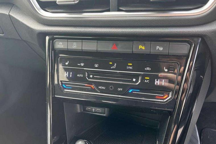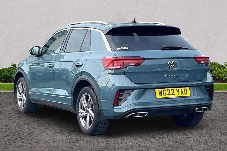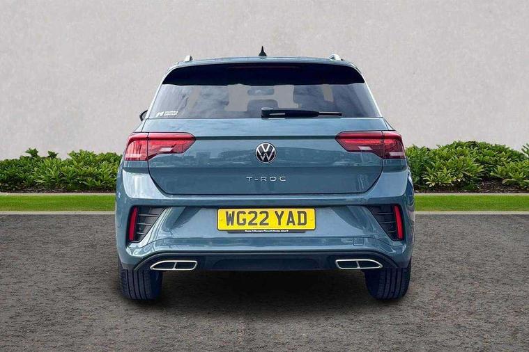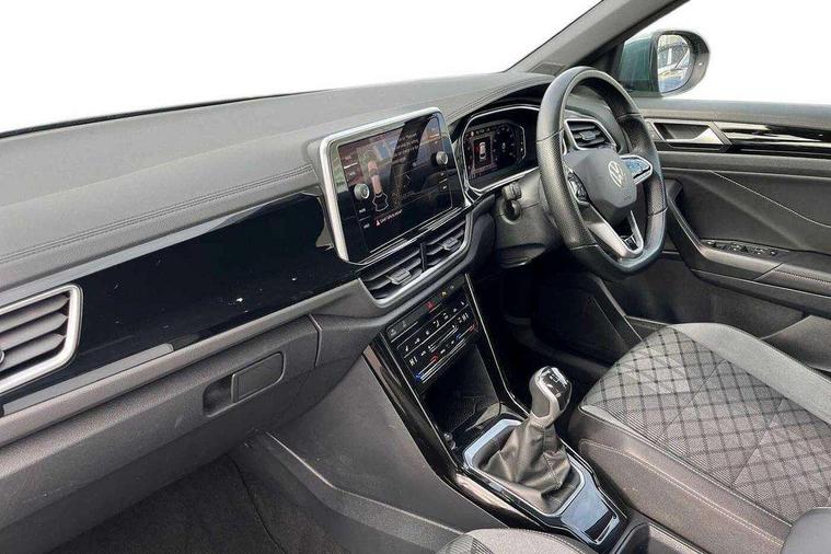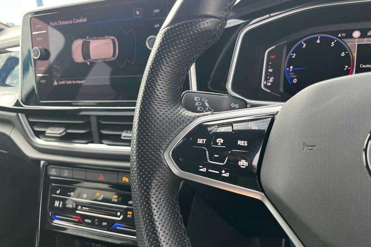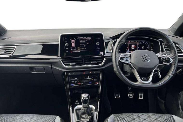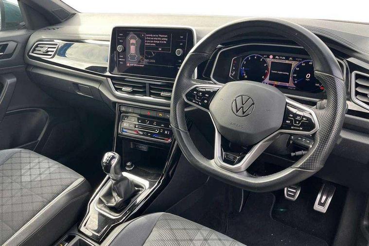 10.25" Digital cockpit pro, Bluetooth mobile phone interface, Driver alert system with fatigue detection, Driver tips and journey analysis, Emergency call service, Lane keeping system Lane Assist, Modified key software - reduce switch off time for key status change to Long no motion, Online services, Park assist including front and rear parking sensors, Service interval indicator, Tailgate/trunk lid release from outside, Think blue trainer driver tips and journey analysis, Warning sound and light for front seatbelts unfastened, Wireless app connect, Battery regeneration during braking, Start/stop function with battery regeneration, Diversity antenna for FM reception, Front and rear 6 speakers, Music playback - MP3, WMA and AAC files, Premium USB cable in choice of either Apple or Android smartphone compatibility, SD card slot, Simultaneous pairing of 2 compatible mobile devices, Title and cover art display, We Connect and We Connect Plus functionality, 3rd brake light, Auto dimming interior rear view mirror, Automatic hazard lights activation under emergency braking, Automatic headlight control with LED separate daytime running lights with coming/leaving home function, Extended roof spoiler, Exterior mirrors aspherical on driver side, convex on front passenger side, External USB type C socket and charging sockets, Front windscreen wiper with intermittent wipe and 4 position delay, Heated rear window, LED Plus headlamps, LED rear combination lamps, LED rear number plate lights, LED tail lamp rear comination lamps, Power windows with comfort operation and circuit breaker, R-Line design body coloured bumpers, Rain sensor, Rear exhaust tailpipe, Rear fog light on one side and reversing lights on both sides, Rear side wing doors, Rear wash/wipe with intermittent wipe setting, Remote electrically foldable door mirrors, puddle lights and reverse activated passenger's door mirror, 12V power socket in centre console, 3 rear head restraints, 3 seat bench in 2nd row, 4 load lashing points in luggage compartment, Air care climatronic air conditoning system with active combination filter and 2-zone temperature control, Black roof lining, Chrome plated radiator grille inserts, air vent surrounds and light switch surrounds, Door and side trim panel with leatherette insert, Drawer under drivers seat, Front + rear carpet mats, Front centre armrest, Front cupholders x 2, Front footwell illumination, Front reading light, Front scuff plates with R logo, Instrument lighting, white adjustable panel illumination, Interior ambient lighting and surround lighting, Interior light delay, Isofix child seat preparation, Leather gearshift handle, Load-through provision with cup holder when folded down ('Unsplit rear seat bench, split folding backrest, with centre armrest), Luggage compartment lighting, Single front passenger seat, Stainless steel pedals, Storage compartment in left and right luggage area, Storage compartment in rear doors, Storage compartments in driver and front passenger doors, Sunvisors with illuminated vanity mirrors, Variable boot floor, height adjustable and removable, Driver assistance pack without proactive passenger protection - T-Roc, 3 point height adj front seatbelts + pretensioners, 3 point seatbelts in outer rear with ECE label, ABS, Child locks on rear doors, Driver and front passenger airbag with front passenger airbag deactivation, Driver and front passenger safety-optimised head restraints, Drivers seatbelt reminder, Electronic parking brake, Electronic Stability Control (ESC) inc EDL (Electronic Differential Lock) and ASR (Traction Control), Front and rear passengers curtain airbag system including front side airbags, Front assist with city emergency braking and pedestrian monitoring, Front seat side impact airbags, Hill start assist, Predictive pedestrian protection, Rear disc brakes, Single tone horn, Tyre pressure loss indicator, Volkswagen roadside assistance, Alarm with interior protection, Anti-theft alarm system with interior monitoring, backup horn, and towing protection, Remote central locking with SAFELOCK, radio remote control with 2 remote control folding keys, Trims for alloy wheels,