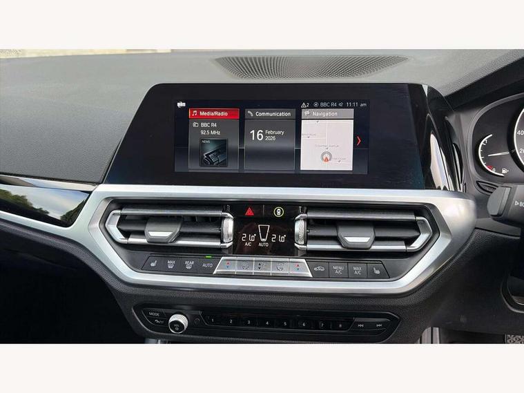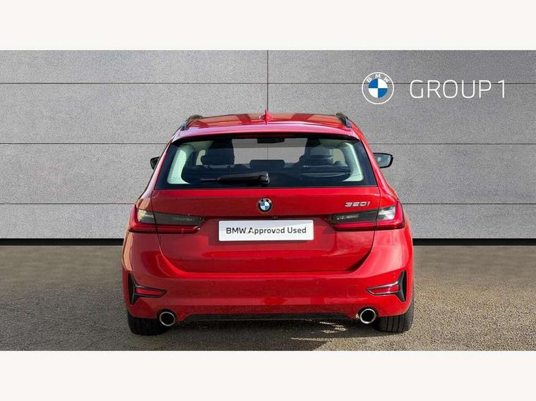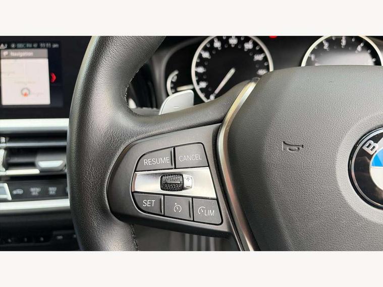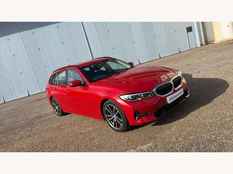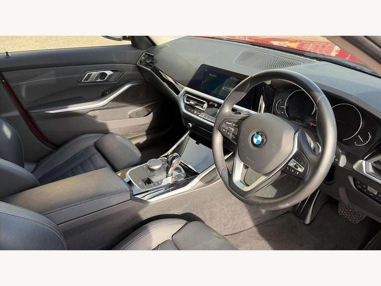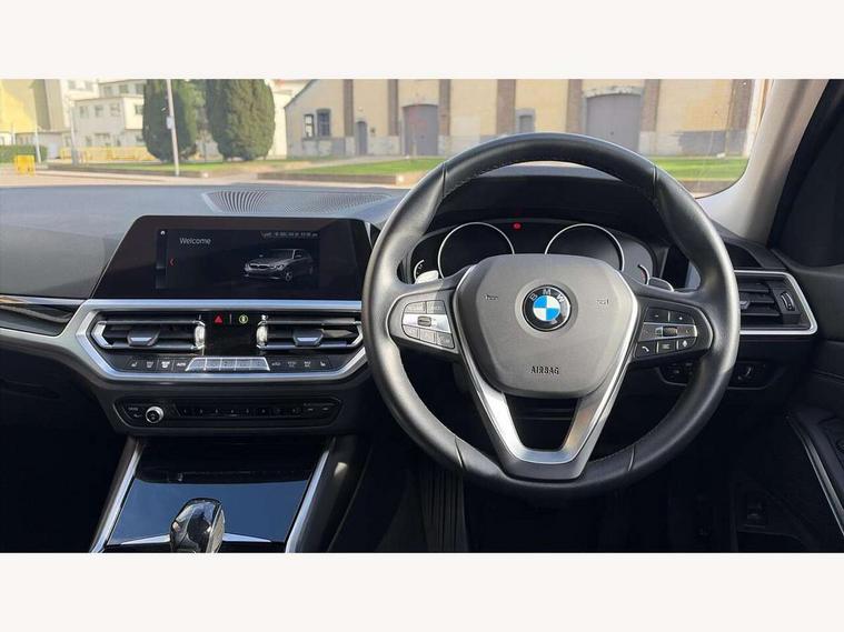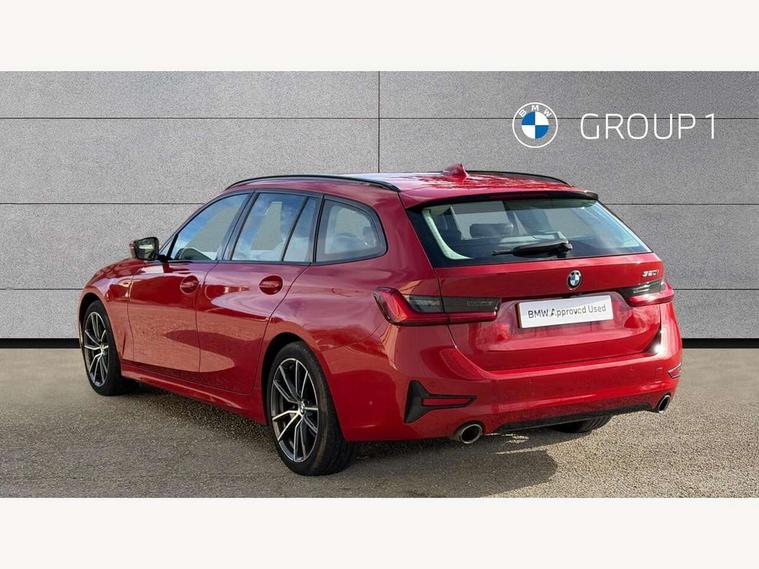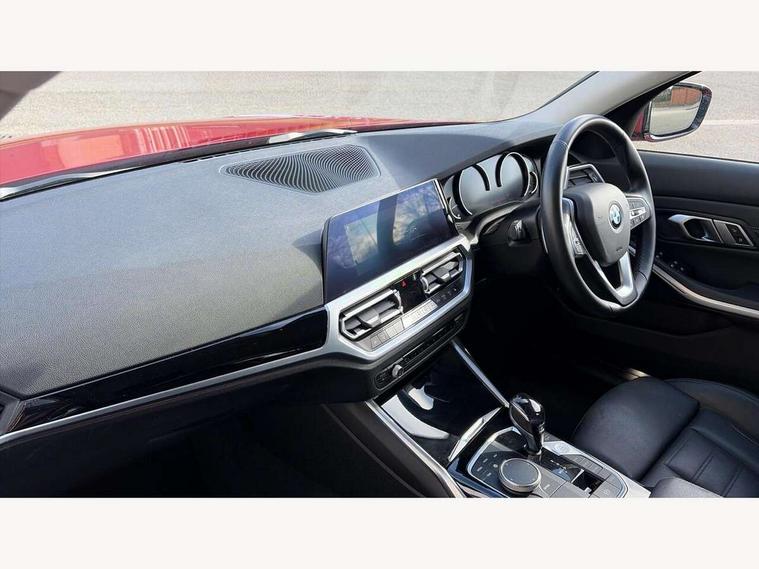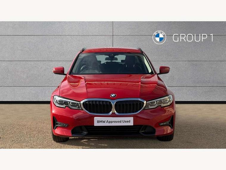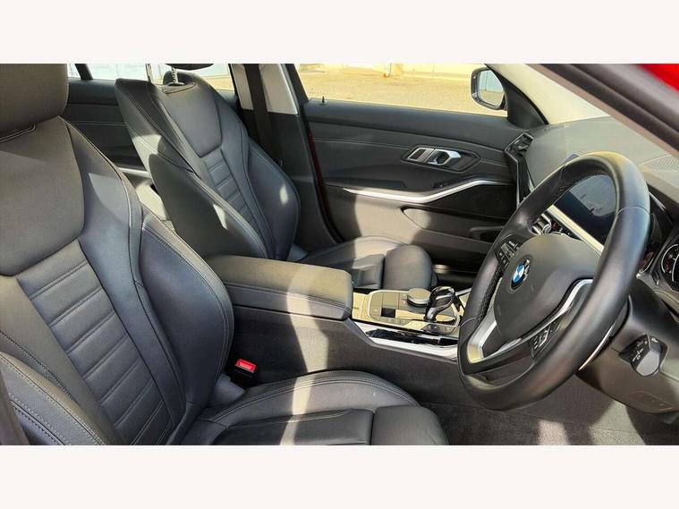 Active guard plus, Attentiveness assist, Auto start-stop, BMW ConnectedDrive online services, BMW iDrive controller on centre console, BMW Live Cockpit Plus with 8.8" central information display + nav function, BMW service history, BMW Teleservices, Brake pad wear indicator in front and rear, Check Control warning system for monitoring of lights and door/luggage compartment open warning, Condition based service, Cruise control with brake function + speed limiter, Electric power steering, Electric power steering with Servotronic steering optimised at all speed ranges, Instrument cluster with speedometer with mph readout, tachometer, fuel gauge and oil temperature gauge, Integrated owners handbook, Oil sensor for level and grade, warning by check control system, On board computer - average speed+fuel consumption, service interval, clock/date, odometer/trip meter, outside temperature display and ice warning, Optimum shift indicator, Personal Profile - automatic lock when driving away selectable, Balanced 50/50 weight distribution, Battery cut-out switch, Double VANOS, Drive performance control - ECO PRO, comfort and sport modes, Electronic differential lock control (EDLC), High precision injection, Larger capacity fuel tank, Petrol Particulate Filter, Sport automatic transmission with steering-wheel mounted gearshift paddles and launch control, Stroke dependent dampers, DAB tuner, Electronic service booklet, Acoustic glazing, Active airstream chrome frame kidney grille with 8 high gloss black vertical slats, Automatic headlight beam throw control with load dependent regulating reaction, dynamic compensation of braking dive and acceleration squat, Body colour roof mouldings, Brushed aluminium inserts in the front door sill finishers with BMW designation, Dynamic brake lights, Electric windows - front and rear, with open/close fingertip control, anti-trap facility and comfort closing, Exhaust tailpipe - split left and right, Extended LED headlights, Exterior mirrors - electrically folding with anti-dazzle, Fading support, Front and rear bumper system with replaceable deformation elements, Green tinted heat protection glazing, High gloss black front bumper with specific design elements, High gloss black rear bumper with specific design elements, High gloss shadow line exterior trim, Interior rear view electrochromatic mirror with automatic anti dazzle function, LED front fog lights, Lightweight engineering, Matt black exterior B pillar, Model designation on right side of tailgate, Rain sensor with automatic headlight activation, Rear wiper, Shark fin antenna, T-shaped design element right and left in black high gloss, Two part LED tailights in L-shape with components in smoked glass, brake light, LED turn indicator and rear fog light, Visible VIN plate, Welcome lights in interior and door handle area, Windscreen wipers with integrated washing jets, 12V power socket in front storage compartment, 2 front cupholder in centre console with clamping elements and matt black inlay, 3 rear seats with non folding headrests with 3 point seat belts, 3 zone automatic air conditioning, 4 pieces lashing eyelets in luggage compartment, 40:20:40 split folding rear seat with loading system, Ambient lighting with welcome carpet light, Armrest integrated in front and rear door trim + front centre console armrest, Centred top Luggage compartment lights, Four grab handles integrated in roof lining, Front and rear door exit lighting (left / right), Front and rear door pockets, Front and rear reading lights, Front and rear velour floor mats, Front head restraints, Front sport seats, Heated driver and front passenger seats, Height adjustable mechanically and infinitely variable steering column, Illuminated armrest storage compartment, Illuminated glove compartment with separate small compartment, Interior lighting - front centre over interior mirror with soft light, rear centre and front and rear footwell lighting, Make-up mirror lights, Rear centre armrest with 2 cupholders, Rear centre console with storage compartment and ventilation grille, Sunvisors with vanity mirrors and ticket pocket, Three spoke multifunction sport leather steering wheel, Toolkit located in luggage compartment, Vernasca leather upholstery with contrast stitching, Connected pack plus - 3 Series Saloon/Touring, Parking assistant pack - 3 Series, 2 tone horn, BMW emergency call, Brake energy regeneration, Braking pre-tensioning, Child proof locking system in rear door, Child seat ISOFIX attachment rear outer seats, Coasting in idle in ECO PRO mode, Crash sensor activating of airbags, Unlocking doors, hazard warning lights, interior light, safety battery terminal, Driver and front passenger side airbags, integrated in the door side seat backrest bolsters for all seat variants, Driver/Front Passenger airbags, Dry braking, Dynamic brake control, Dynamic stability control + (DSC+) - Anti-lock Braking System (ABS) with brake assist and cornering brake control + Automatic Stability Control (ASC), Dynamic Traction Control - DTC, Electric parking brake including automatic hold function and automatic release of the parking brake when driving off, Front passenger manual airbag deactivation, Head airbags for all 4 outer seats, Hill start assist, Seat belt security check for driver and front passenger, Side impact protection, Three 3 point seat belts on all seats including front belt stopper, pyrotechnic belt tensioners and belt force limiters, Tyre pressure monitoring with three level warning strategy, Ventilated front and rear disc brakes, Warning triangle and first aid kit, Alarm system (Thatcham 1) with remote control and electronic engine immobiliser, Central locking switch for all doors, fuel filler cap and luggage compartment, Remote control with integrated key one button open/close vehicle and windows, sole opening of the luggage compartment lid and panic mode, Start/stop button with Comfort Go keyless engine start and auto Start/stop deactivation bu