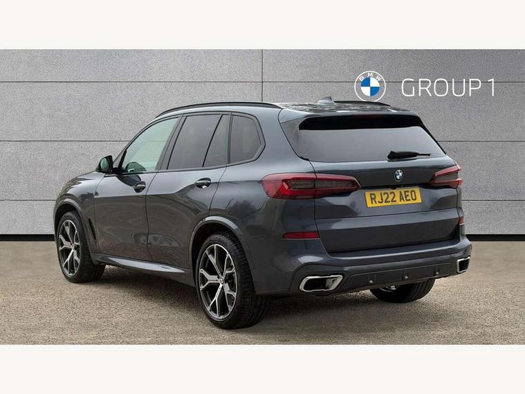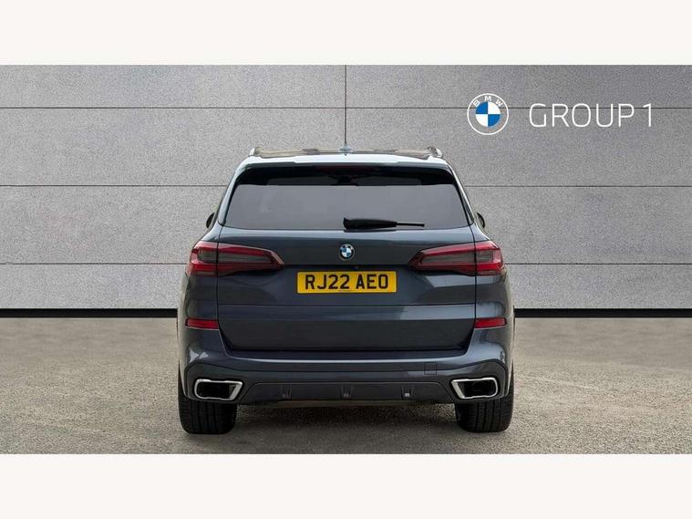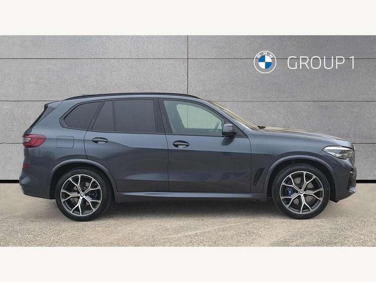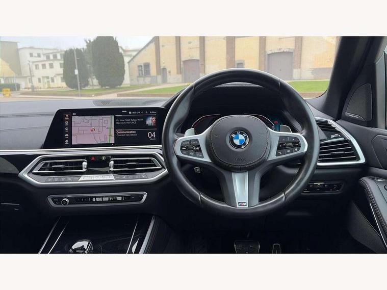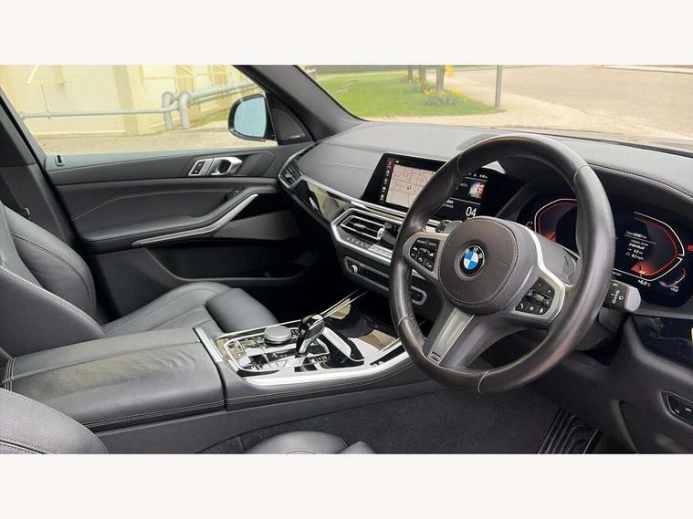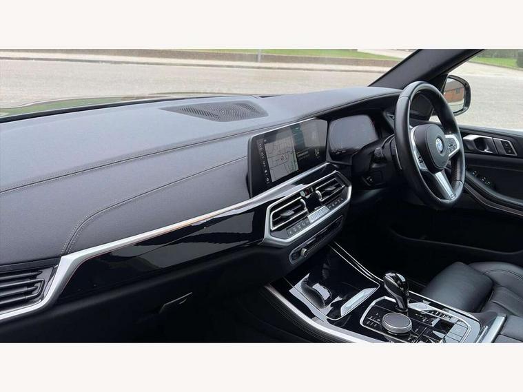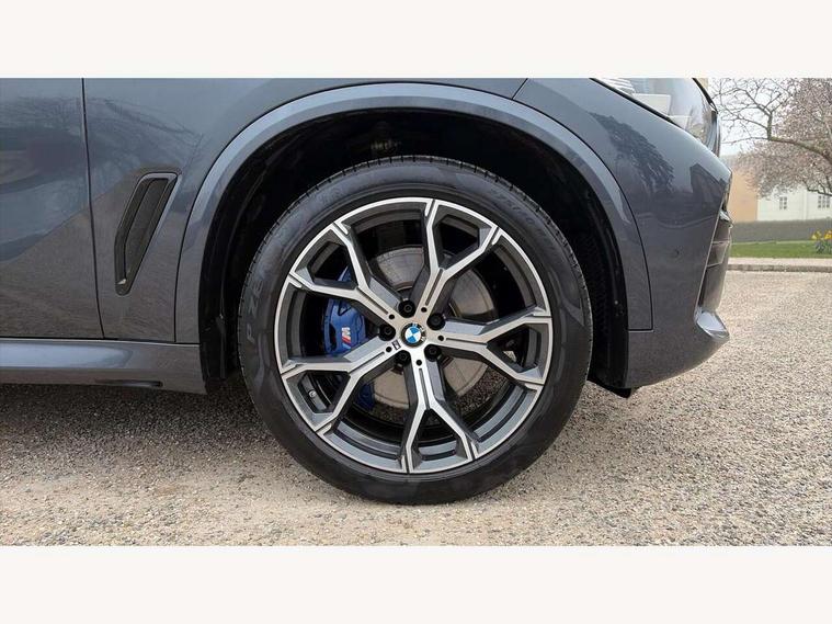 20GB hard disc drive (HDD) memory, Active guard plus, Attentiveness assist, Automatic tailgate with top hinged section open and manual bottom hinged section, BMW ConnectedDrive online services, BMW digital live cockpit professional - 12.3" digital instrument panel and 12.3" CID, with touch/voice command, BMW legal emergency call, BMW Teleservices, Brake force display, Brake pad wear indicator warning light, Cruise control with brake assist, Enhanced bluetooth with wireless charging, Front/rear park distance control, iDrive controller with shortcut buttons, Lights on warning, Oil sensor for level and grade, On board computer inc. average speed, fuel consumption, liquid crystal Info display, journey computer, outside temperature display, personal profile, Service interval indicator, Speed limit info display, Speed limiting function, Wi-Fi hotspot, 48V Mild hybrid technology, Adaptive 2-axle air suspension, Double VANOS, Double wishbone front axle, Drive performance control with ECO PRO comfort + sport mode, Eight speed steptronic sport automatic transmission and gearshift paddles on the steering wheel, High precision injection, Petrol Particulate Filter, Safety battery terminal clamp, Twin scroll turbocharger with Valvetronic, DAB Tuner enables digital radio reception, Favourite buttons, Hi-Fi loudspeaker system, USB connection, USB type A 1.5A in cupholder, USB Type C 3A in centre armrest, Active Air Stream kidney grille with high-gloss chrome, Adaptive air flap control bar in high-gloss black, Automatically dimming rear view mirror, BMW Individual high gloss black shadow line roof rails, BMW Individual high gloss shadow line, Body colour bumpers, Body colour door handles, Dynamic brake lights with LED technology, Exhaust tailpipes - single, left and right with Chrome finisher, Follow me home headlight function, Front and rear electric windows with open and close fingertip control, anti trap facility and comfort closing, Heated windscreen washer jets, High beam assistant, High gloss black outer and central air intakes on front bumper with pearlescent chrome finish, High gloss black Side elements, LED daytime running lights, LED rear lights, M aerodynamic body styling, M designation on left and right front side panels, Pearlescent chrome front grille bars, Rain sensor with automatic headlight activation and windscreen wiper control, Rear side wing doors, Satin aluminium side window graphic, Third brake light in rear spoiler, Variable intermittent rear wash/wipe, Welcome light carpet, X5 on left tailgate, xDrive designation on right tailgate, 12V - Power sockets with 2x centre console and 1x luggage compartment, 3 seat bench in 2nd row, 40:20:40 split folding rear seats, Ambient interior lighting with 6 pre-designed selectable lights including dynamic function, Centre and rear interior light, Child seat ISOFIX attachment with rear outer seats includes top tether, Compartment in front of cupholder, Electric front seat adjustment with driver and front passenger memory function, Electrical steering column with adjustable height and length with activation and control on the steering column, Foldable rear centre armrest with 2 cupholders and storage compartment, Front and rear cupholders x 2, Front and rear door pockets, Front and rear door sill inlays with illuminated BMW M designation, Front and rear side armrest integrated into door trim, Front footwell lights, Front reading lights, Light inside glove compartment, Lockable glove compartment, Luggage compartment floor panel with integral storage tray, Luggage compartment lighting, M leather steering wheel, M specific key, M specific steering wheel, Make-up mirror lights, Multifunction controls for leather steering wheel, Multifunctional hooks, Rear head restraints, Seat back with flap pocket, Securing rings in luggage compartment, Single front passenger seat, Storage bins on all doors, Storage tray and compartment with cover in centre console, Sunvisors with illuminated vanity mirrors, Toolkit located in luggage compartment, Velour floormats, Connected Package Professional - X5, Expanded exterior mirror pack - X5/X5 M, Non-smokers pack - X5, Airbags - driver/front passenger, rear and side, first and second row seats head airbags, front passenger seat airbag deactivation + knee airbag, Anti-lock braking system (ABS), Automatic Stability Control (ASC), Brake drying, Brake energy regeneration, Brake fade compensation, Braking pre-tensioning, Cornering brake control (CBC), Crash sensor activating central locking release, hazard warning lights, fuel cut off, interior lighting + activation of safety battery terminal clamp, Deformation zones - front and rear with door reinforcements and bumpers up to 2.5 mph, DSC - Dynamic Stability Control, Dynamic brake control, Dynamic Traction Control - DTC, Electromechanical parking brake with automatic drive away release and auto hold function, Electronic brake force distribution, Front and rear seatbelts with seatbelt stopper, seatbelt tensioner for front and outer rear seats and belt force limiter, Front head restraints with anti-whiplash, Height adjustable front seatbelts, Hill start assistant, Integrated brake system, M Sport braking system in blue high gloss + blue painted brake calipers with M designation, Mechanical child proof lock on rear doors, Passive protection for pedestrians, Seat occupancy detection for driver and passenger side, Side impact protection, Three 3 point inertia reel seatbelts, Two tone horn, Tyre pressure monitoring system, Ventilated front and rear disc brakes, Warning triangle and first aid kit, Closing system with central locking, Driver and front passenger door centre lock switch, Locking wheel bolts, Thatcham 1 alarm system with remote control and engine immobiliser, Start/stop toggle diamond shaped trim finisher in pearl chrome,