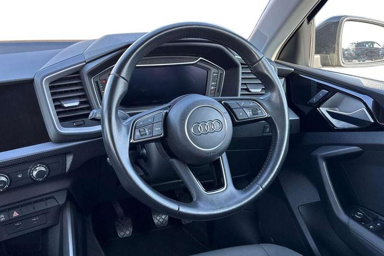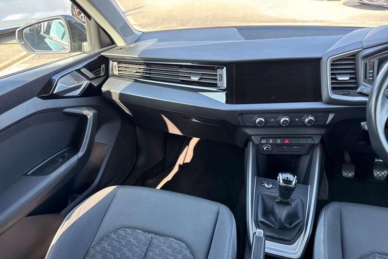 10.25" Digital instrument cluster display screen, Audi connect safety emergency and service including E-call, Audi drive select, Audi smartphone interface, Automatic start/stop system, Bluetooth interface, Driver's information system, Electromechanical power steering, Lane departure warning system, Service interval indicator, Speed limiter, Voice control system, Washer fluid level indicator, Dynamic suspension, 1 x SDXC card reader, 1 x USB type C and 1 USB type A charging points, Audi music interface, Bluetooth audio streaming, DAB Digital radio, MMI radio plus with 8.8" colour MMI display screen and MMI touch, Auto dimming rear view mirror, Body coloured bumpers, Body coloured door mirrors, Electric front and rear windows, Front side air inlets in grained matt black and C frame in titanium black, Heat insulating glass windscreen and side windows, Heated rear windscreen, LED headlights with LED rear lights + dynamic rear indicators, Radiator grille in matt titanium black, Radiator protective grille frame in matt aluminium silver, Rain and light sensors, Rear fog lights, Rear wiper, Side front spoiler lips in grained matt black, Titanium black matt diffuser, 12V socket in centre console with two cup holders, 3 rear seats, Door sills trims with aluminium inlays, Driver and passenger seat with manual height adjust with forward and backwards adjustment, Front head restraints, Front/rear floor mats, Height and reach adjustable steering wheel, Illuminated glovebox, ISOFIX child seat mounting in front passenger and rear outer seats, Leather gear knob with aluminium trim, Leatherette handbrake grip, Luggage compartment light with front and rear reading lights, Lumbar adjustment for front seats, Novum cloth upholstery with front sport seats, Rear head restraints, Split folding rear seats, Titanium grey cloth headlining, 3x3 point rear seatbelts, Audi pre-sense front with pedestrain and cyclist recognition, Brake assist function, Driver and front passenger airbag with front side and head airbags, Electronic Stability Control including ABS, EBD, ASR and EDL, Front and rear seatbelt reminder, Front passenger airbag deactivation switch, Hill hold assist, Seatbelt height adjustment for front seats, Seatbelt monitoring, Tyre pressure warning light, Warning triangle and first aid kit, Anti theft alarm, Anti theft wheel bolts and loose wheel warning, Immobiliser, Remote central locking with 2 remote folding keys, Aluminium trim for control switches, air vents and digital instrument cluster, Silver grey accent areas including air vents, door handle recesses and centre console in diamond paint finish, Slate grey inlays polygon structure in fine paint finish,