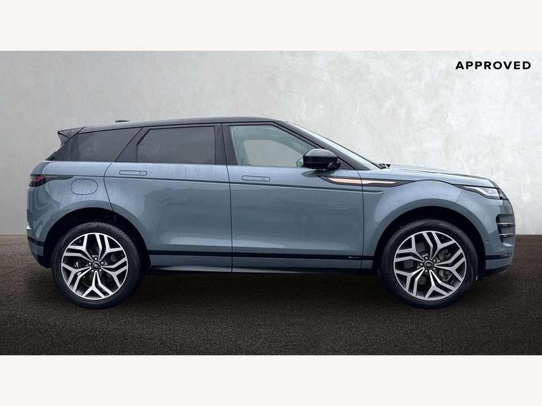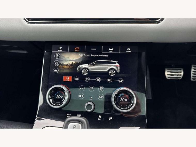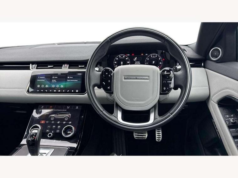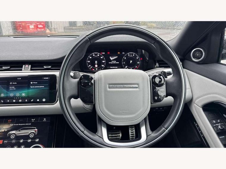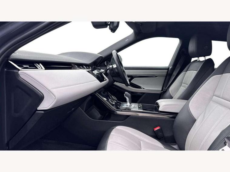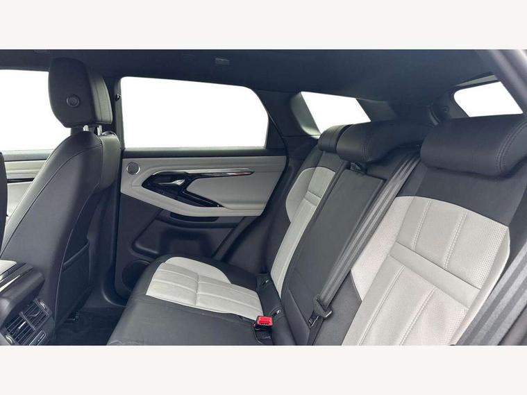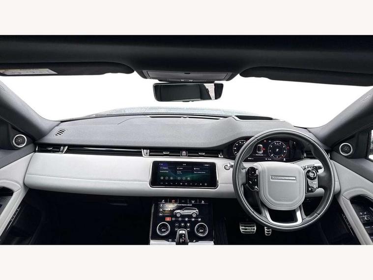 360 degree parking aid, Adaptive cruise control, Android Auto, Apple car play, Blind spot assist, Bluetooth connectivity, Brake pad wear indicator warning light, Clear exit monitor, Driver condition monitor, Duo touch pro, Electronic power assisted steering (EPAS), Head up Display, InControl remote, Interactive Driver display instrument cluster, Land Rover InControl apps, Lane keep assist, Navigation pro system, Park assist - Parallel, perpendicular and parking exit, Powered tailgate/boot lid, Pro services and wifi hotspot, Push button starter, Rear traffic monitor, Rear view camera, Smart settings, Traffic sign recognition with adaptive speed limiter, Voice control system, All terrain progress control, Efficient Driveline, Large fuel tank, Passive suspension, Terrain Response 2 Auto, Digital Audio Broadcast radio-DAB, Meridian sound system with 380W subwoofer and 10 speakers, Steering wheel mounted controls, Automatic headlight levelling, ClearSight interior rear view mirror, Electric windows with one touch open/close and anti trap, Evoque and R-Dynamic badge, Fixed panoramic sunroof with powered sunblind, Flush deployable exterior door handles, Front fog lights, Headlight power wash, Heated rear window with timer, Heated washer jets, Heated windscreen, Illuminated metal treadplates in loadspace and row 1 with First Edition script and non illuminated metal in row 2, Matrix LED headlights with signature DRL, intelligent high beam assist, signature Hi-Line tail lights and animated directional indicators, Metallic paint, Narvik black contrast roof with exterior mirror caps, No badge - Removes powertrain badge and specification pack badge, Power fold, auto-dimming, heated door mirrors with memory and approach lights, Privacy glass, Rain sensing windscreen wipers, Rear fog lights, Tailgate spoiler, 14 way electric heated front seats with memory, fore/aft, recline/height/tilt, 4way lumbar + manual headrest adj with rear centre armrest, 40:20:40 split folding rear seats, Black gearshift paddles, Bright metal pedals, Configurable Ambient interior lighting, Ebony morzine headlining, Electrically adjustable steering column, Extended leather upgrade, First Edition carpet mats, Heated steering wheel, Isofix system on outer rear seats, Overhead lighting console, Overhead stowage for sunglasses, Passive front head restraints, Perforated Duo-tone grained leather upholstery, Perforated soft grain leather steering wheel with Atlas bezel, Rear air vents, Rear centre headrest, Sunvisors with illuminated vanity mirrors, Twin front cupholders with cover, Twin sliding front centre armrest, Two zone climate control, Power socket pack 1 - Evoque, Anti-lock braking system (ABS), Customer configurable autolock, DSC - Dynamic Stability Control, Electronic brake force distribution, Electronic parking brake, Electronic traction control, Front and rear seatbelt reminder, High speed emergency braking, Hill descent control, Hill launch assist, Low traction launch, Power operated child locks, Roll stability control, Six airbags - Driver and passenger airbags/driver knee airbag/front side airbag and curtain airbags, Torque vectoring brake, Tyre pressure monitoring system, Alarm, Immobiliser, Intrusion sensor, Keyless entry, Locking wheel nuts, Gradated linear dark aluminium trim finisher with First Edition script, All season tyres, Tyre repair kit,