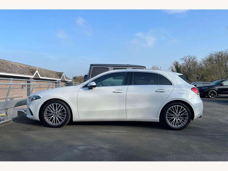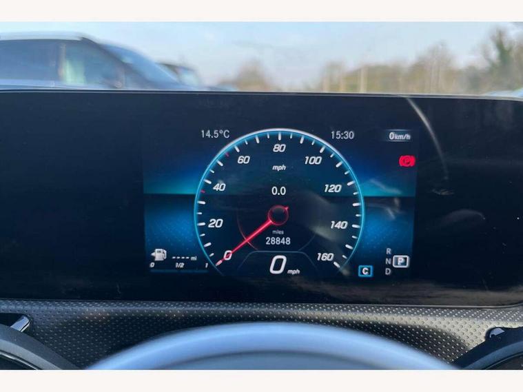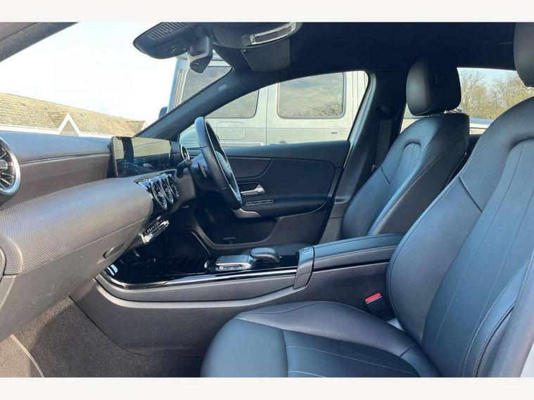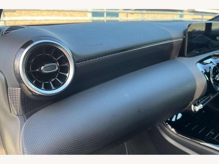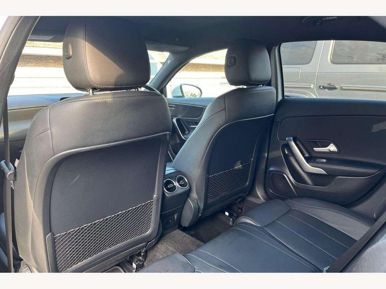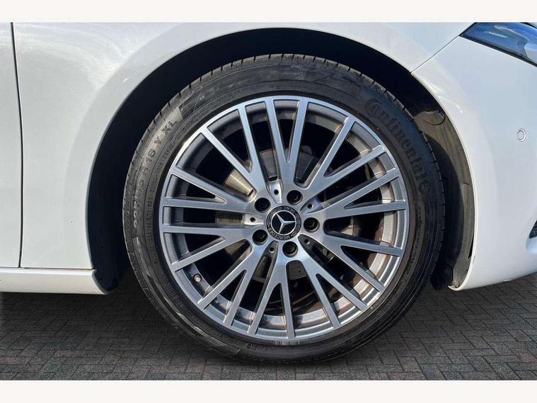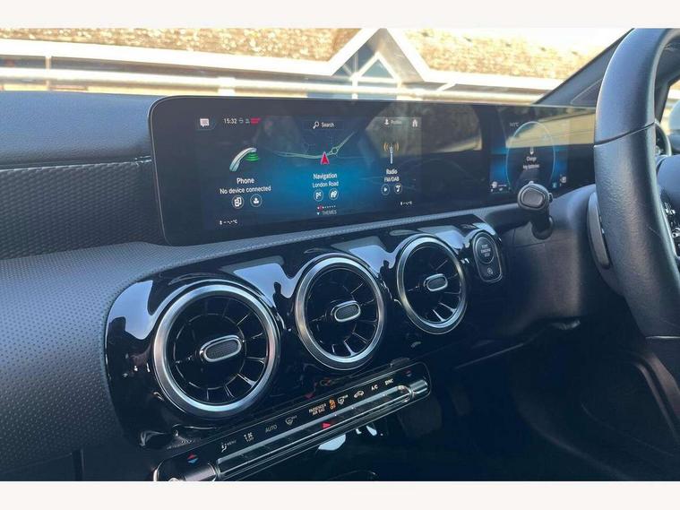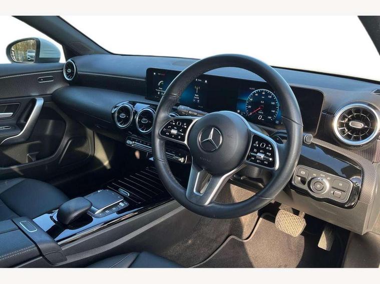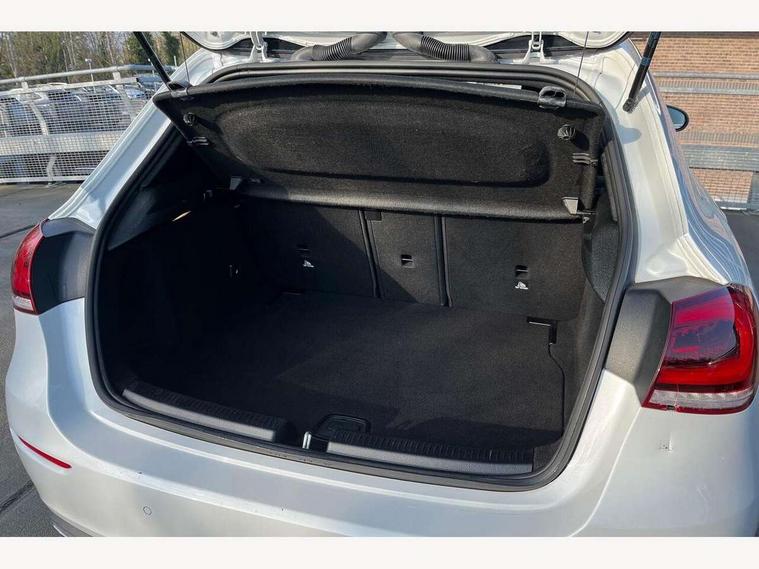 10.25" media display, 180 degree rear view camera with parking guidelines, 7" colour screen in instrument panel, Active parking assist with visual and audible warning of detected obstacles, Attention assist, Brake pad wear indicator warning light, Car wash mode, Cruise control + speed limiter, Direct steering, Dual bluetooth interfaces, DYNAMIC SELECT with a choice of driving modes (ECO, Comfort, Sport and Individual), ECO start/stop function, Fluid level warning indicator for fuel, oil, coolant and washer fluid, Hard-disk navigation, Hey Mercedes Voice activation, Lamp failure indicator, Lane keeping system, Mercedes me connect including emergency call system, accident recovery, breakdown and maintenance management, Mercedes me remote services, Outside temperature gauge, Owners manual in English, Pre-installation for private car sharing, Preinstallation for Mercedes Benz link, Service indicator (ASSYST), Smartphone integration with Apple CarPlay and Android auto, Speed sensitive power steering, Trip computer, Ultrasonic sensors positioned in the front and rear bumpers, Lowered comfort suspension, Rear axle torsion beam, 2 USB ports (type C) in rear stowage compartment and one in front of center console, 6 speakers, DAB Digital radio, MBUX multimedia system with DAB digital radio and touchpad including satellite navigation, Mercedes-Benz sound system - 100W, 4 Electric Front and Rear windows, Adaptive brake lights, Automatic headlights, Black weather strip, Body colour bumpers, Body colour door handles, Body colour side skirt, Body coloured door mirrors, Chrome beltline trim, Diamond radiator grille with black pins with one louvre in silver + chrome insert, Electric adjustable and heated door mirrors with integrated LED side indicators, Exhaust system - Twin visible tailpipes in polished stainless steel, Headlamp assist automatic headlamp activation, Heated glass rear windscreen + timer control, LED High level third brake light, LED high performance headlamps with integrated LED daytime running lights, LED tail lamp, Privacy glass, Radio aerial, Rain sensing windscreen wipers with two sensitivity settings, Rear fog lights, Rear side wing doors, Rear wiper, Window line trim strip in chrome, 3 seat bench in 2nd row, 3 Spoke leather multi function steering wheel, 40:20:40 split folding rear seats, Artico man-made leather upholstery, Auto Mercedes-Benz child seat recognition sensor, Black air vents with surround in silver chrome, Black roof lining, Controller on centre console with chrome surround, Front centre armrest with storage compartment, Front comfort seats with adjustable head restraints, Front door sills with Mercedes Benz lettering, Front seat backs luggage nets, Front seat cushion length adjustment, Gearshift paddles on steering wheel, Heated front seats, Height/reach adjustable steering column, Interior mirror with reading lamps in black and frameless, Manual height adjustable front seats, Rear head restraints, Seat occupancy sensor for front passenger seat, Single front passenger seat, Stowage compartment in centre console with retractable cover, Sunvisors with illuminated vanity mirrors, Touchpad on center console, Twin front cupholders, Two zone thermotronic luxury automatic climate control, Velour floor mats, Light and sight pack - A Class, Mirror package - A Class, Seat comfort pack - A Class, 3 rear 3 point seatbelts, ABS with Brake Assist, Active bonnet, Active brake assist includes forward collision warning system with autonomous braking, Adaptive brake assist with hold function and hill start assist, Black seatbelts, Childproof locks manually operated for rear doors and electrically operated for rear power windows, Crash responsive emergency lighting, Driver and passenger head and side airbags, Drivers knee airbag, Dual stage driver/passenger airbags, Electronic parking brake, ESP curve dynamic assist, ESP with ASR, Front and rear seatbelt reminder, ISOFIX and top tether child seat fixing points in two outer rear seats, Tyre pressure monitoring system, Warning triangle and first aid kit, Window airbags, Alarm system/interior protection/immobiliser, Keyless Go, Remote central locking and crash sensor with emergency opening function, Urban guard vehicle protection system with immobiliser and interior protection, Dark carbon fibre interior trim, 18" multi spoke light alloy wheels painted in himalayas grey with a high sheen finish, Summer tyres, Tirefit sealant kit,