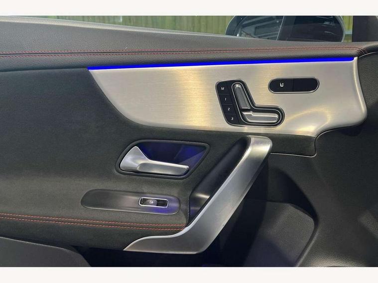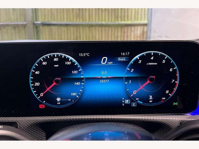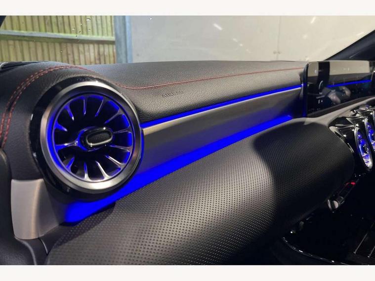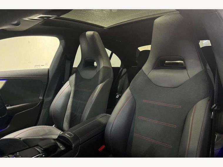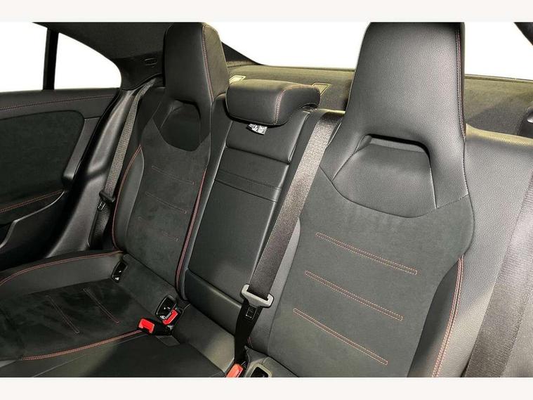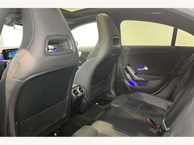 10.25 inch Instrument display with digital cockpit, 10.25 inch touchscreen central media display, Active lane keeping assist, Attention assist - Monitors steering behaviour and long journey fatigue, Blind spot assist, Bluetooth connection, Car wash mode, Cruise control with limiter, Direct steer system with speed sensitive power steering, DYNAMIC SELECT with a choice of driving modes (ECO, Comfort, Sport and Individual), ECO start/stop function, Fluid level warning indicator for fuel, oil, coolant and washer fluid, Hard-disk navigation, Hey Mercedes Voice activation, Lamp failure indicator, Mercedes me connect including emergency call system, accident recovery, breakdown and maintenance management, Mercedes me remote services, Outside temperature gauge, Owners manual and service booklet in English, Pre-installation of private car share, Preinstallation for Mercedes Benz link, Radio aerial integrated into front and rear windshields, Service indicator (ASSYST), Smartphone integration with Apple CarPlay and Android auto, Speed limit assist, Traffic sign assist, Trip computer in multifunction display with current consumption indicator, Lowered comfort suspension, Rear axle multi-link, DAB digital radio tuner, MBUX multimedia system, Mid-range sound system, USB (type C) ports (2) in stowage compartment and 1 in front of centre console, Adaptive brake lights, AMG body styling with AMG front apron and rear apron and visible exhaust tailpipe in chrome trim elements, AMG bodystyling side skirts, Body colour bumpers, Body colour door handles, Chrome beltline strips, Diamond radiator grille pins in chrome, Electric panoramic sunroof with automatic tilt and convenience closing fuinctions, rain sensor auto closing and electronic roller sunblind, Electric windows, Electrically adjustable and heated door mirrors with integrated LED indicators, Exhaust system with 2 Visible tailpipe trim elements and rear apron with trim in chrome, Headlamp assist automatic headlamp activation, Heated glass rear windscreen + timer control, High level LED third brake light, Integrated LED daytime running lights, Interior mirror with black reading lamps and frameless, LED tail lamp, Multibeam LED headlamps with adaptive highbeam assist plus, Privacy glass with dark tinting on rear side windows and rear window, Rain sensing windscreen wipers with two sensitivity settings, Rear boot, Rear fog lamp, Rear side wing doors, Variable front intermittent wipers, Window line trim strip in chrome, 3 seat bench in 2nd row, 3 spoke flattened bottom nappa leather multifunction steering wheel with perforated leather in grip area, 40:20:40 split folding rear seat backrests, Air conditioning - Two zone thermotronic luxury automatic climate control with display, Air vents with surround in silver chrome, Artico man-made leather upholstery, Automatic child seat recognition sensor, Black roof lining, Brushed stainless steel sports pedals with rubber studs, Electrically adjustable front memory seats including lumbar support, Floor mats with stitched AMG lettering, Front centre armrest with stowage, Galvanished gear shift paddles on steering wheel, Heated front seats, Illuminated front door sills with changeable cover, Illuminated glove compartment stowage, Interior lighting - 64 colour Ambient lighting, Luggage net on driver/front passenger seat backrest, Manually adjustable front seats, Manually height and reach adjustable steering column, Rear armrest with two integral cup holders for drinks, Rear head restraints, Single front passenger seat, Sport seats with fixed head restraints, Stowage compartment in centre console with retractable cover, Sunvisors with illuminated vanity mirrors, Touchpad on center console, Twin front cupholders, Two outer rear seat isofix and top tether child seat fixing points, Keyless go comfort pack - CLA, Light and sight pack - CLA, Mirror pack - CLA, Night package - CLA, Parking package - CLA, Active bonnet pedestrain safety measure which detects an impact and raises bonnet by 65mm, Active brake assist includes forward collision warning system with autonomous braking, Adaptive brake assist with hold function and hill start assist, Anti lock braking system (ABS) with brake assist, Black seat belts, Bonnet with power domes, Brake pad wear warning indicator, Childproof locks manually operated for rear doors and electrically operated for rear power windows, Crash responsive emergency lighting, Driver and front passenger head and sidebags, Driver and front passenger windowbags, Drivers knee airbag, Dual stage driver and front passenger airbags, Electric parking brake, Electronic stability programme with acceleration skid control, ESP curve dynamic assist, Exit warning, Front and rear seatbelt reminder, Front passenger seat occupancy sensor, Three point rear seat belts, Tyre pressure monitoring system, Warning triangle and first aid kit, Guard 360 degree guard vehicle protection system with immobiliser and interior protection, Remote central locking and crash sensor with emergency opening function, Light aluminium with longitudinal grain interior trim, 19" AMG multi-spoke black painted light alloy wheels with high sheen rim finish, Summer tyres, Tirefit tyre sealant kit,