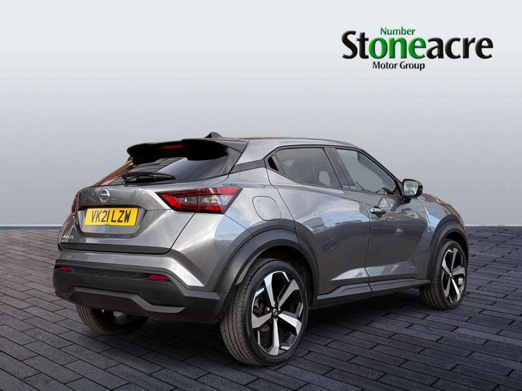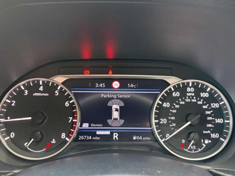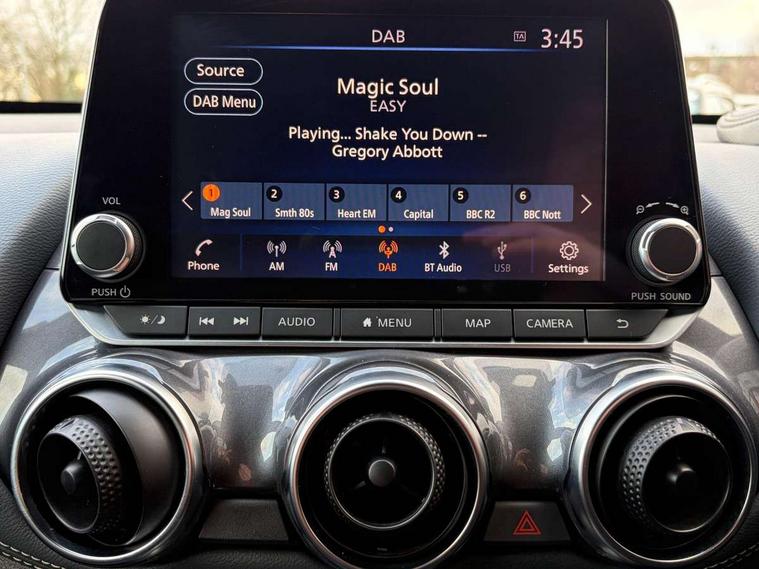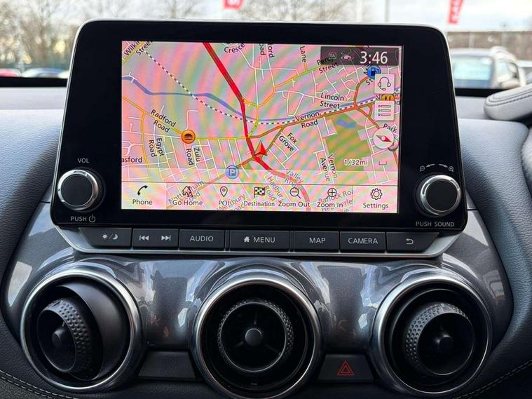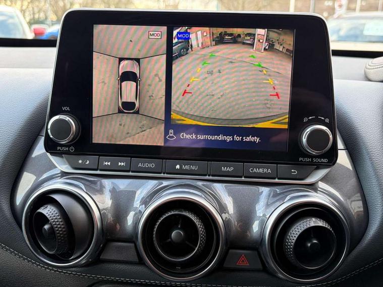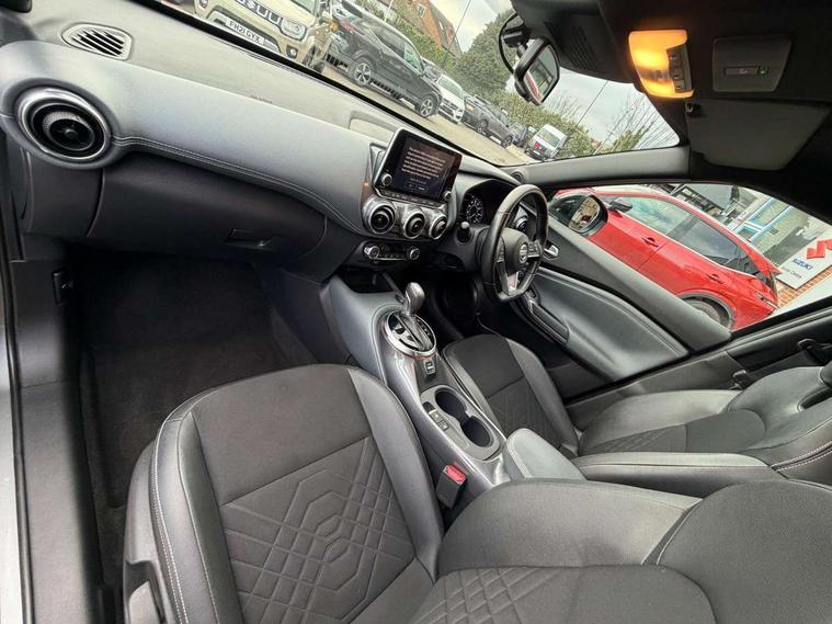 7" full colour TFT screen combimeter, 8" infotainment colour display with touch screen, Apple CarPlay and Google Android auto, Drive modes select (Eco, normal and sport), Emergency and breakdown call, Front parking sensor, Idle start/stop system, Intelligent lane intervention, Lane departure warning system, Nissan connect nav with TomTom traffic, Nissan connect services and Wifi connection, Outside temperature sensor, Power Steering, Rear parking sensor, Traffic sign recognition, Trip computer, Gasoline particulate filter, Bluetooth system, USB, Aux-in and 12V socket, Bose personal plus audio system with 8 speakers(4 speakers and 2 headrest speaker for driver and passenger seats), Bose personal sound stage control, DAB Digital radio, Rear console USB port, Auto dimming interior rear view mirror, Automatic hazard signal with emergency stop signal, Body colour bumpers, Body colour door handles, Electrically adjustable door mirrors with integrated indicators, Follow me home headlights, Front and rear electric window with one touch driver window, Heated and auto folding door mirrors, High beam assist, LED daytime running lights, LED front fog lights, LED headlamps, LED rear fog lamp, LED rear lamps, Rain sensor windscreen wipers, Rear privacy glass, Rear spoiler, Rear wiper, Thermaclear heated windscreen, Three blink turn signal, 3 height adjustable rear headrests, 60/40 split folding rear seat, Automatic climate control, Card holder on driver sunvisor, Cloth/Synthetic leather upholstery, Door ambient lighting, Driver and passenger sliding and reclining seats, Driver seat back pocket, Driver side rear coat hanger, Driver/passenger sunvisors and vanity mirrors, Front and rear cabin lighting, Front armrest, Front door pockets with bottle holders, Front head restraints, Front passenger isofix child seat anchorage point, Front/rear passenger grab handles, Gear console ambient circle lighting, Grey synthetic leather kneepad, Heated front seats, Height adjustable driver's seat, Height adjustable passenger seat, Internal chrome door handles, Leather gearshift knob, Leather steering wheel, Luggage board, Luggage space lighting, Monoform sporty seats, Multifunction steering wheel, Passenger seat back pocket, Rear door bottle holders, Steering wheel mounted gearshift paddles, Telescopic steering wheel adjustment, Two cupholders in front centre console, Two rear isofix child seat anchorage points with top tether, Voice recognition switch on steering wheel, Welcome light and console tray ambient lighting, ProPilot pack - Juke, ABS with EBD and brake assist, Active ride control, Active Trace Control, Driver and passenger airbags, Driver and passenger side airbags, Electric handbrake with auto hold function, Electronic Stability Programme (ESP), Front and rear curtain airbags, Height adjustable seatbelts, Hill start assist, Intelligent emergency braking with pedestrian and cyclist recognition, Seatbelt reminder for driver/front passenger and rear seats, Single tone horn, Three 3 point rear seatbelts, Traction control, Tyre pressure monitoring system, VDC Dynamic Vehicle Control, Ventilated rear brake discs, Alarm, Immobiliser, Intelligent Key with push button starter, Remote central locking,