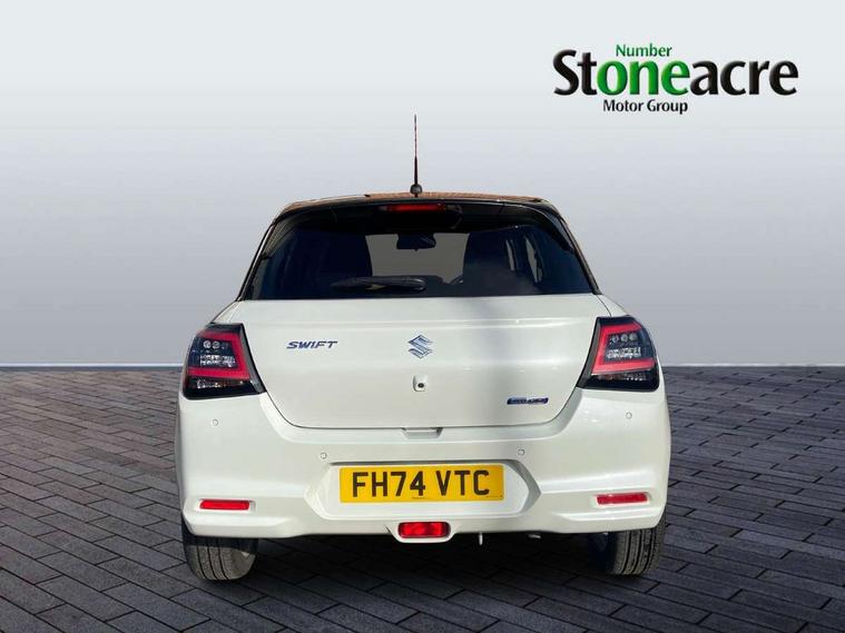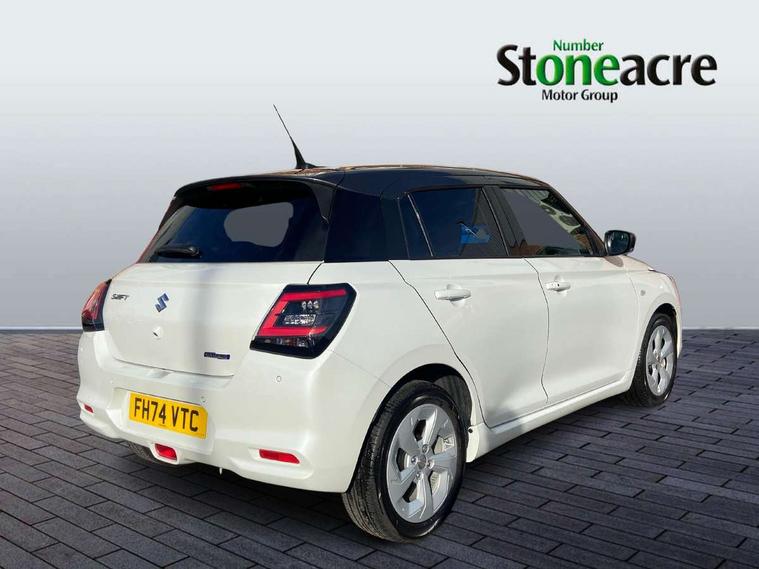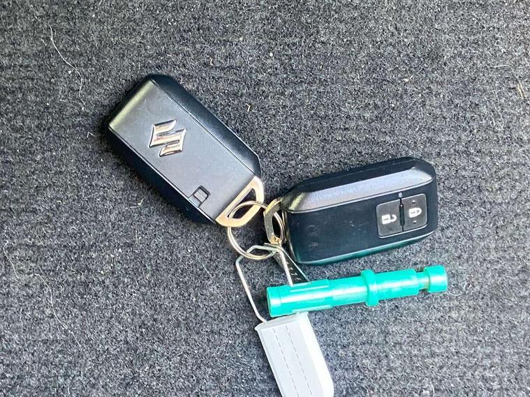 Adaptive cruise control with Stop and Go, Automatic start/stop system, Blind spot monitoring, Colour LCD information display, Digital clock, Driver monitoring system, eCall, Fuel consumption display (average/instantaneous) and range display, Intelligent speed control support, Lane departure prevention, Lane departure warning system, Lane keeping assist (LKA), Low fuel level warning light, Navigation system, Outside temperature display, PAS, Rear cross traffic alert, Rear parking camera, Rear parking sensors, Remote fuel cap release, Smartphone integration with Apple CarPlay and Android auto, Suzuki connect, Tailgate, Traffic sign recognition, Weaving alert, 4 speakers + 2 tweeters, 9-inch infotainment display, Auxiliary input socket, Bluetooth audio streaming, DAB Digital radio, Steering wheel audio controls, USB Type A and C, 'Guide me home' headlamps, 1 speed with intermittent rear wiper + washer, 2 speeds front wiper with intermittent + washer, Automatic headlights, Black coloured A & B pillars, Black Upper and lower front grille, Body colour door mirrors and handles, C pillar trim moulding, Electric door mirrors, Electric front windows, Electric rear windows, Green tinted glass, Heated door mirrors, High beam assist, LED daytime running lights, LED High mounted stop light, LED position lamps, LED projector headlamps, LED rear combination lamp, Manual headlamp level control, Rain sensor, Rear fog lights, Rear privacy glass, Rear side wing doors, Rear spoiler, Side spoiler, 1 cup holder in rear, 12V Accessory socket in front console, 2 cup holders in front, 2 Isofix seat anchors, 3 bench rear seats in 2nd row, 3 rear head restraints, 3 spoke leather covered steering wheel, 60/40 split rear seats, Accessory socket, Centre console storage, Centre lower box, Child seat tether anchorages x 2, Chrome handbrake release button, Chrome interior door handles, Cloth upholstery, Door pockets with bottle holder, Driver/passenger sunvisors with ticket holders + vanity mirrors, Front cabin lights, Front headrests, Front map light, Front passenger side assist grip, Glovebox, Heated front seats, Heater, Height adjustable driver's seat, Luggage area lamp, Manual air conditioning with digital control panel, Material door trim ornament, Parcel shelf, Passenger seat back pocket, Pollen filter, Single front passenger seat, Tilt adjustable steering wheel, Tilt/telescopic adjustable steering wheel, 3 point ELR seatbelts for centre seat, 3 point ELR seatbelts front and rear, ABS+EBD+Brake assist, Curtain airbags, Driver airbag, Dual sensor brake support, ESP + traction control, Front and rear seatbelt reminder, Front passenger airbag, Front passenger airbag deactivation, Front seatbelt pretensioners with force limiters, Hill hold control, Rear child proof door locks, Rear seatbelts with pre-tensioners and load limiters, Side airbags with incorporated into front seats, Tyre pressure indicator, Deadlocks, Freewheeling key cylinders, Immobiliser, Keyless entry and start, Light - on and Key in reminder, Locking wheel nuts, Remote central locking, Painted instrument panel ornament, 16" Painted alloy wheels,