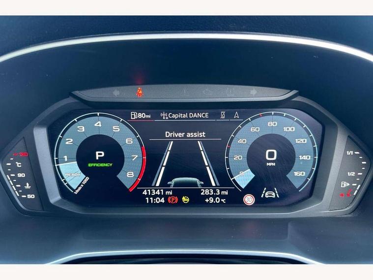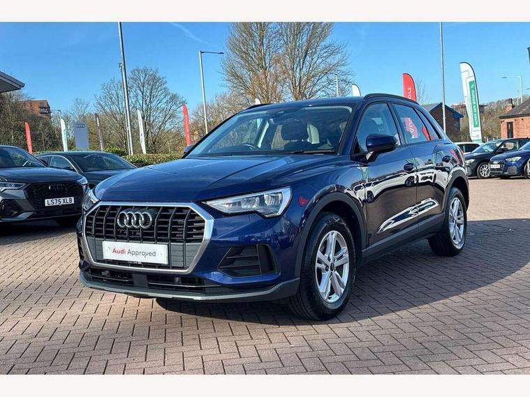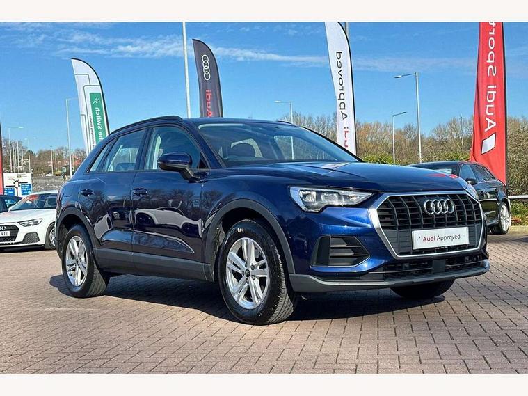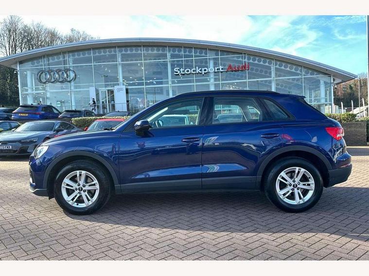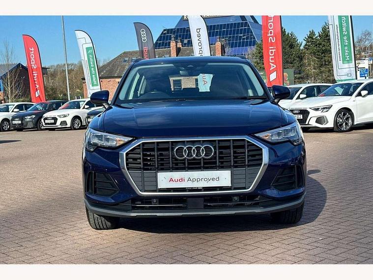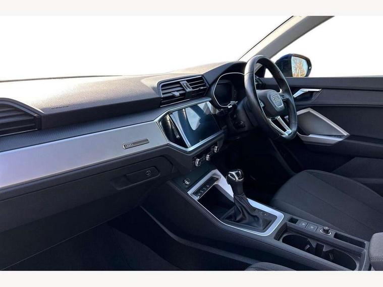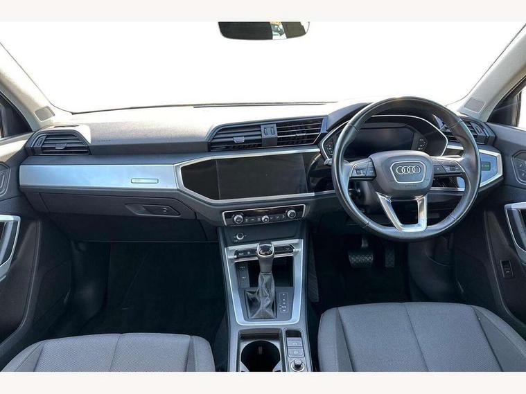Amazon alexa Integration, Audi connect safety and service (e-call), Audi drive select, Audi lane departure warning, Audi Virtual Cockpit - 10.25" display, Bluetooth interface, Camera based traffic sign recognition, MMI Navigation Plus with high resolution 10.1 inch touchscreen colour display, Power operated tailgate, Progressive steering, Service interval indicator, Smartphone interface includes wireless Apple carplay/Android Auto, Start stop system with recuperation, Voice control system with natural language interaction, 48V Mild hybrid technology, Standard suspension, 2 USB-C ports with charge and data functions, 6 passive loudspeakers, DAB digital radio module, Acoustic windscreen, Auto dimming frameless rear view mirror, Black roof rails, Body colour door mirrors, Diffuser in grained anthracite, Electrically folding, adjustable and heated door mirrors with integrated LED side indicators and kerb view function for passenger side, Exterior bumper with wheel arch trims and side sill trims in grained black matt, Front and rear electric windows, Grained radiator protective grille, Halogen rear lights, LED headlights with LED daytime running lights, Rain and light sensors, 12V socket in rear centre console, 3 spoke multi-function leather steering wheel, 40:20:40 folding with manual adjustment for 60:40 forwards/backwards position and backrest angle, Dual zone electronic climate control, Front and rear floor mats, Front and rear headrests, Front and rear roof module including reading lights, Front centre armrest, Glove compartment lighting, Height and reach adjustable steering wheel, ISOFIX child seat mounting for front passenger with airbag deactivation and outer rear seat including top tether attachment point for outer rear seats, Luggage compartment light, Lunar silver cloth headlining, Manual front seats with height adjustment, Stainless steel luggage compartment sill finisher, Non smoking pack - Q3, 3x3 point rear seatbelts, 6 airbags - Driver, front passenger, curtain and side windows, Audi pre-sense front with pedestrain and cyclist recognition, Electrically operated child locks on rear doors, Electromechanical parking brake, Electronic stabilisation control including ABS, ASR and EDL, Hill descent control, Hill hold assist, Pre sense basic, Seatbelt monitoring, Tyre pressure warning, Warning triangle and first aid kit, Anti theft alarm, Anti theft wheel bolts, Remote central locking, Detail dashboard around MMI touch colour display in glass look, black with surround in aluminium look, Micrometallic silver inlay, 17" 5 twin spoke design alloy wheels, Tool kit, Tyre repair kit,