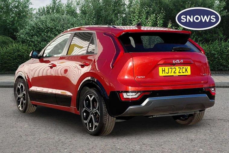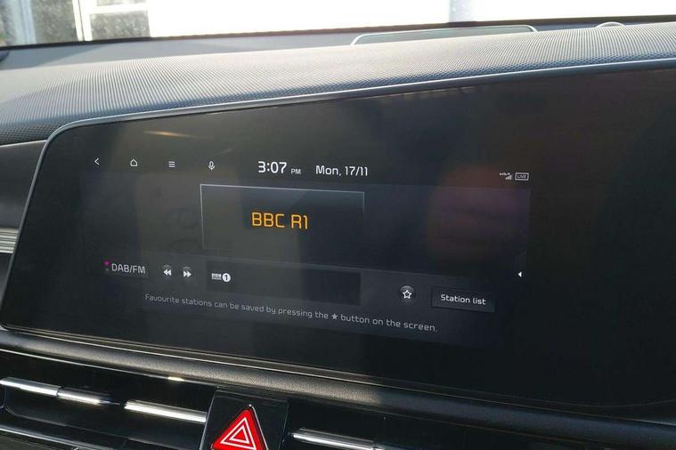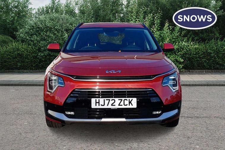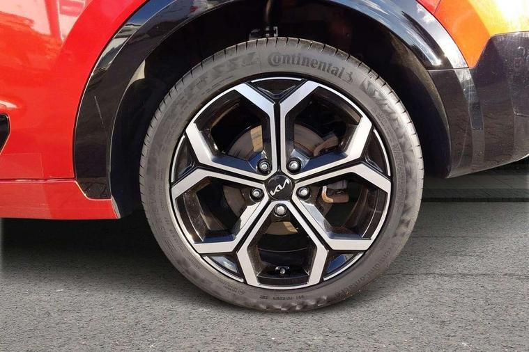 10.25" touchscreen satellite navigation, 4.2" supervision colour cluster display, Adaptive smart cruise control function (SCC) with stop and go, Apple car play/Android Auto with voice control, Blind spot collision avoidance assist, Drive mode select (Eco, sport), E-call, Emergency stop signalling system, Forward Collision-Avoidance Assist (FCA) 1.5 - City/Pedestrian/Cyclist/Junction turning, Front parking sensors, Highway Driving Assist (HDA), Kia Connect (UVO), Lane Following Assist (LFA), Lane keep assist, Motor driven power steering, Rear cross traffic alert, Rear parking sensors, Reversing camera with dynamic guide lines, Safe exit warning (SEW), Speed limit assist, Tailgate, Trip computer with distance/fuel consumption/average speed, Wireless Smartphone charger, 220v AC Inverter, 'Shark fin' mobile antenna, 2 type C USB ports on front seats, 2 USB ports in centre console including 1 type C, 6 speakers, Bluetooth with music streaming, DAB Digital radio, Steering wheel mounted controls, Acoustic windshield, All round electric windows with drivers and front passenger auto up/down and safety function, Auto dimming rear view mirror, Automatic defog system, Automatic headlight control system, Black grille with chrome surround, Body colour bumpers, Body colour exterior door handles, Dual LED headlights (low and high projection), Electric heated door mirrors, Electrically folding door mirrors, Front and rear chrome skid plates, Front fog lights, Heated rear window with timer, High gloss black cladding, High gloss black door mirrors, LED daytime running lights, LED rear combination lights, LED third brake light, Privacy glass - Rear windows and tailgate, Rain sensing front wipers, Rear fog lights, Rear side wing doors, Rear spoiler, Rear wiper, Roof rails, Solar glass windscreen, Welcome and follow-me home light functionality, Windscreen Washer Level Warning, 12v socket in front, 12V socket in luggage compartment, 3 seat bench in 2nd row, 60/40 split/folding 2nd row of seats, All-round height adjustable headrests, Artificial leather centre console storage box, Artificial leather steering wheel, Bulb overhead console, 2nd row and luggage lamp, Centre console cupholder, Chrome coating interior door handles, Cloth / Artificial leather upholstery, Driver's power adjustable seat, Driver/passenger sunvisors with illuminated vanity mirrors, Drivers seat power lumbar support, Dual zone automatic air conditioning, Front and rear door storage, Heated front seats, Heated steering wheel, Illuminated glovebox, Interior door lock/unlock function, ISOFIX Child seat top tethers and anchor fixings, Luggage area load cover, Luggage board, Paddle shifts, Passenger seat height adjuster, Rear armrest, Seatback pocket - driver, Seatback pocket - front passenger, Shift by wire SBW, Single front passenger seat, Tilt/telescopic adjustable steering wheel, Ventiliation ducts to rear compartment, Towing pack - Niro, 3 point seatbelts on all seats, ABS, Automatic unlocking of doors in case of impact, Centre side front airbags, Curtain and side airbags, Drivers knee airbag, Dual shell horn, Electric parking brake with auto hold function, Electronic stability control, Front passenger airbag deactivation, Height adjustable front seatbelts, Hill start assist control (HAC), Manual rear child locks, Rear seat alert system, Traction control, Tyre pressure monitoring system, Alarm system and engine immobiliser, Deadlocks, Engine Start/Stop Button with Smart Entry System, Locking wheel nuts, Visible vehicle identification number, Warranty - 7 Years/ 100, 000 miles, Centre fascia chopped carbon, 18" Alloy wheels, Tyre mobility kit,