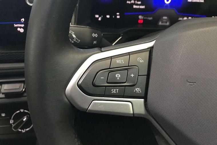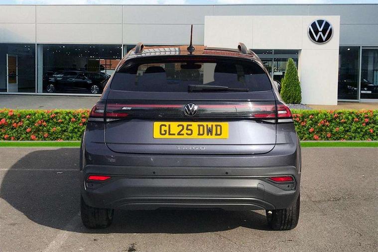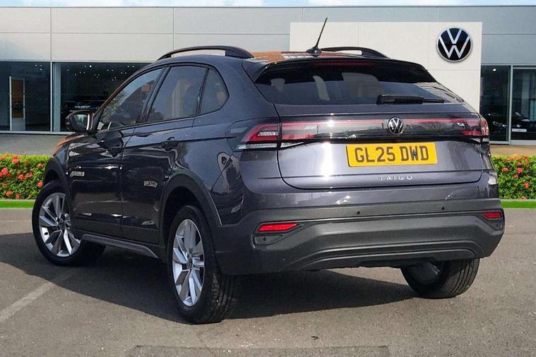 Advanced driver attention and drowsiness monitor, Dynamic road sign display, e-Call (emergency call), Power Steering, Predictive adaptive cruise control, Rear view camera, Travel assist including emergency assist, Washer fluid level indicator, Wireless Charging including Bluetooth, Start-stop system with battery regeneration (recuperation - energy recovery during braking), WeConnect plus, Ambient lighting with logo projection, Aspherical driver's exterior mirror, Body coloured bumpers, Body coloured exterior mirror housings and door handles, Electric windows, External USB type C socket and charging sockets, Heat insulating glass windscreen, LED rear combination lamp, LED third brake light, Left convex exterior mirror, Power folding adjustable/heated exterior mirrors and front passenger exterior mirror lowering function, Rear fog light on one side, reversing light on both sides, Rear side wing doors, Rear wash/wipe with intermittent wipe setting, Side windows in heat-insulating glass, from B-pillar and rear window dark tinted, 'Slash/ Austin' Cloth upholstery, 12V socket in centre console, 2 front reading lights, 3 rear head restraints, 3 seat bench in 2nd row, Black carpets, Ceramique headliner, Child seat anchor for child seat system i-Size, 2x top tether and child seat anchor in front on front passenger side, Door and side trim panels in titan black, Driver and front passenger seat height adjustment, Front centre armrest, Handbrake lever handle in leather, Height and reach adjustable steering wheel, Leather trimmed gear knob, Leather wrapped multifunction steering wheel, Luggage compartment floor, Luggage compartment light, Lumbar support for driver's and front passengers seat, Seat covers in titanium black, Single front passenger seat, Split folding backrest with centre armrest and unsplit rear seat bench, Storage compartment under front seats, Sun visors with illuminated vanity mirrors, Titanium black instrument panel, Chrome Package - Taigo, Drivers assistance package - Taigo, Light and sight pack - Taigo, 2 x 3-point seatbelts/outer rear seats with ECE label, 3-point seat belts in front with pretensioner and height adjustment, 3-point seatbelt for centre rear seat, Driver and front passenger airbag with front passenger airbag deactivation, Driver and front passenger safety-optimised head restraints, Electronic stability control, Extended and predictive pedestrian/ cyclist protection, Front and rear disc brakes, Front curtain and side airbags with center airbag, Hill start assist, Manual rear child locks, Single tone horn, Tyre pressure loss indicator, Anti-theft alarm system with interior monitoring, backup horn, and towing protection, Keyless locking and starting system keyless access with safelock, Black (slush) Dashboard, Lava stone black gloss/matt decorative inserts in dash and front door panels, Low rolling resistance tyres,