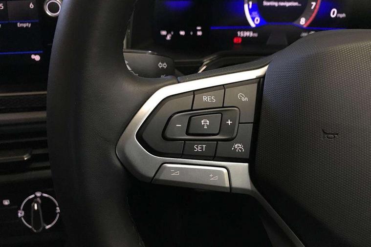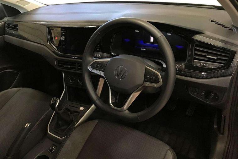 8" Digital cockpit basic display, Advanced driver attention and drowsiness monitor, Dynamic road sign display, e-Call (emergency call), Power Steering, Predictive adaptive cruise control, Rear view camera, Travel assist including emergency assist, Washer fluid level indicator, Wireless Charging including Bluetooth, Start-stop system with battery regeneration (recuperation - energy recovery during braking), Digital radio reception (DAB+), WeConnect plus, Ambient lighting with logo projection, Aspherical driver's exterior mirror, Body coloured bumpers, Body coloured exterior mirror housings and door handles, Electric windows, External USB type C socket and charging sockets, Heat insulating glass windscreen, LED rear combination lamp, LED third brake light, Left convex exterior mirror, Power folding adjustable/heated exterior mirrors and front passenger exterior mirror lowering function, Rear fog light on one side, reversing light on both sides, Rear side wing doors, Rear wash/wipe with intermittent wipe setting, Side windows in heat-insulating glass, from B-pillar and rear window dark tinted, 'Slash/ Austin' Cloth upholstery, 12V socket in centre console, 2 front reading lights, 3 rear head restraints, 3 seat bench in 2nd row, Black carpets, Ceramique headliner, Child seat anchor for child seat system i-Size, 2x top tether and child seat anchor in front on front passenger side, Door and side trim panels in titan black, Driver and front passenger seat height adjustment, Front centre armrest, Handbrake lever handle in leather, Height and reach adjustable steering wheel, Leather trimmed gear knob, Leather wrapped multifunction steering wheel, Luggage compartment floor, Luggage compartment light, Lumbar support for driver's and front passengers seat, Seat covers in titanium black, Single front passenger seat, Split folding backrest with centre armrest and unsplit rear seat bench, Storage compartment under front seats, Sun visors with illuminated vanity mirrors, Titanium black instrument panel, Chrome Package - Taigo, Drivers assistance package - Taigo, Light and sight pack - Taigo, 2 x 3-point seatbelts/outer rear seats with ECE label, 3-point seat belts in front with pretensioner and height adjustment, 3-point seatbelt for centre rear seat, Driver and front passenger airbag with front passenger airbag deactivation, Driver and front passenger safety-optimised head restraints, Electronic stability control, Extended and predictive pedestrian/ cyclist protection, Front and rear disc brakes, Front curtain and side airbags with center airbag, Hill start assist, Manual rear child locks, Single tone horn, Tyre pressure loss indicator, Anti-theft alarm system with interior monitoring, backup horn, and towing protection, Keyless locking and starting system keyless access with safelock, Black (slush) Dashboard, Lava stone black gloss/matt decorative inserts in dash and front door panels, Low rolling resistance tyres,