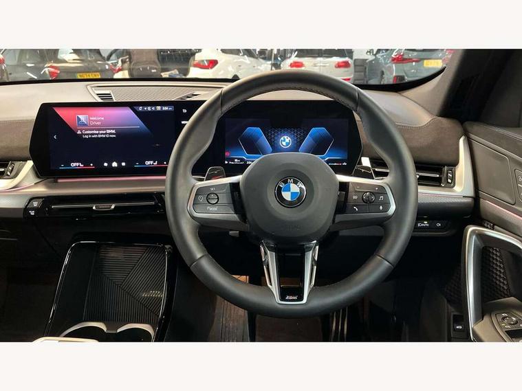 Attentiveness assist, Automatic start/stop function, BMW Live Cockpit Plus with 10.25" instrument cluster and 10.7" display, BMW Operating system 9 with BMW Maps, real-time traffic information, in-car experiences, remote services and smartphone integration, BMW Teleservices, Brake pad wear indicator, Condition based service, Connected eDrive Services, Drive off assistant, Electrically opening/closing tailgate with opening/closing with remote control and contactless opening and closing, iDrive controller, Language version English, My Modes, Parking Assistant with Reversing Assistant, active PDC, Lateral Parking Aid, Rear View Camera and Park Distance Control, Personal Profile - automatic lock when driving away selectable, Servotronic PAS, Tyre puncture warning system, Widescreen display, EU6 emissions management, Larger Fuel Tank, M Adaptive suspension, Performance Control, Petrol Particulate Filter, Steptronic transmission with double clutch and gear shift paddles, BMW Personal eSim, DAB Digital radio, Badge on engine compartment lid and tailgate, Body colour door mirrors, Dynamic brake lights, Electric adjustable heated door mirrors, Electric windows - front and rear, with open/close fingertip control, anti-trap facility and comfort closing, Folding door handles integrated flush with surface, Follow me home headlights, Front and rear bumper panel with M specific design, in body colour with inserts in black high gloss, Front door exit lights, Heated rear window, High gloss shadowline, Invisible exhaust tailpipe, Key with M identification, LED 3rd brake light integrated in rear spoiler, LED daytime running lights, LED number plate light, M identification on the sides, M roof rails high gloss shadow line, M specific radiator grille in satinated aluminium, Matt black roof strips, Model inscription on right tailgate, Rain sensor including auto headlights activation, Rear side wing doors, Rear wiper, Sill cover in body colour, Trailer stabilisation logic, Window washer nozzle for rear view camera, Windscreen wipers front with heated washer nozzles, 12V - Power sockets with front centre console and luggage compartment, 2 bag hooks in luggage compartment, 2 cup holders in front, 2 x USB Type C ports for charging in front centre console + 1 x USB Type C ports for charging in rear centre console, 3 rear headrests, 3 seat bench in 2nd row, 3 upper retaining strap clips integrated into rear panels of seat backrests, 4 grab handles, 40:20:40 split folding rear seats, Ambient interior lighting, Anthracite headlining, Anthracite Velour front and rear floormats, Bottle trays in all doors, Child seat ISOFIX attachment for two outer rear seats and front passenger seat with anchorage points, Clothes hook rear, Driver and front passenger heated seats, Dual zone automatic air conditioning, Front and rear door pockets, Front and rear footwell lighting, Front centre console storage compartment, Front/rear adjustable head restraints, Glove compartment, Interior door handle recess light on all doors, Light on right in luggage compartment, M sport leather steering wheel, Manual steering column height and depth adjustment, Middle centre console storage compartment, One piece parcel shelf opens together with tailgate and removable, Rear armrest in door trim panel, Single front passenger seat, Sport leather multifunction steering wheel with thumbrests and operation of instrument display, audio, telephone and driver assistance, Storage compartment net in left side trim panel, Storage compartment with folding cover under centre console armrest cushion, Storage tray in right side trim panel, Tilt adjustment incl. cargo function of 2nd row of seats, Vanity mirror lights, ABS/EBD, Automatic hold function, Automatic Stability Control (ASC), BMW emergency call, Braking readiness, Cornering brake control (CBC), Crash Sensor - activates hazard/interior lighting + unlocks doors, Driver/Front Passenger airbags, Driver/front passenger side airbags, Dry braking, Dynamic brake control, Dynamic stability control + (DSC+), Electromechanical parking brake, Energy recovery system, First aid kit, Front and rear brake discs, Front and rear head airbags, Front passenger airbag deactivation, Integrated brake system, PC iBrake PostCrash approach control warning with light braking function, Rear door child safety locks, Three point seat belts in all seats, Tyre pressure monitor, Warning triangle, Alarm system with tilt sensor, monitoring doors, bonnet interior and tailgate, Closing system with central locking, Locking wheel bolts, Luxury instrument panel, Tyre repair kit plus,