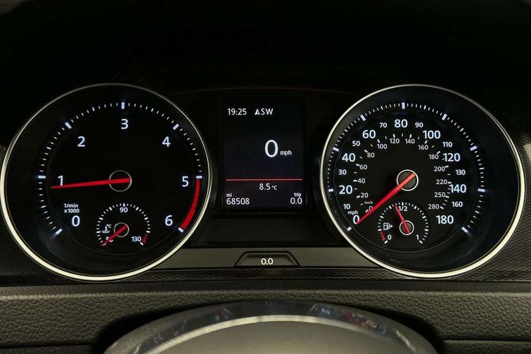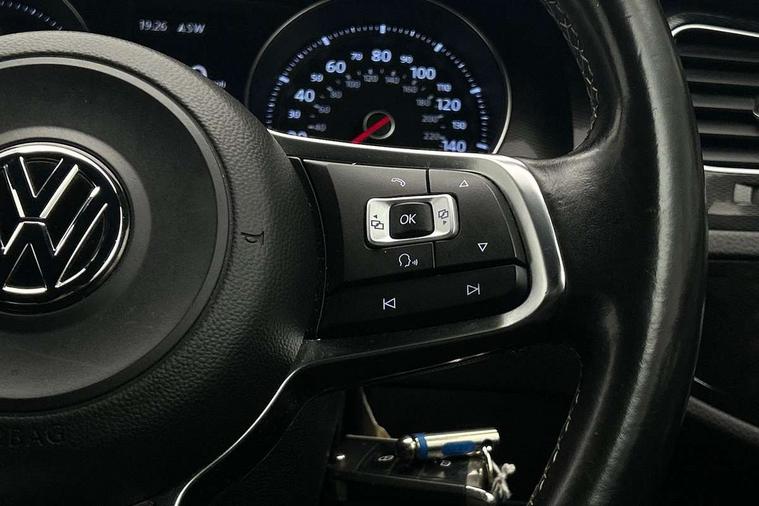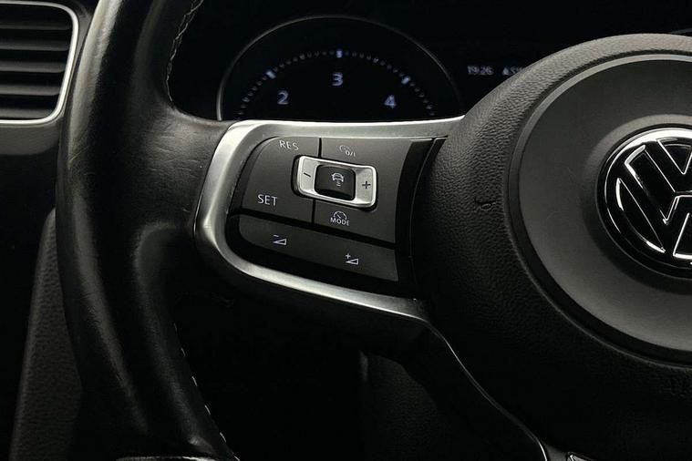 'Lights On' Reminder warning buzzer, ACC - Adaptive cruise control with front assist, forward collision warning, distance monitoring, city emergency brake and speed limiter, Bluetooth Telephone preparation, Brake pad wear indicator warning light, Driver alert system, Driver profile selection, Exterior temperature gauge, Flat tyre indicator, Instrument cluster in white, Low fuel level warning light, Multi function display colour screen, Multifunction computer, Oil level gauge, Progressive power assisted steering, Rev counter, Trip and service interval display, Ultrasonic front and rear optical and audible parking sensors, Warning buzzer and light for front seatbelts unfastened, Diesel particulate filter, Lowered sports suspension, XDS plus electronic differential lock, CD/MP3/WMA, USB and SD card reader, aux-in, Composition media system, DAB Digital radio, MDI with USB/iPod connection cables, Auto dimming rear view mirror, Automatic coming/leaving home lighting function, Automatic headlights, Bi-xenon headlights/wash + dynamic cornering lights + LED daytime running lights, Body colour bumpers, Body colour door handles, Body colour door mirrors with integral indicators, Cherry red rear light cluster, Chrome trimmed front air intake surrounds, Chrome trimmed front fog light surrounds, Chrome trimmed radiator grille louvre inserts, Dusk sensor + auto driving lights, Electric folding door mirrors with puddle lamps, Electric front windows, Electrically adjustable and heated door mirrors, Heated rear windscreen, Honeycomb radiator grille - black, LED front fog lights, LED rear lights, Rain sensor, Range adjustable headlights, Rear roof spoiler, Rear windscreen washer and wiper with interval delay, Reverse activated kerb-view adjustment on passenger's door mirror, Twin chrome exhaust tailpipes, Windscreen wipers/ intermittent wipe + 4 position delay, 12V socket in luggage compartment, 3 rear headrests, 3 spoke steering wheel, 60/40 split folding rear seat, Adjustable dashboard illumination, Air conditioning - 2 zone electronic climate control, Ambient lighting, Bag hook in luggage compartment, Black headlining, Boot lashing points, Chrome-plated electric mirror adjustment switch surround, Chrome-plated electric window button surround, Courtesy light delay, Cover for storage compartment in centre, Driver/front passenger seat height adjustment, Dust/pollen filter, Easy entry slide seats (access to rear seats), Front + rear carpet mats, Front centre armrest with storage box and rear air vents, Front footwell illumination, Front seat back storage pockets, Grab handles, Height/reach adjust steering wheel, Illuminated door sills, Illuminated vanity mirrors, Isofix preparation for 2 rear child seats, LED reading lights, Load through provision with rear centre armrest and cupholders x2, Lockable, illuminated, cooled glovebox, Luggage compartment cover, Luggage compartment lighting, Multifunction leather steering wheel with leather gear knob/handbrake grip, Passenger underseat drawer, Stainless steel pedals, Storage box in luggage compartment, Storage compartments in doors, Variable boot floor, height adjustable and removable, White adjustable panel illumination, Winter pack - Golf, 3 point height adj front seatbelts + pretensioners, 3 rear 3 point seatbelts, ABS, Automatic post collision braking, Door open warning reflectors, Driver/Front Passenger airbags, Driver/Passenger whiplash optimised head restraints, Drivers knee airbag, Electronic parking brake with auto hold, Electronic tyre pressure monitoring, ESP with EDL + ASR, Front and rear curtain airbags, Front passenger airbag deactivation, Front side airbags, Fuel cut off safety device, Hydraulic Brake Assist (HBA), Pre crash system, Warning triangle and first aid kit holder, Alarm with interior protection, Anti-theft wheel bolts, Electronic engine immobiliser, Remote central locking with 2 remote folding keys, Chrome air vent surrounds, Chrome-plated light switch surround, Cyclone decorative inserts, Gloss black decorative inserts in centre console, Steel space saver spare wheel,