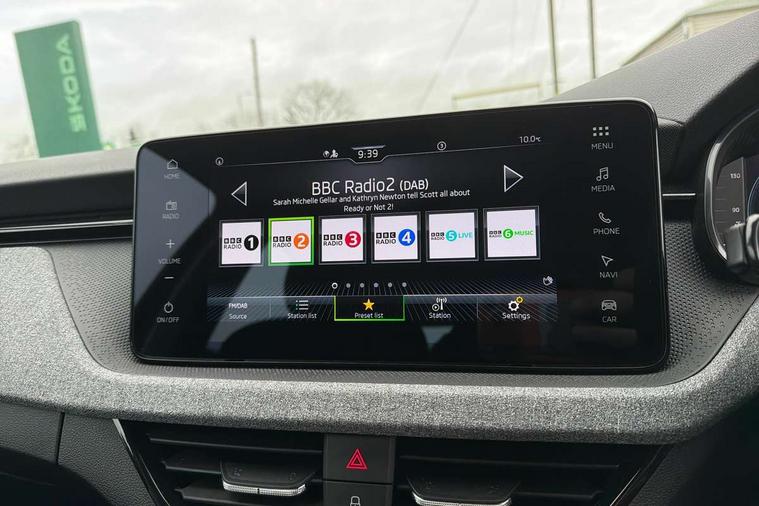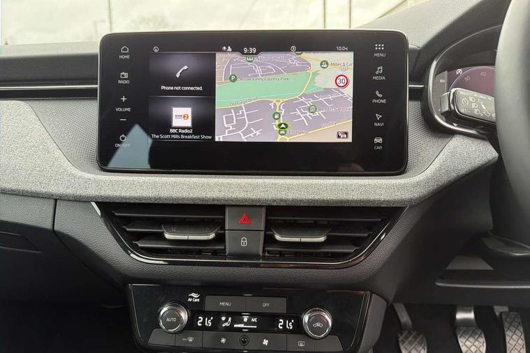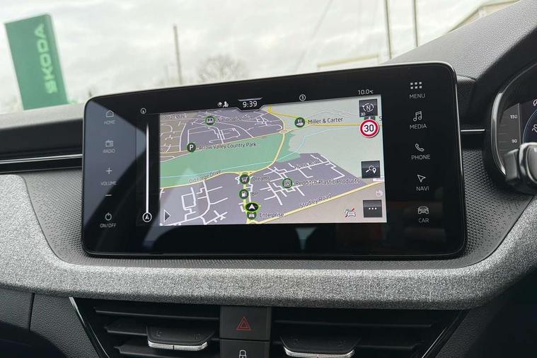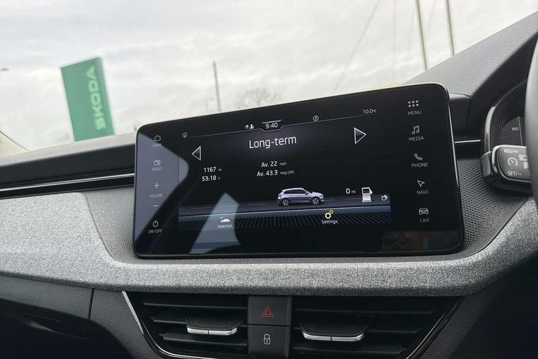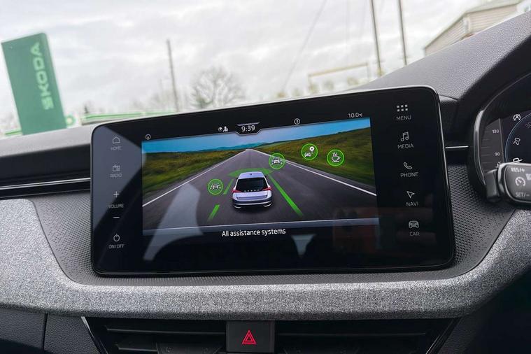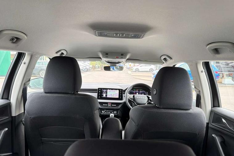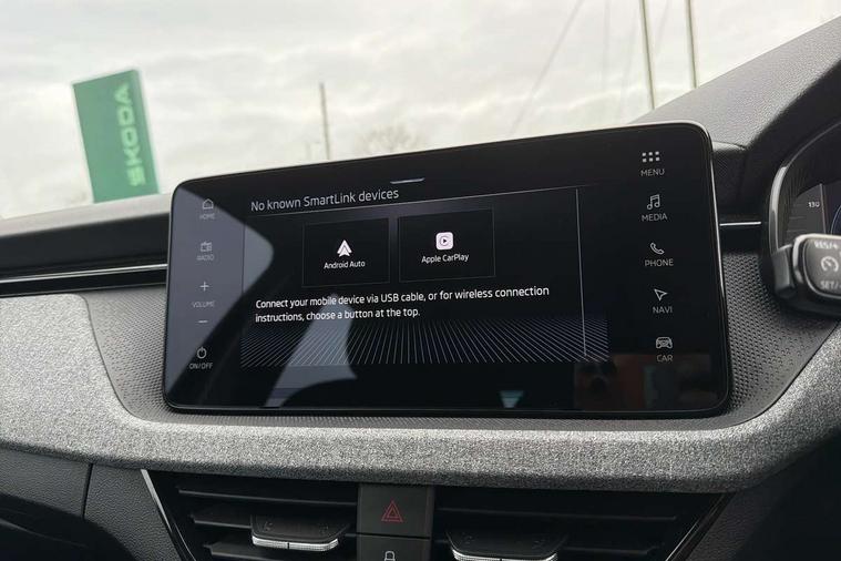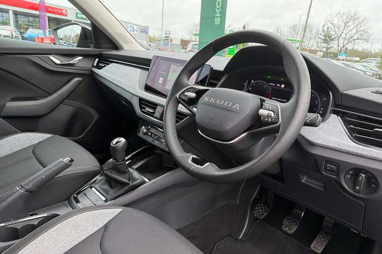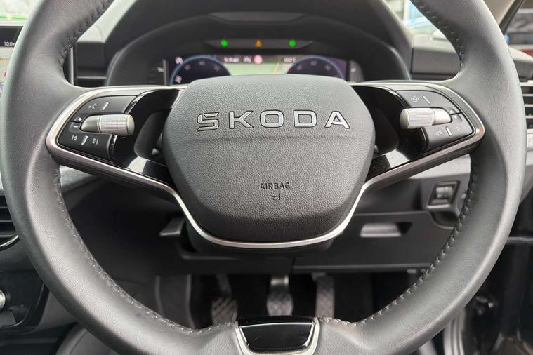 Advanced driver attention and drowsiness monitor, Bluetooth, e-Call (emergency call), Front assist system, PAS, Rear parking sensors, Rear view camera, Speed limiter, Tailgate, Traffic sign recognition, Virtual Cockpit - 10.25" digital display, Voice control system, Wireless smartlink, 4 USB C ports, 8 Speakers, 9.2" Skoda navigation display, DAB radio, Auto dimming rear view mirror, Automatic headlamp activation with Coming home and Leaving home feature, Automatic high/low beam, Body colour bumpers, Body colour door mirrors and handles, Chrome moulding around grille, Front and rear electric windows, Full LED headlights, Heated rear window, LED 3rd brake light, LED brake lights, LED daytime running lights, LED front turning lights, LED high beam, LED low beam, LED taillights, Rear LED fog light, Rear side wing doors, Rear wiper, Tinted windows, Unique dark chrome design logo on alloy wheels, 12V socket in luggage compartment, 3 seat bench in 2nd row, Black / Grey armrest stitching, Black hotstamping, Cargo elements, Chrome inner door handles, Door inserts in satin black, Driver and passenger sun visors with vanity mirror, Dual zone climate control, Front and rear roof lights, Front centre armrest, Front head restraints, Glasses storage in roof liner, Height adjustable driver seat, Height adjustable passenger seat, Ice scraper, Illuminated glove compartment, Inner circulation control with pollen filter, ISOFIX for front passenger seat, Isofix preparation for back seats, Leather gearknob and handbrake lever, Loft cloth upholstery, Luggage net under rear parcel shelf, Manual lumbar support for front seats, Net package and top tether hooks in boot space, Pearl grey ceiling, Pocket on the back of both front seats, incl. mobile phone pockets, Single front passenger seat, Skoda lettering on steering wheel, Textile floor mats, Third rear headrest, Ticket holder, Top tether for front passenger seat, Umbrella in driver's door, 3x3 point rear seatbelts, ABS, Child locks, Curtain airbags and front side airbags, Disc brakes, Driver and front passenger airbags, ESP, Hill hold control, Manual leather parking brake, One tone horn, Passenger airbag switch off function, Seatbelt reminder for driver and front passenger, Tyre pressure monitoring system, Anti theft alarm system with interior monitoring, backup horn and towing protection, Anti-theft wheel bolts, Remote central locking with 2 remote folding keys, SAFE function for remote central locking, Decord pad, door inserts Kota uni,